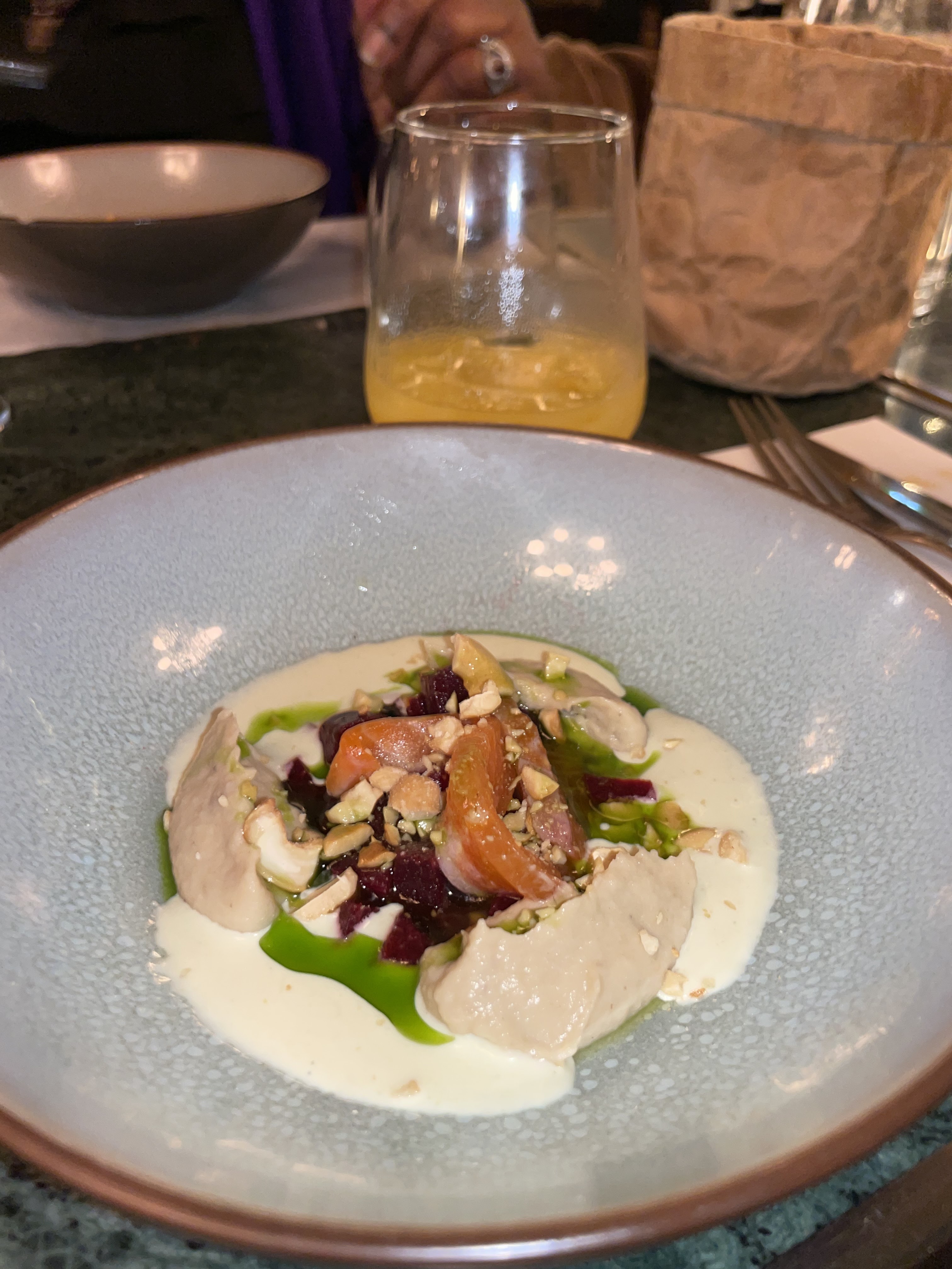 Mais quelle surprise ! Je ne m’attendais pas à ce que les plats soient si travaillés et surprenants. Ça explosait en bouche (le raviolo aux champignons… 😋) Je vais parfois dans des restaurants étoilés Michelin et franchement, les plats s’en rapprochent ! L’ambiance tamisée est top, le service vraiment très très sympa. Et les prix sont très abordables pour la qualité (mon plat principal coutait 19€ et il était très copieux). On reviendra, c’est certain.