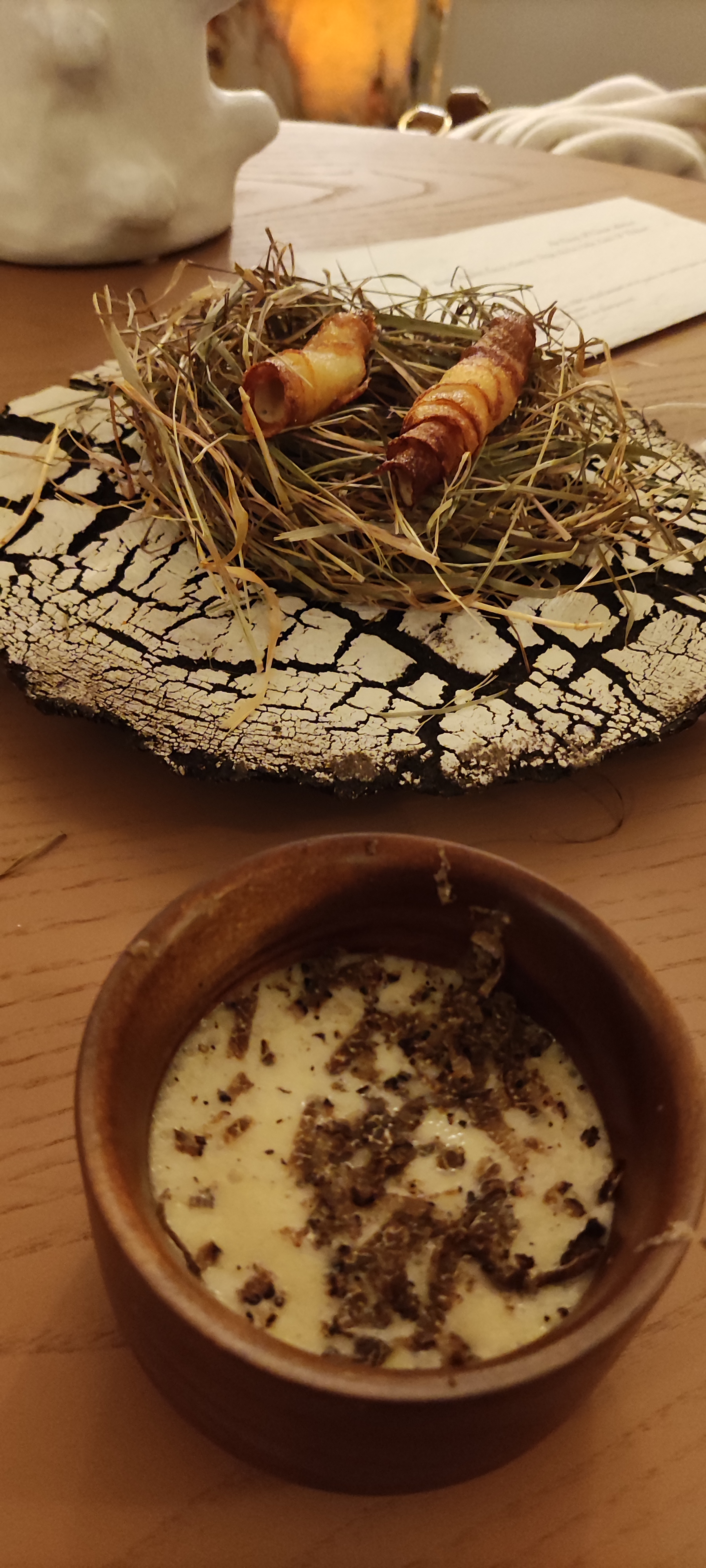 Une découverte inédite. Un véritable enchantement. On se laisse porter par le ballet des plats, émerveillés à la fois par leurs contenants et leurs contenus. Bravo pour la créativité, le travail et le talent.