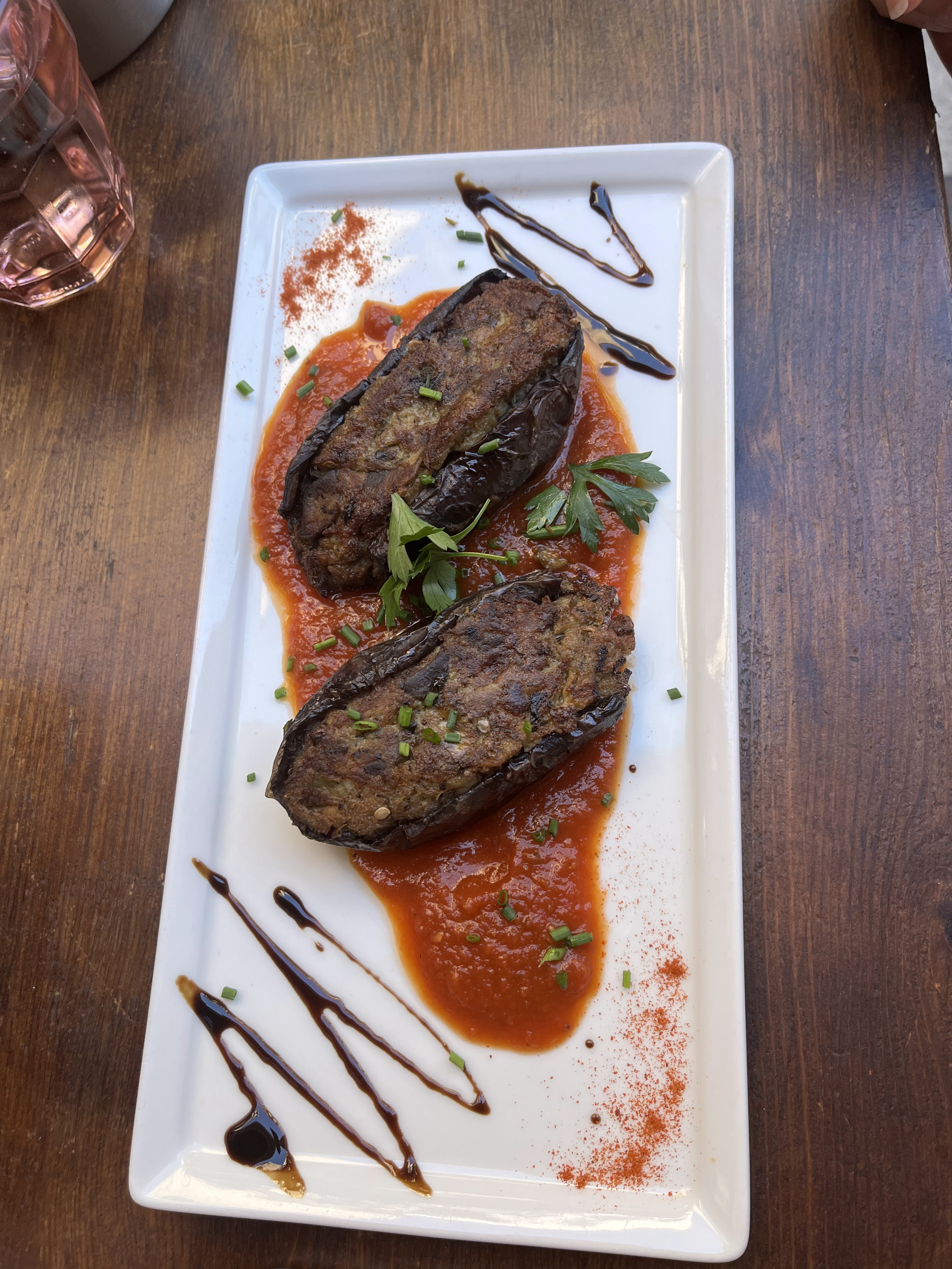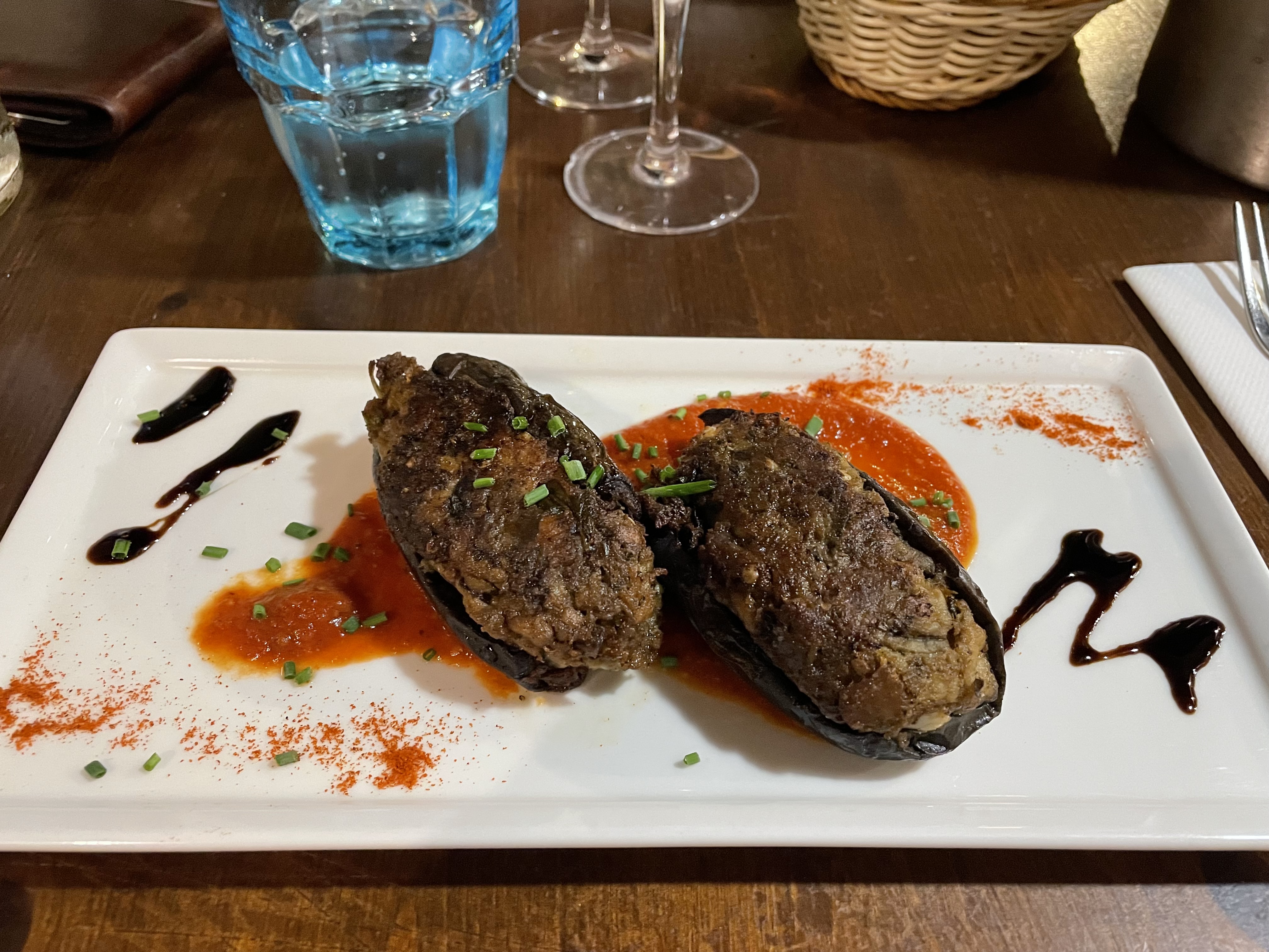 Je pense qu'il y a beaucoup de bon restaurants à Bonifacio, mais celui ci a été un coup de cœur immédiat. Nous nous sommes régalés du début à la fin. La cuisine et les produits sont locaux, il y a des plats typiques (dont les fameuses aubergines) et l'accueil est formidable. Merci monsieur aux belles Moustache et monsieur cuistot Basque de nous avoir offert ce beau souvenir 😊