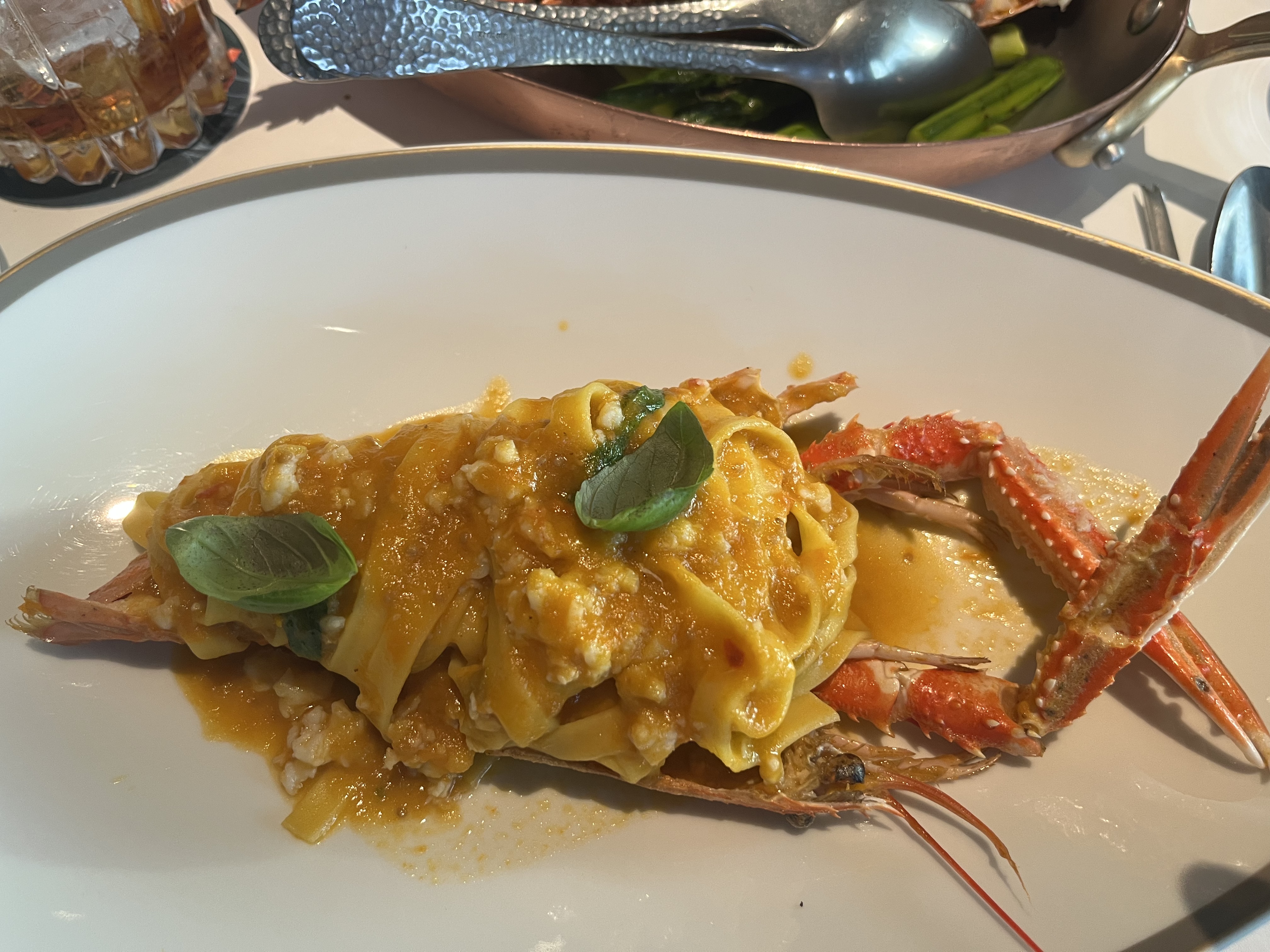 Plats « Signature » très décevants - La friture (entrée) n’était pas croustillante et plutôt blanchâtre. La langouste aux pâtes fumées : une fois la langouste vivante choisie (1,4 kg) …. On retrouve dans son assiette quelques morceaux de langouste sur des pâtes et noyées dans une sauce. Il aurait été agréable de revenir avec la langouste pour la présenter dans un plat avant de la servir plutôt que de se retrouver avec 2 assiettes sans aucune présentation. À 360€ le kilo, on peut s’attendre à vraiment beaucoup mieux.