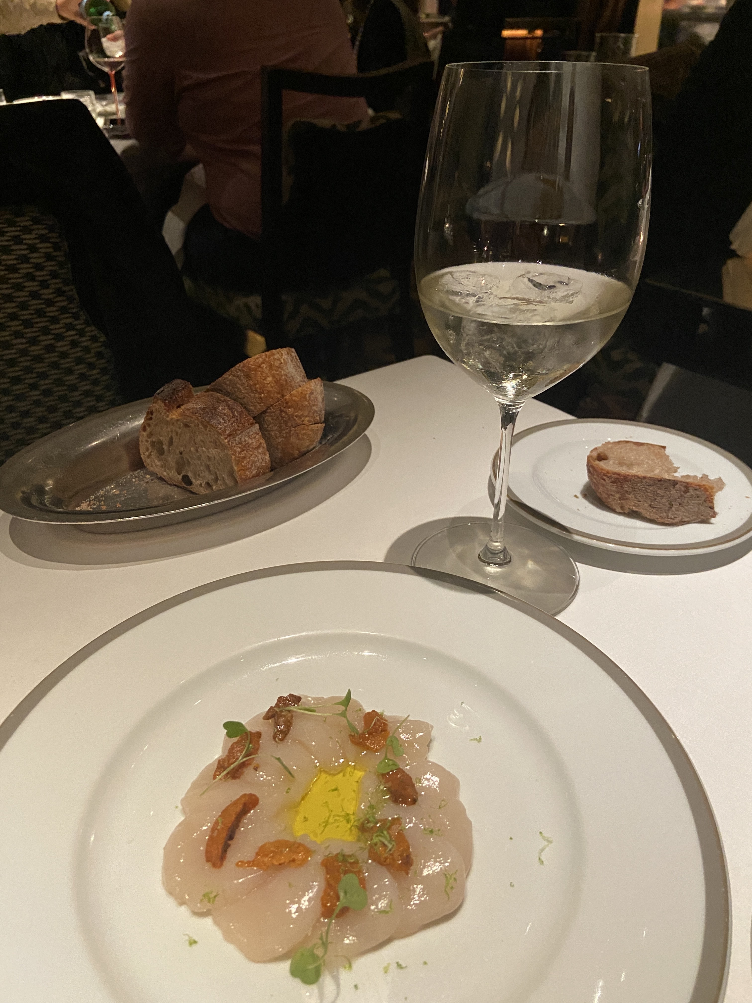 Nous avons beaucoup apprécié notre soirée Le cadre est somptueux Grace à sa terrasse Le service impeccable et les plats savoureux Le vin blanc italien conseillé par la sommelière fut une découverte pour nous. Seuls bémols : - le prix élevé - la communication en anglais, Paris est il toujours en France ? J’aurais préféré l’italien - absence d’avertissement sur la tenue conseillée : je me sentais un peu juste vu l’élégance des autres convives - pas de nappe sur les tables en terrasse