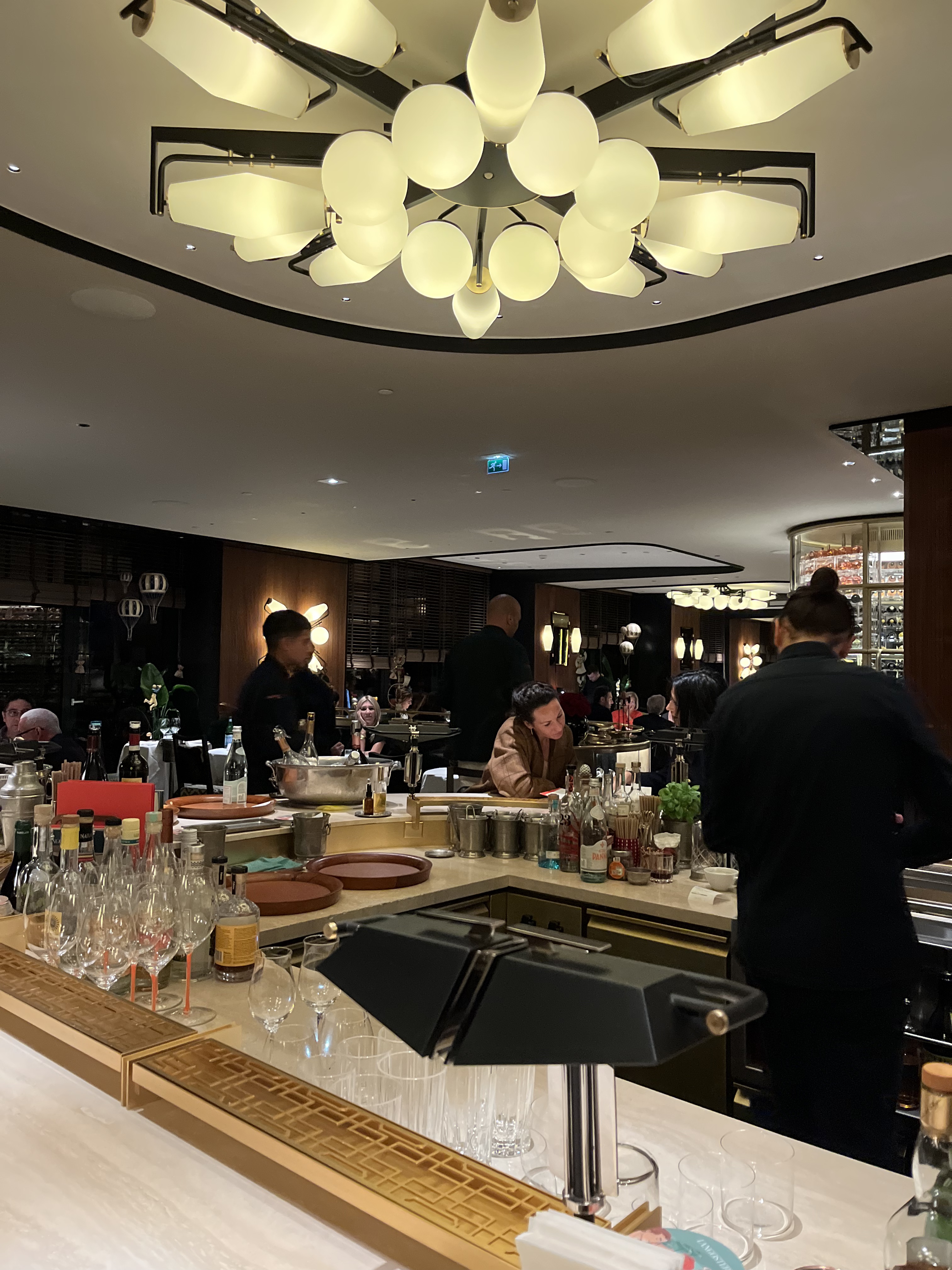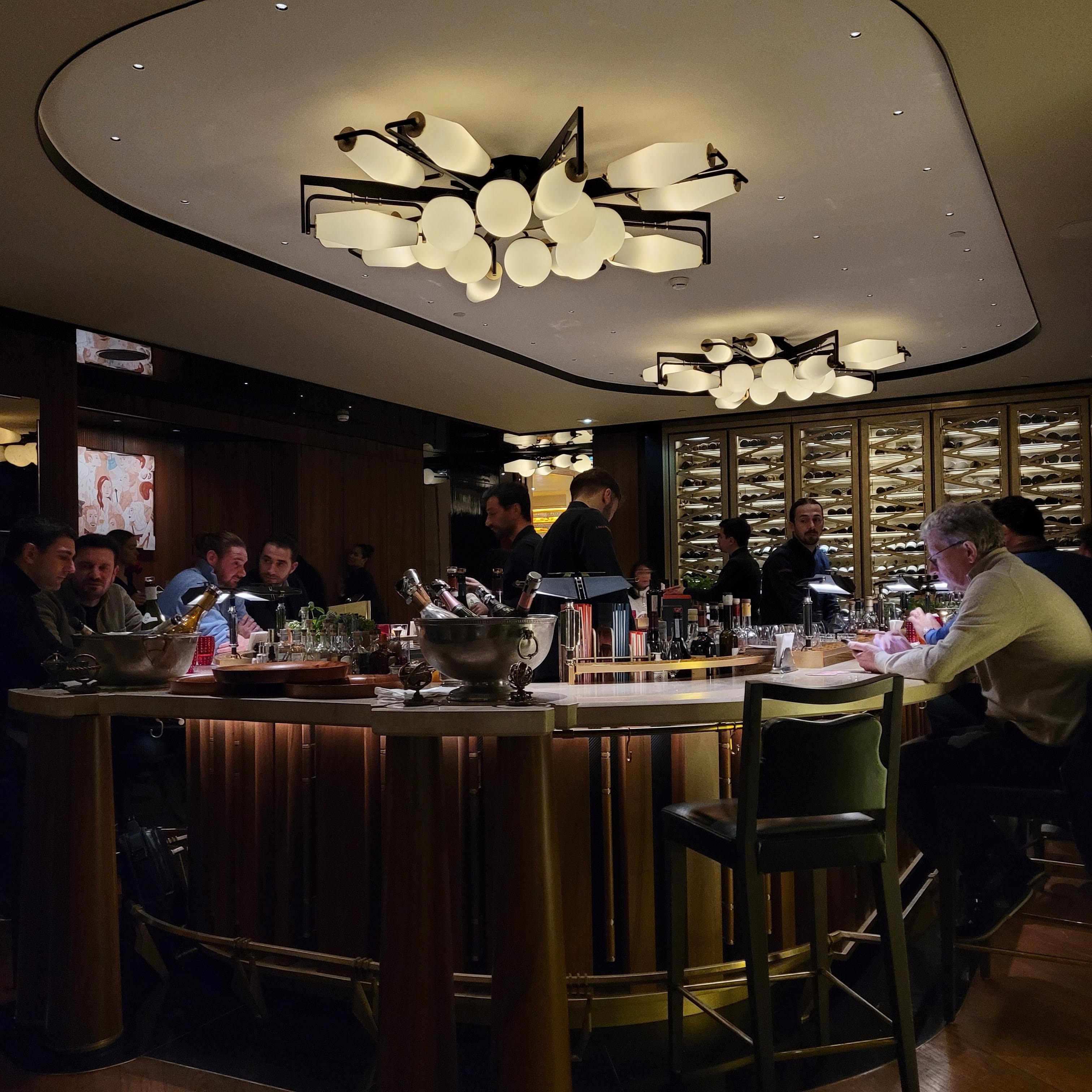 Dîner devant le bar très inconfortable et pas de vue. Bébés ou petits enfants qui hurlent pendant tout le dîner. Portions minimalistes. Spaghetti aux oursins très bons mais trop de piments !!!! Pas assez d’oursins malgré prix exorbitants. Musique trop forte.