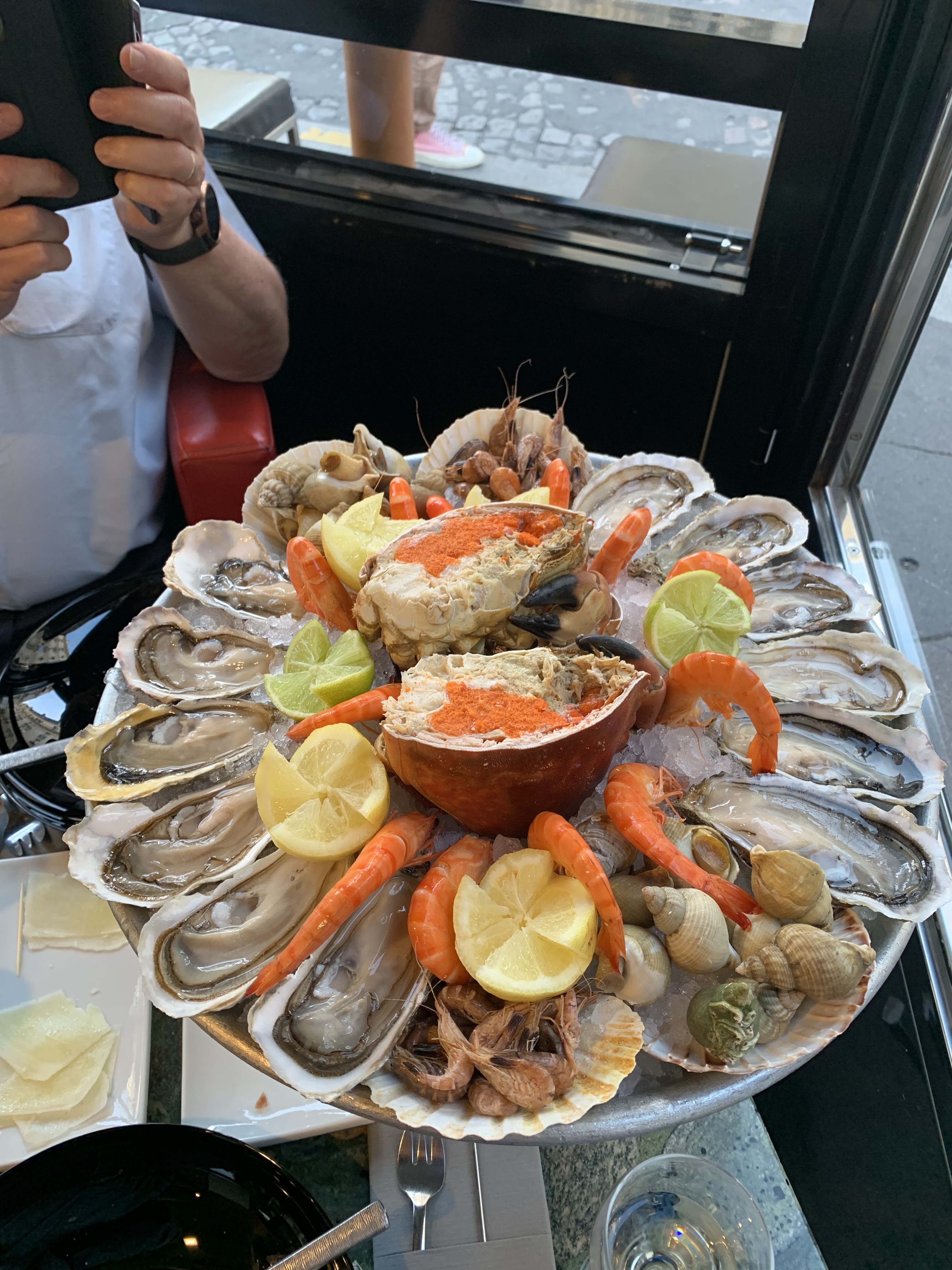C'était notre troisième séjour là-bas mais assez décevant. Les petites crevettes et les escargots n'étaient pas si frais ; Dans l'ensemble, à l'exception des huîtres, le plateau était correct, rien de spécial et pas à la hauteur du prix très élevé demandé. L'endroit est minuscule et il était très difficile de s'y retrouver, surtout lorsque la table voisine avait son plateau qui dépassait. La musique était un peu rebutante, personne n'a envie d'écouter des chansons pop américaines en mangeant des fruits de mer frais à Paris, pas même les touristes américains.