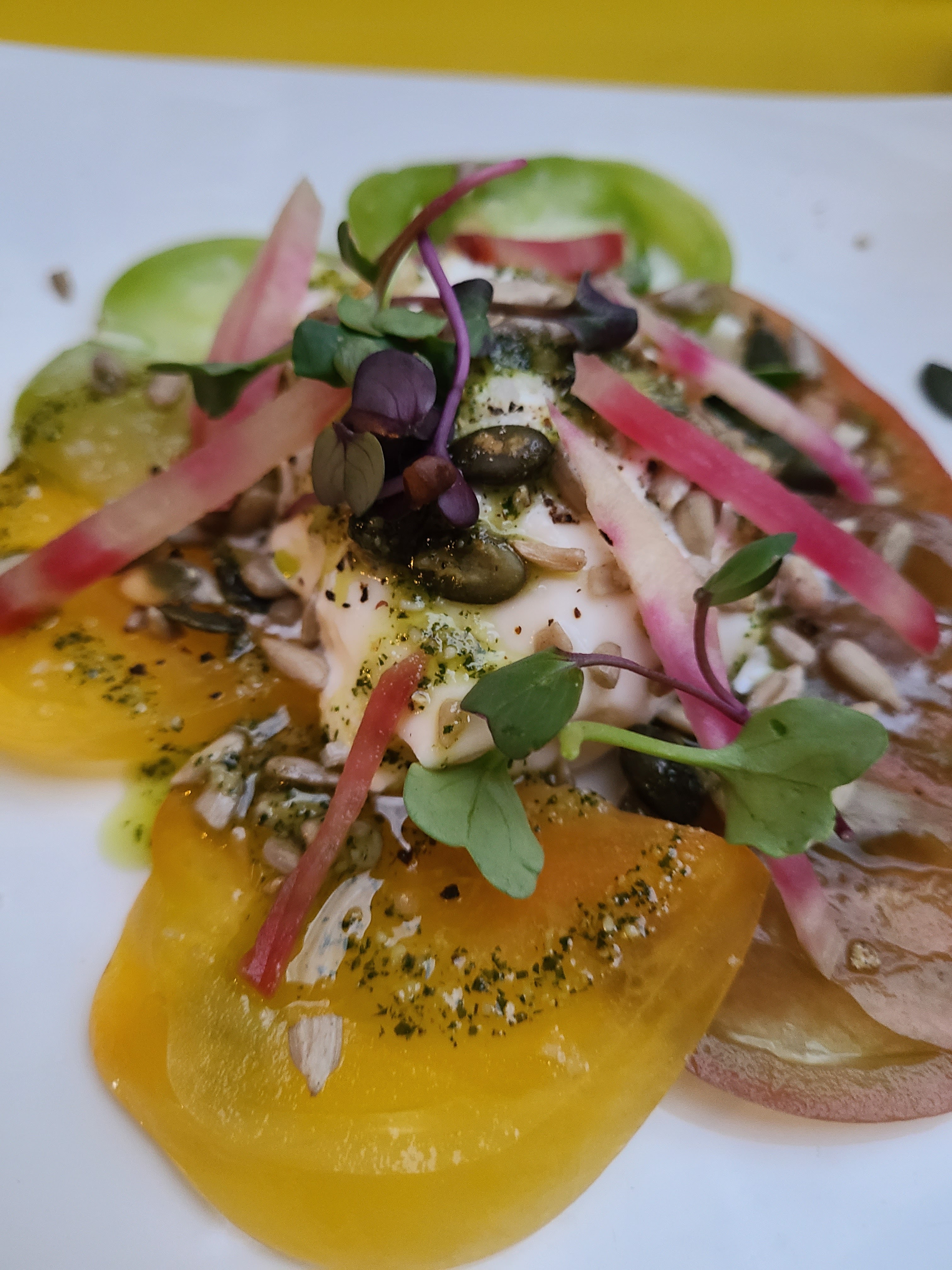 Un délice aussi bien pour les yeux que pour les papilles! Les plats sont travaillés, avec des couleurs et des textures différentes, qui créent une explosion de saveurs en bouche. Le service était impeccable, et l’ambiance du restaurant est très agréable (avec une playlist sympa en toile de fond)! J’ai tout simplement adoré.