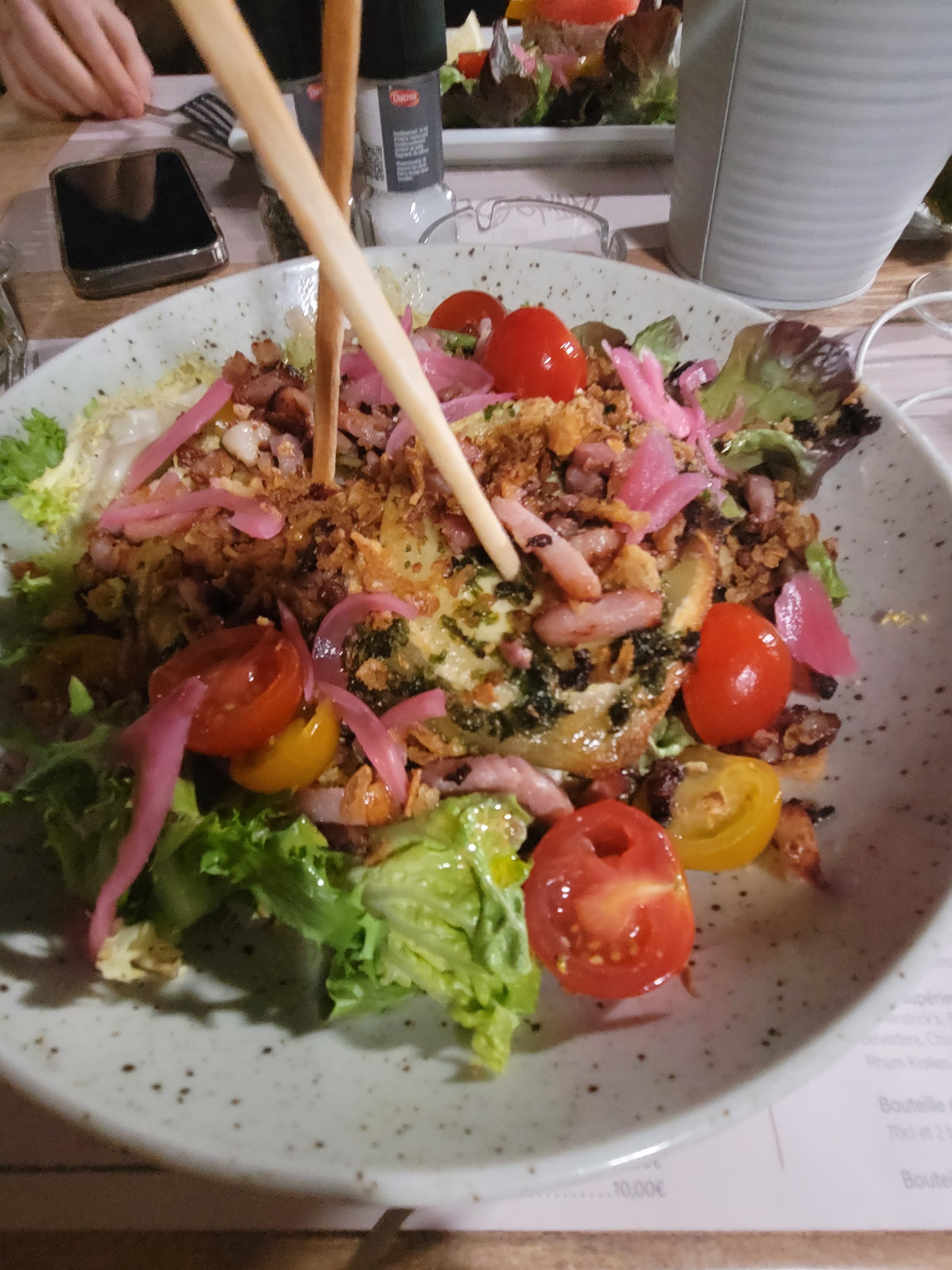 1h qu'on est là, personne ne s'occupe de nous, on a du aller chercher la carte nous même au bar et appeler les serveurs 10 fois pour prendre la première commande. Et quand on demande autre chose, on les revoit passer dans notre commande, une demie heure après toujours rien 🤦🏼♀️