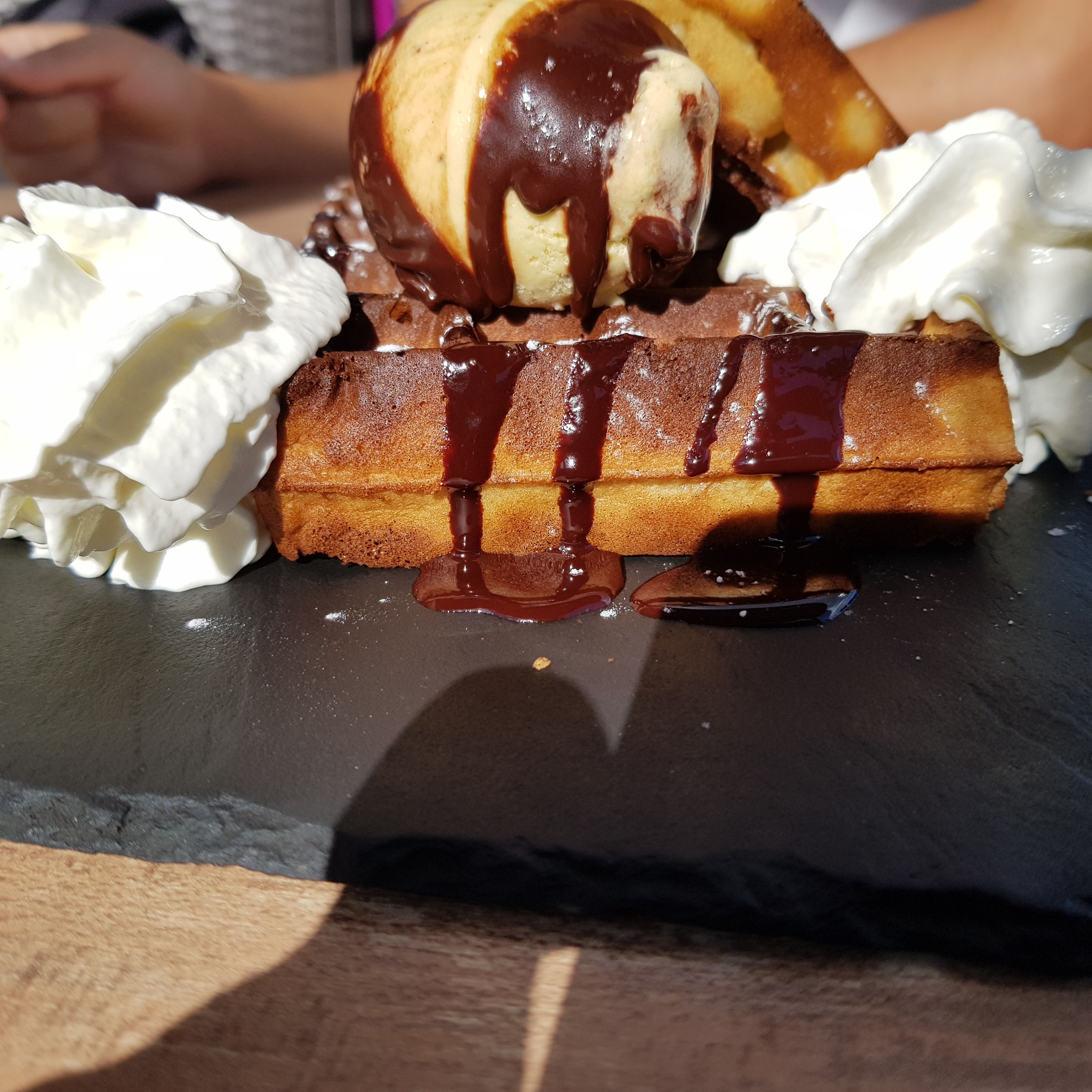 Très bonne gaufre façon profiteroles ! Vue sur la plage très sympa.