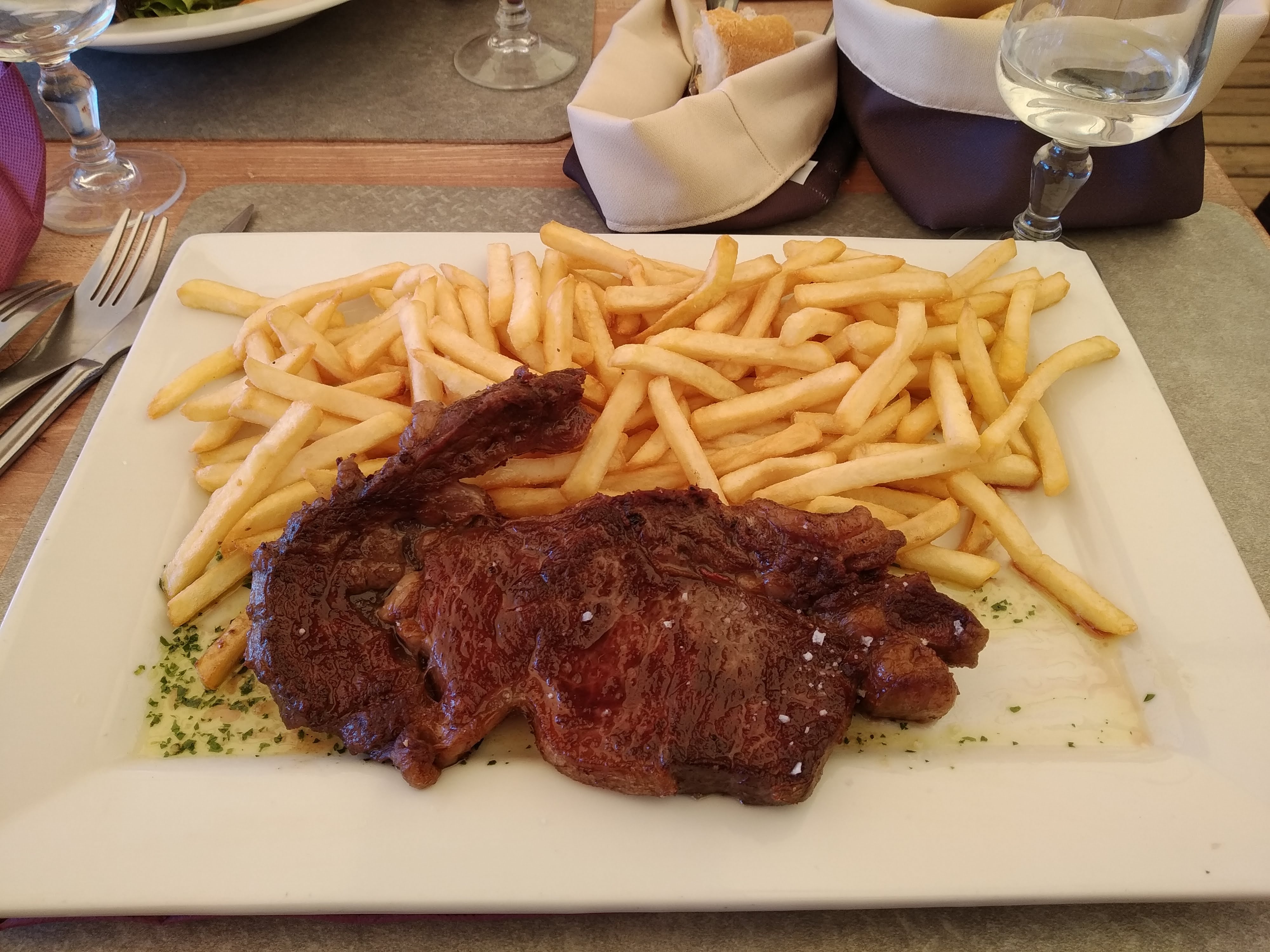 Bruyant. Étouffant sous le store Serveuses au top, gentille, serviable Cuisine bien Entrecôte frites bien bonne 21€