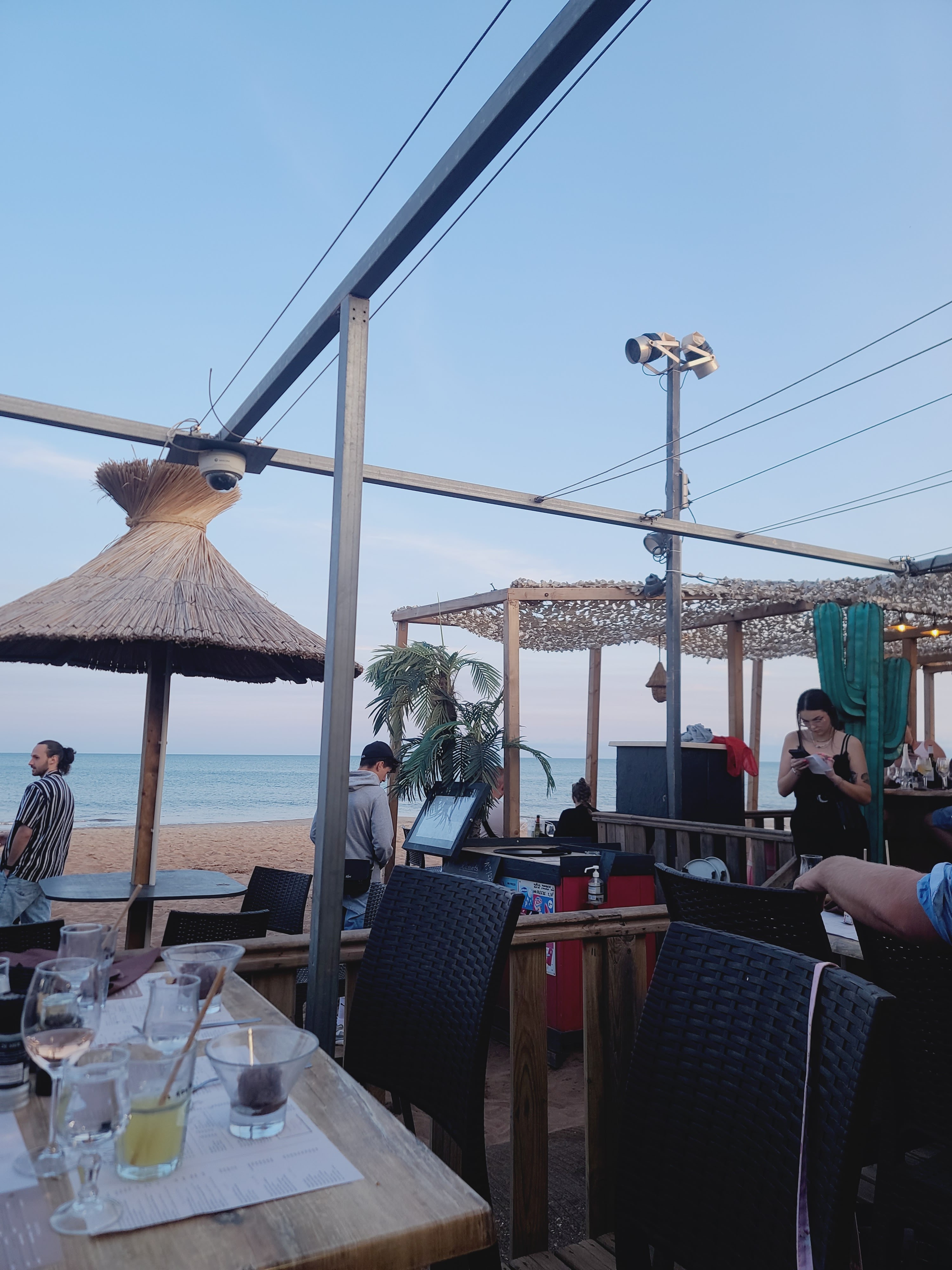 Le lieu est très sympa , sur la plage et pour un début de soirée y dîner est super agréable , le lieu mérite 5 étoiles , mais notre expérience avec un des serveurs laisse à désirer … Il faut absolument réserver ! Il y a deux services le soir , 19h et 21h je crois à confirmer . Et à partir de 22h / 23h vous pourrez danser ! Nous avions réserver pour 21h mais nous sommes arrivées a 20h30 , le serveur a l’entrée nous indique que notre table est déjà prête donc qu’on peut s’y asseoir et prendre l’apéro en attendant 21h pour dîner … mais je crois que le serveur de la zone n’avait pas l’information , super oppressant pour une prise de commande tout de suite tout de suite tout de suite , alors qu’il est 20h30 ! Chaque deux minutes à revenir pour nous demander notre commande alors qu’on lui a bien indiquer qu’on reviendra vers lui à 21h = Comme ci nous arrivions à cette heure convenue ! Sous prétexte qu’à 21h ils seront sur le « rush » et que les plats risquent de sortir avec beaucoup de retard … nous avons commandé à 21h10 … les plats sont arrivés en moins de 15min, quel retard ? si ce n’est que le serveur ne voulait juste pas attendre … ! Désagréable .