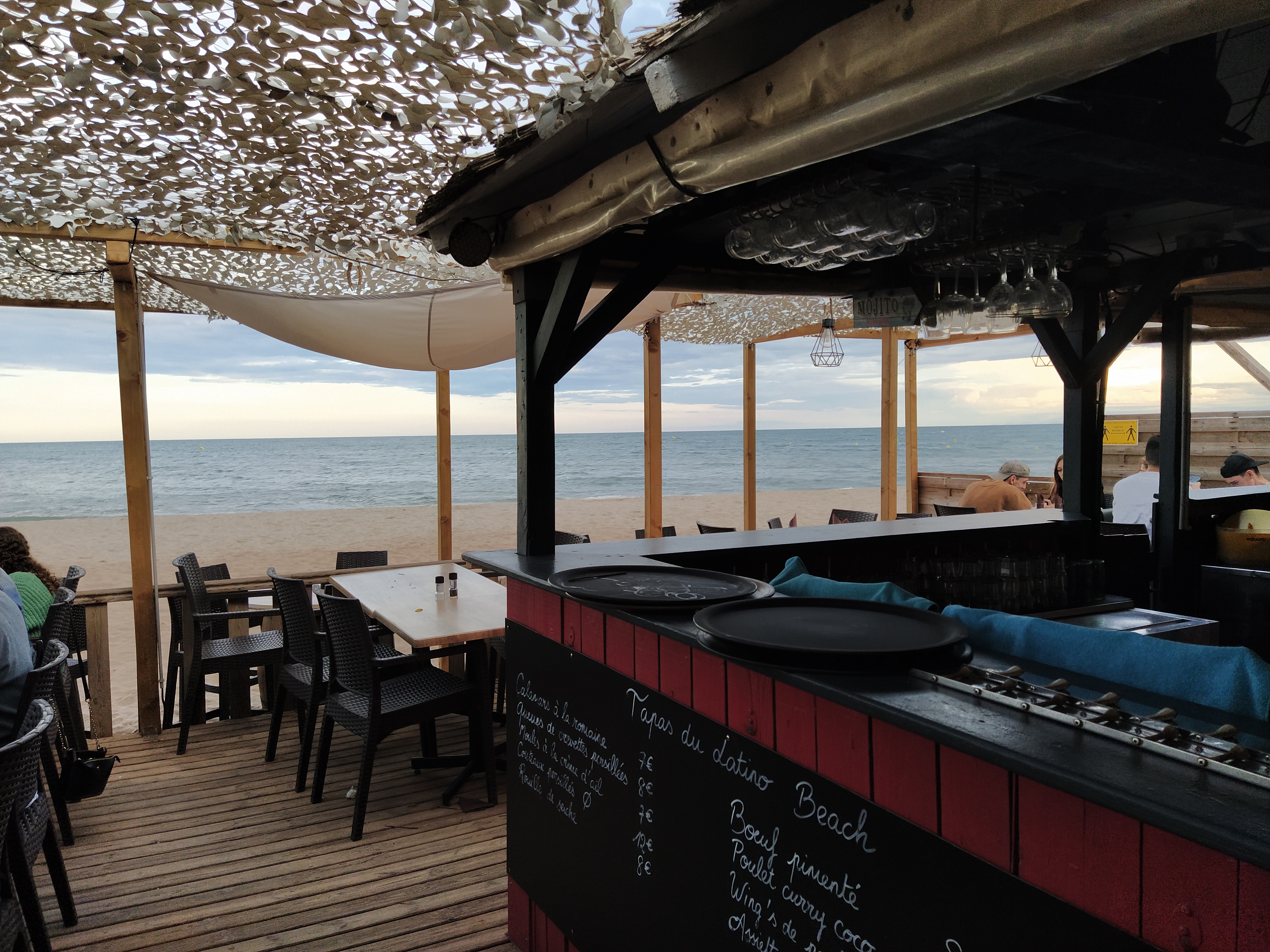 Endroit incontournable pour passer une soirée estivale digne de ce nom. Il est toujours agréable de manger des tapas et prendre un verre les pieds de le sable, avec le bruit de la mer puis la musique. Prix raisonnable, bon rapport qualité prix.