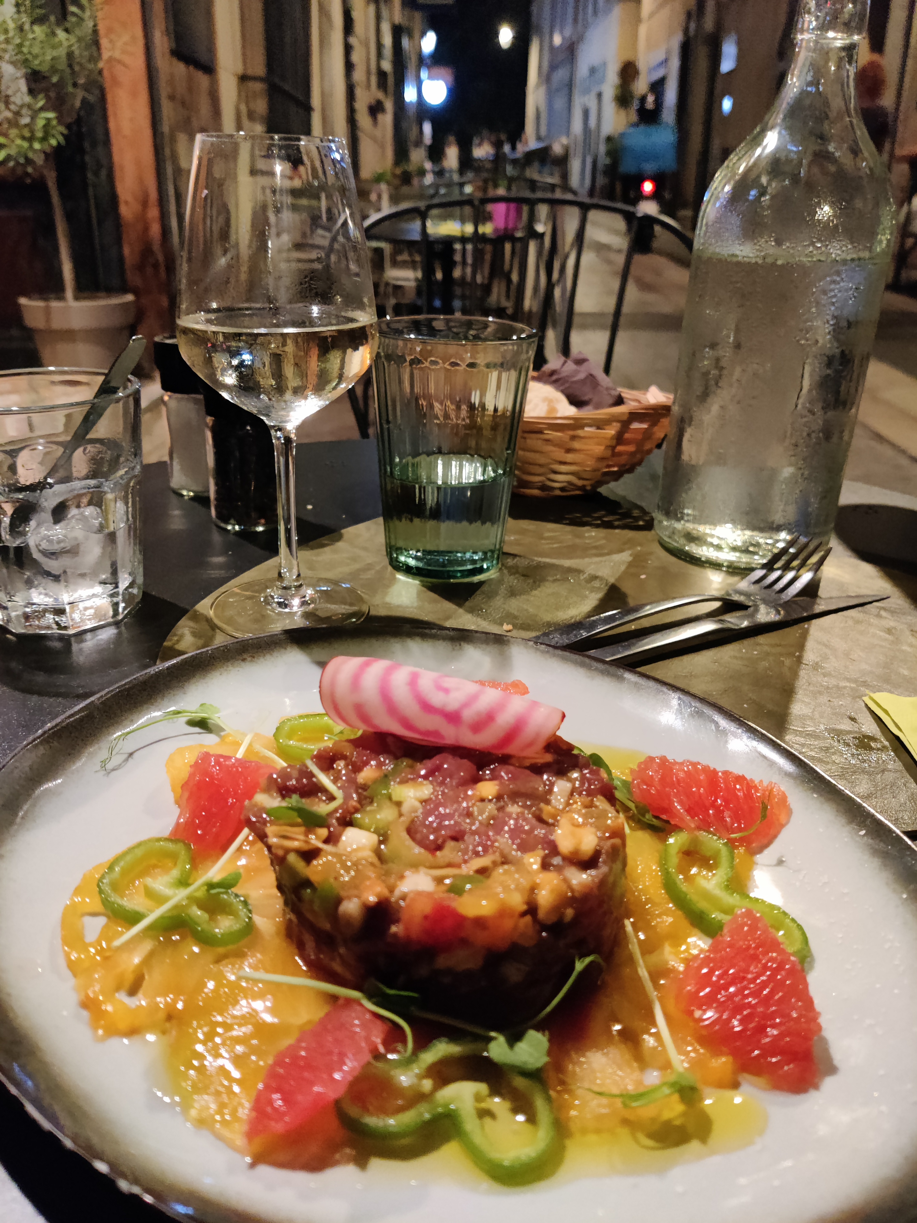 Une très belle découverte ce restaurant ! J'y ai mangé 3 jours de suite. Carpaccio de daurade, poulpe mariné, tartare de boeuf Thaï et Tataki de thon...tous les plats sont excellents en plus d'être frais, colorés et très bien présentés. Le service était impeccable. Je recommande vivement si vous passez au Panier. Je reviendrai c'est sûr !