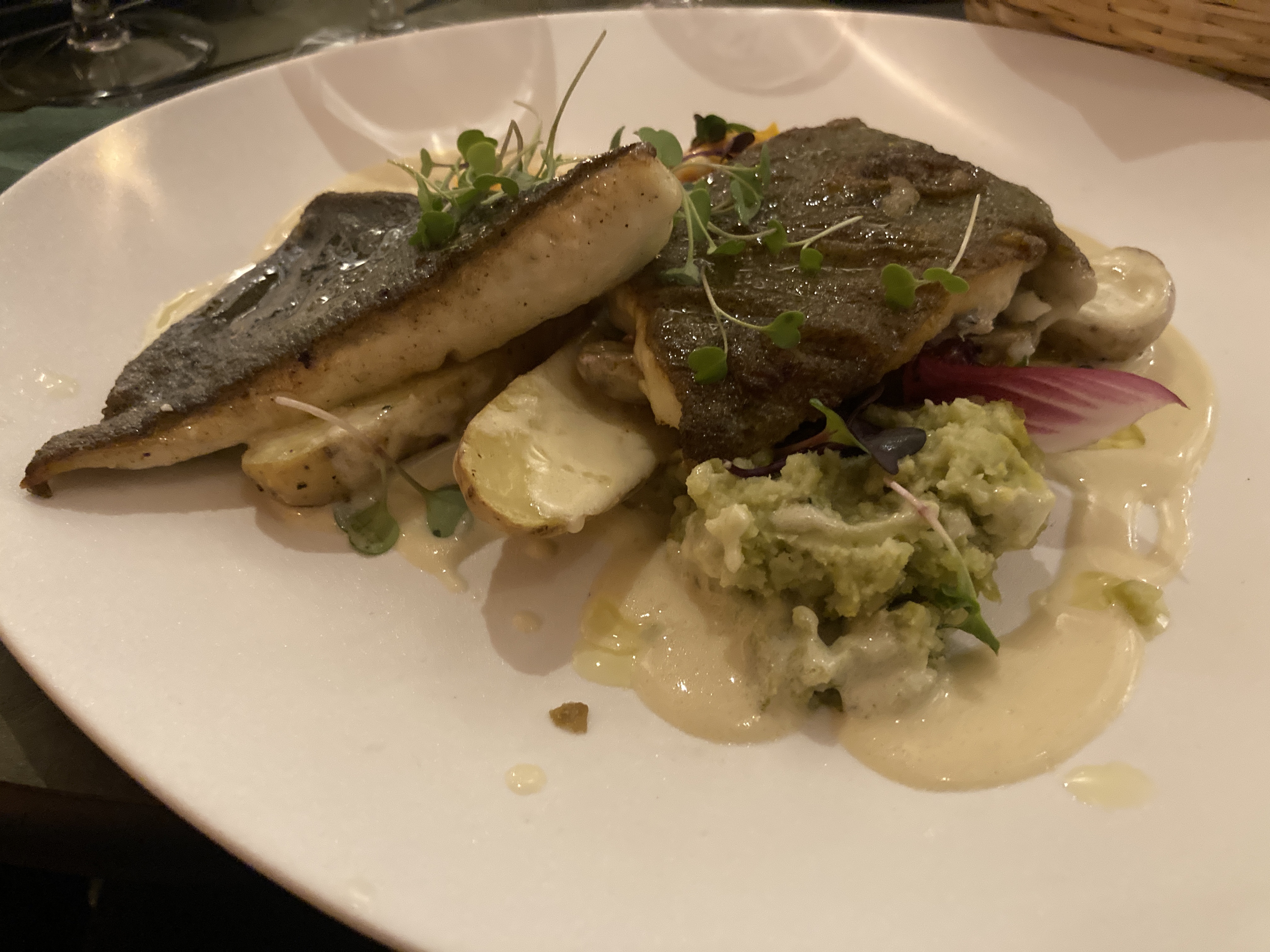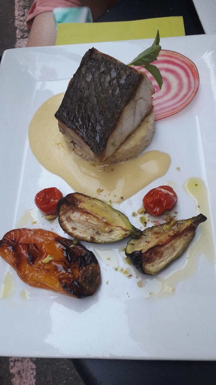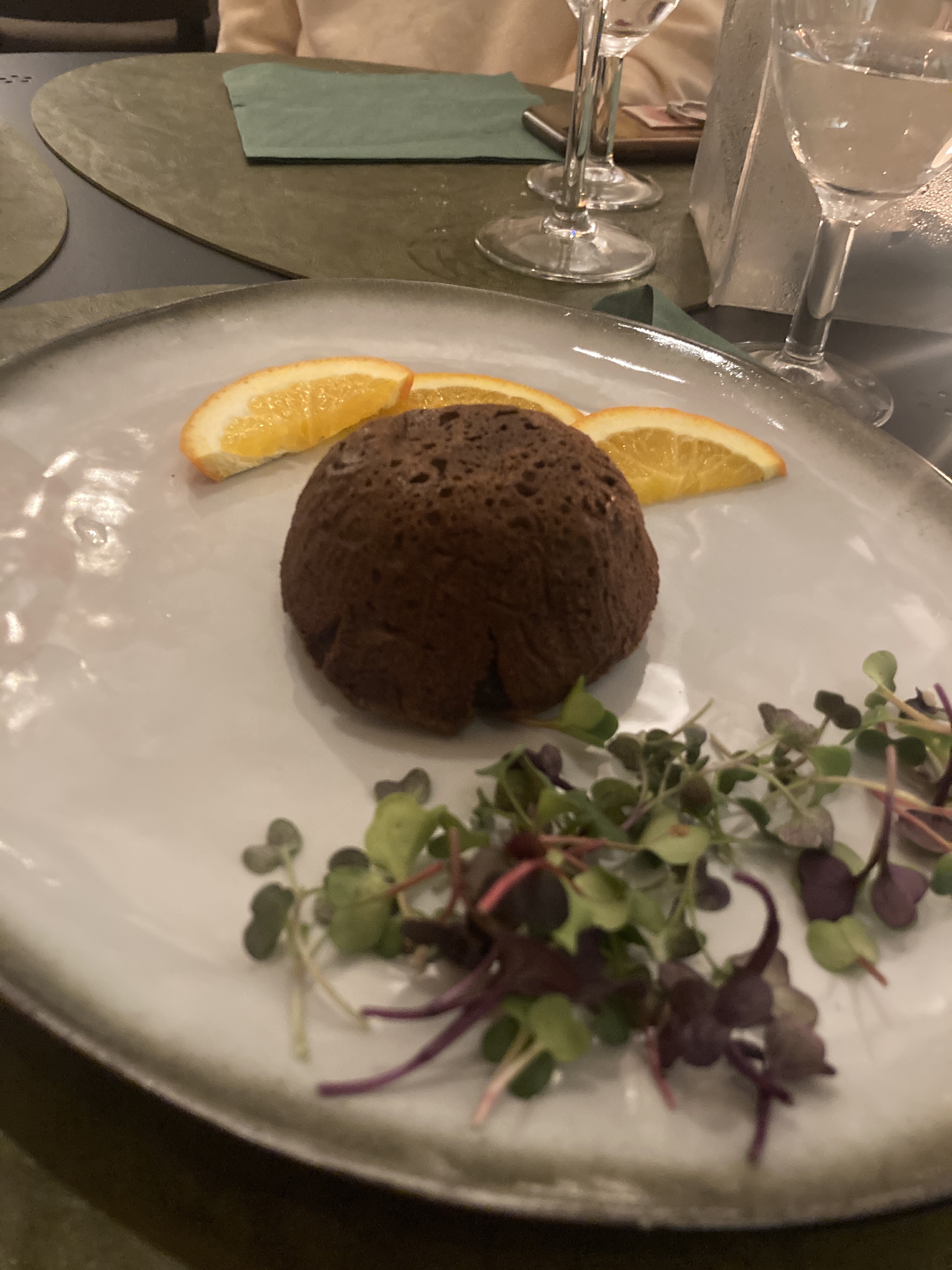 Le dos de cabillaud est extra. Il aurait juste mérité d’être servi plus chaud. Le fondant au chocolat est bon.