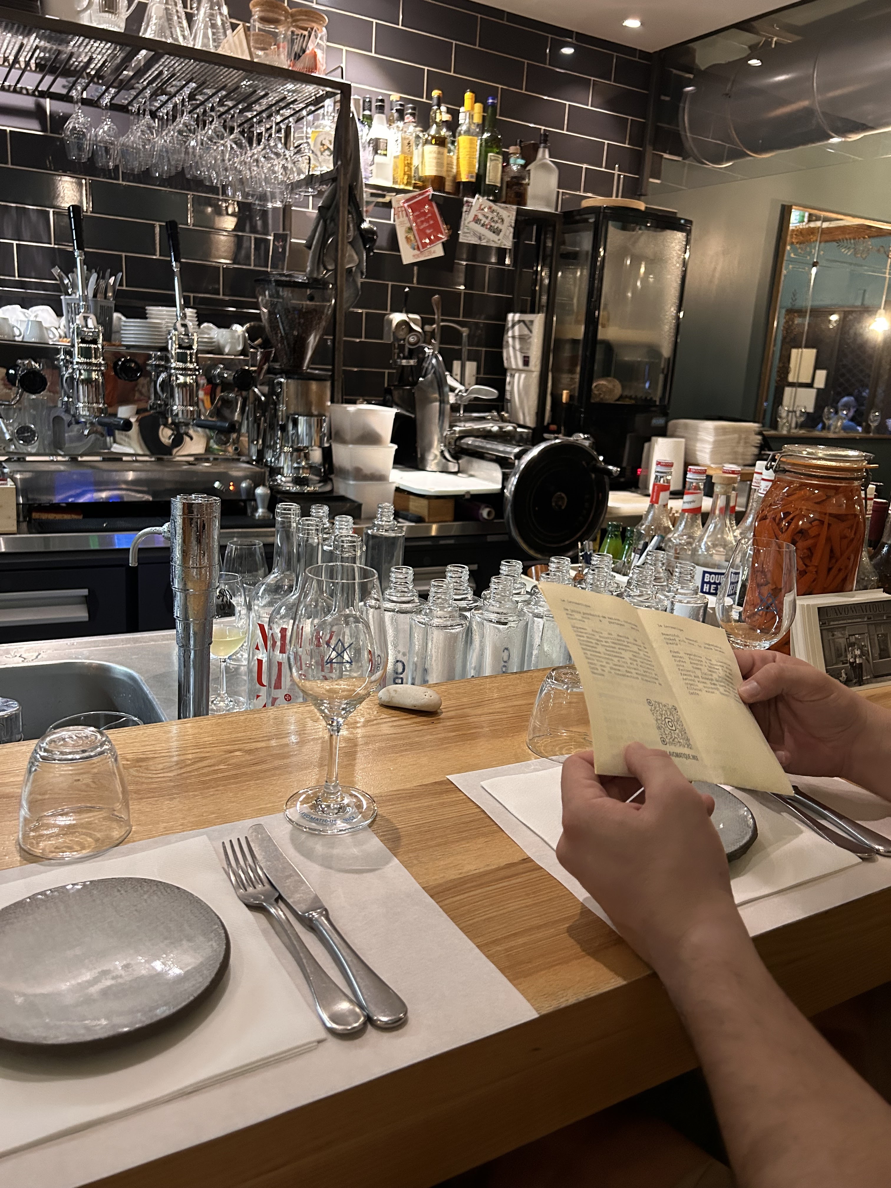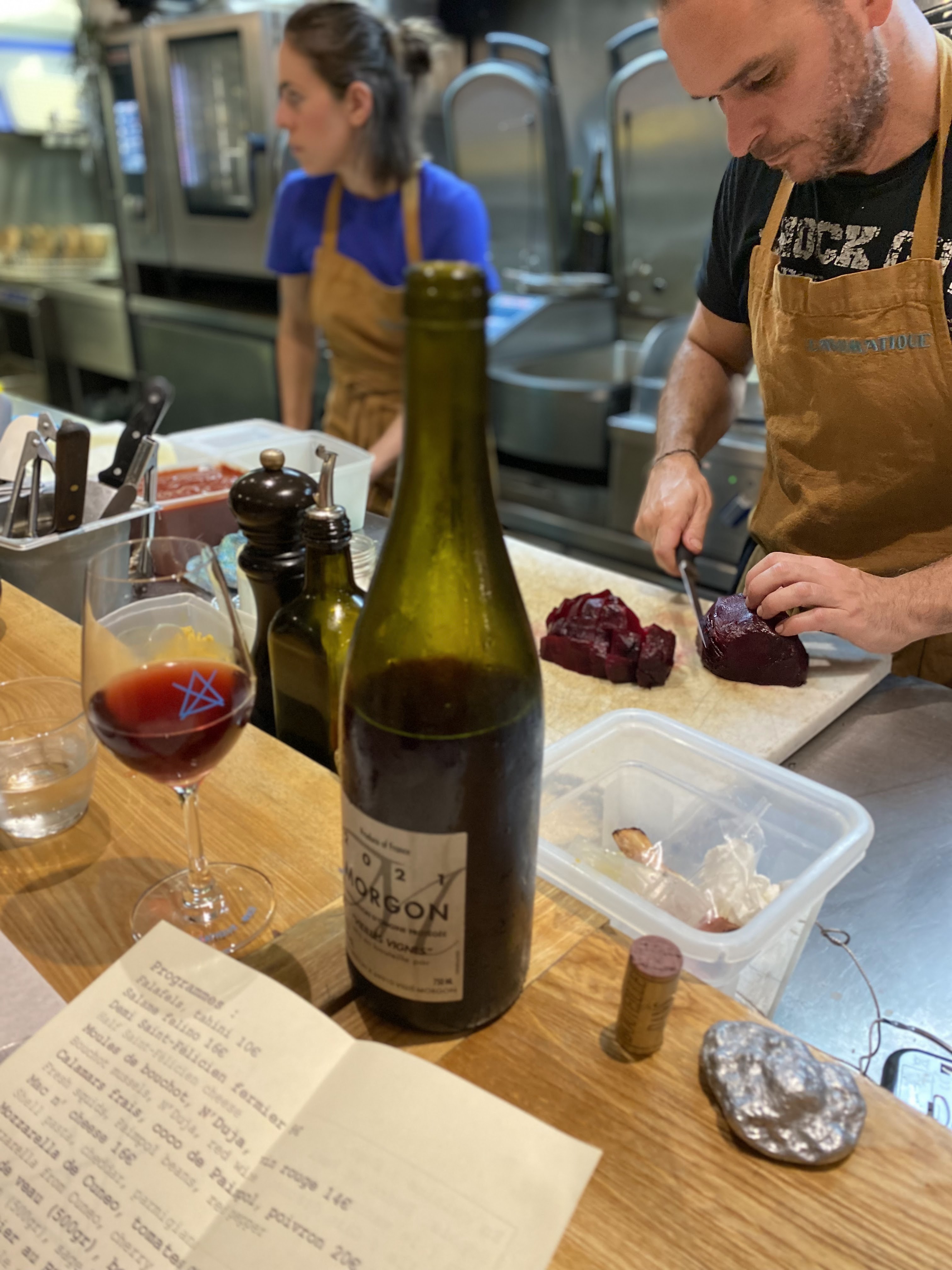 Une belle expérience, des plats simples cuisinés sous vos yeux... avec de bons produits, des vins de petits récoltants choisis pour leur respect de notre terre que demander de plus ! Vous y verrez installés au comptoir des clients heureux de leurs assiettes 😋 Pour couronner le tout : un service agréable... aux petits soins