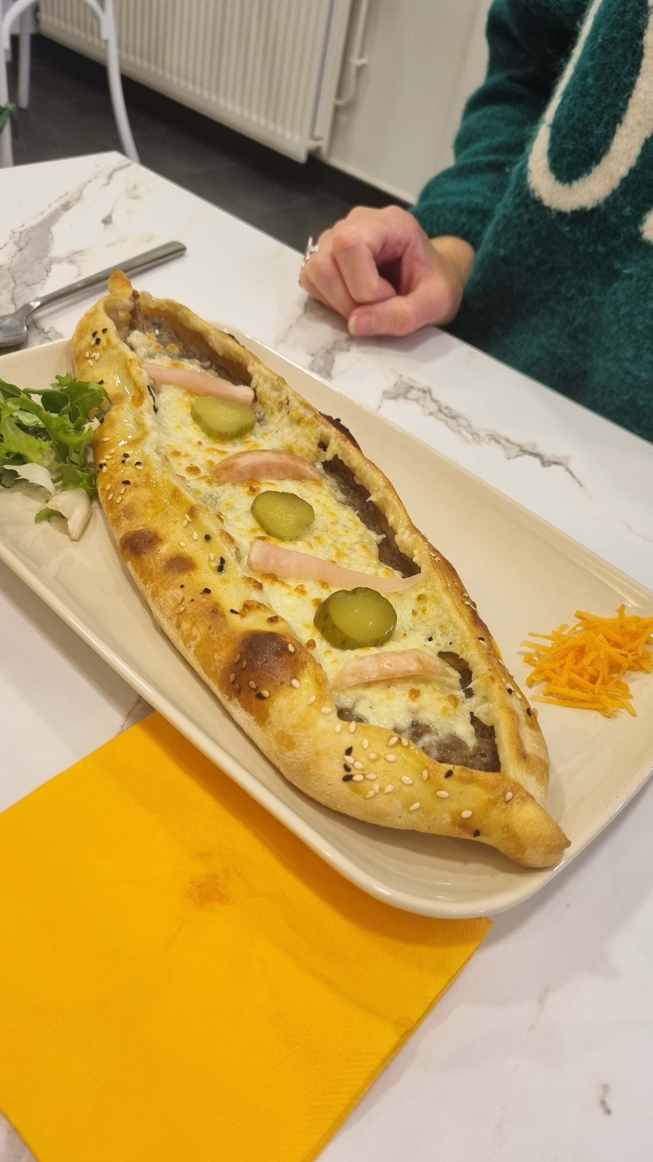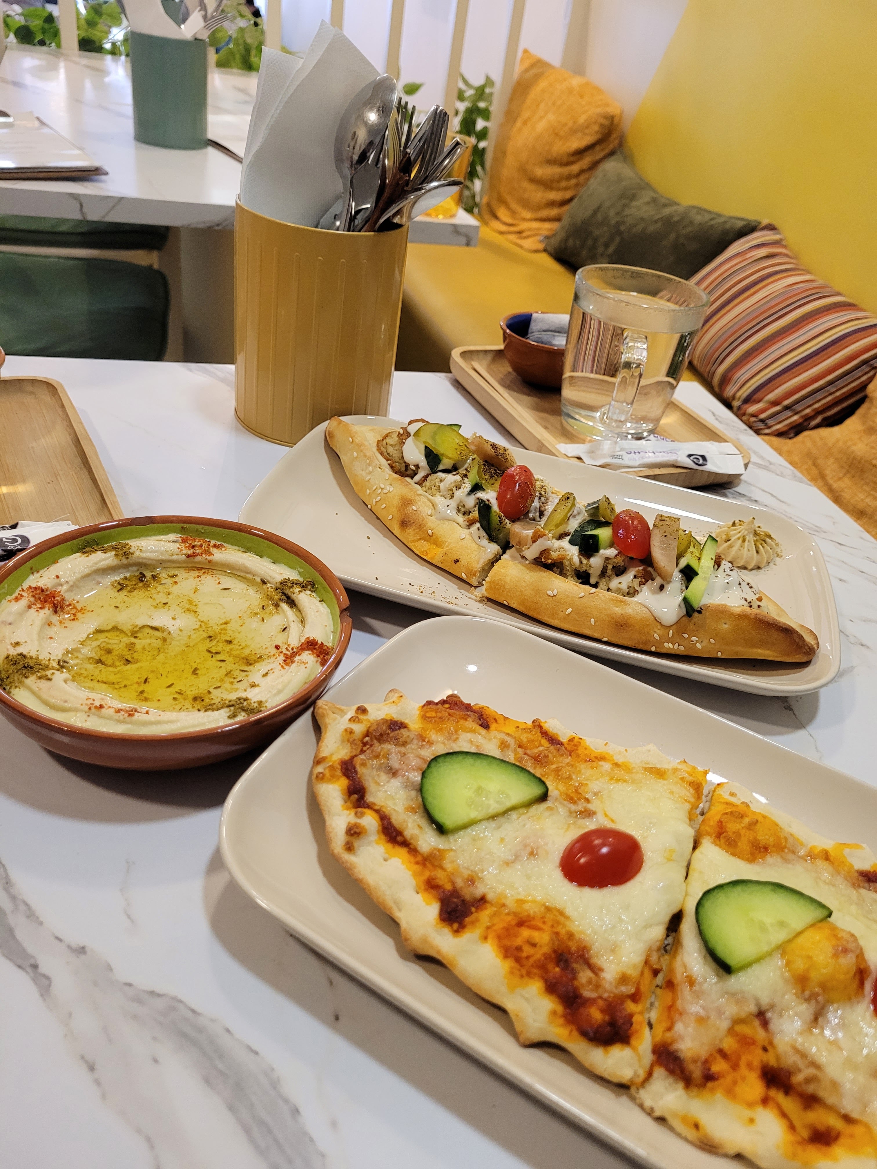Franchement incroyable! Les membres du personnel étaient très gentils, et le pizza bateau falafel est incroyable. J’adore, je recommande absolument 💯💯