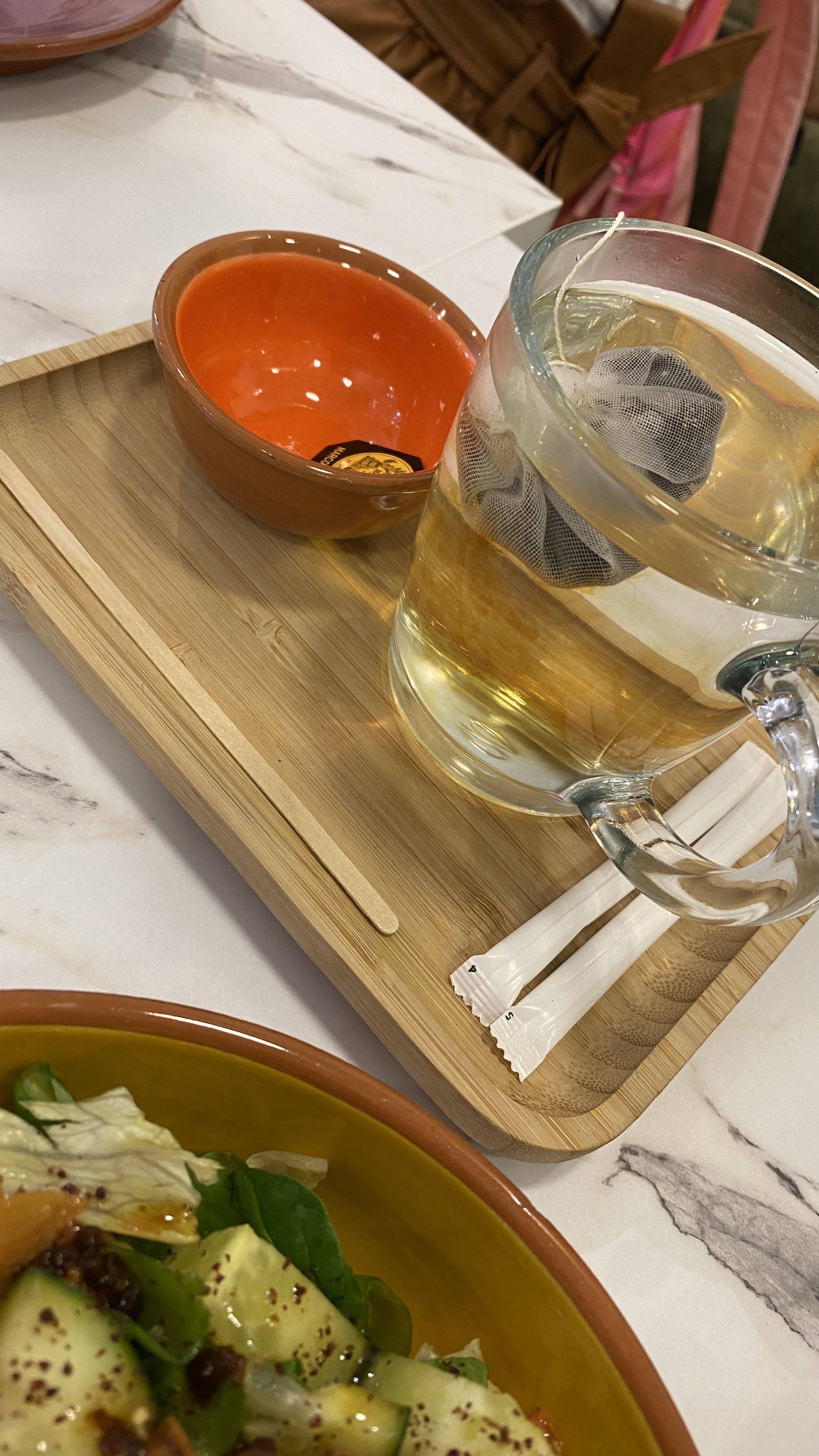 Une tartelette fraise à la fleur d'orchidée !! et accompagnée d'un sublime chaï latte puis d'un thé vert mariage. Un délicieux moment et un service très souriant.