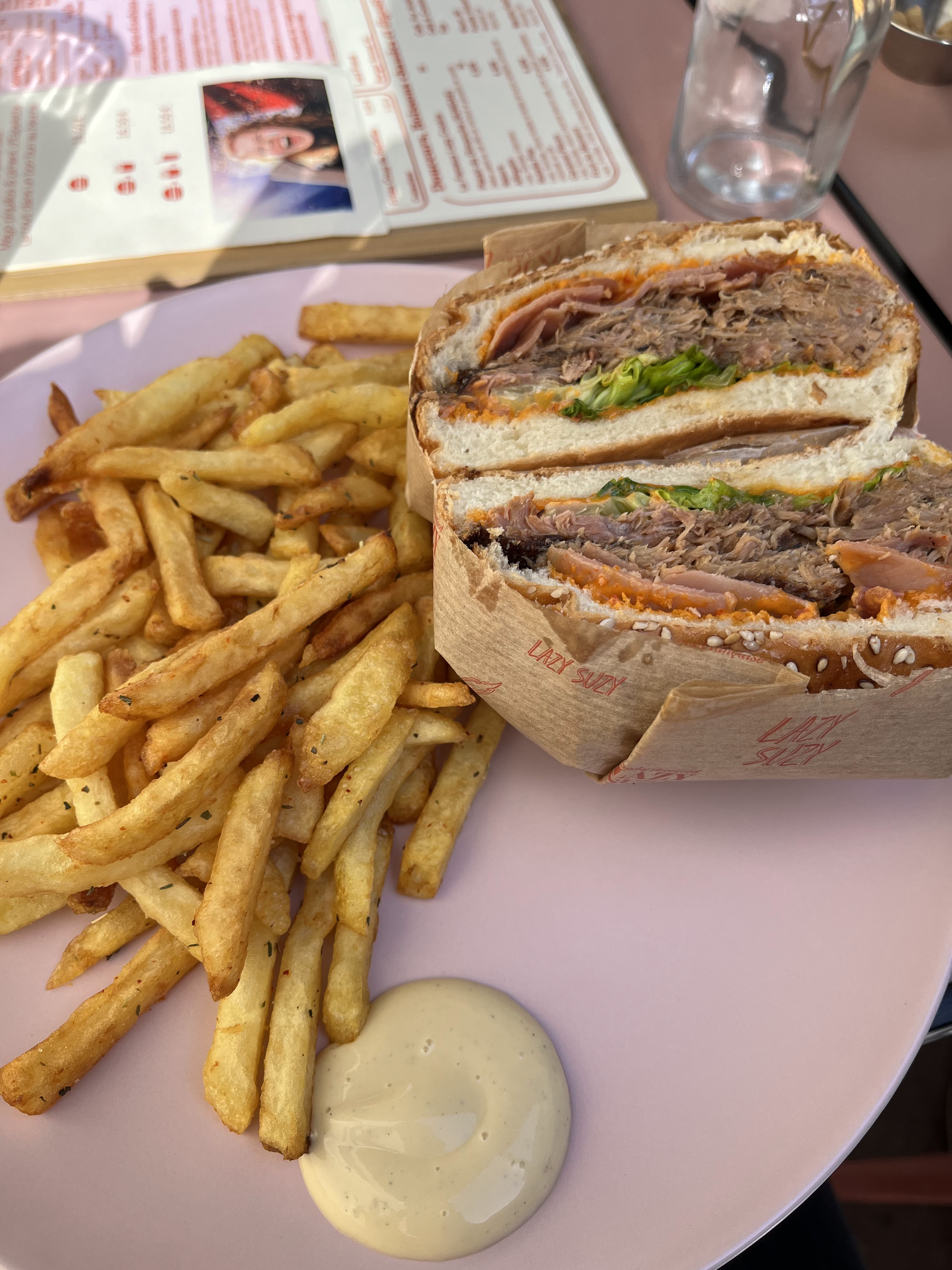 Premier repas au Lazy Suzy et pas le dernier ! Je me suis régalée avec le burger tradition, les frites sont délicieuses avec les petites herbes et la mayo signature est à tomber par terre pour un tarif plus que raisonnable. À très vite !