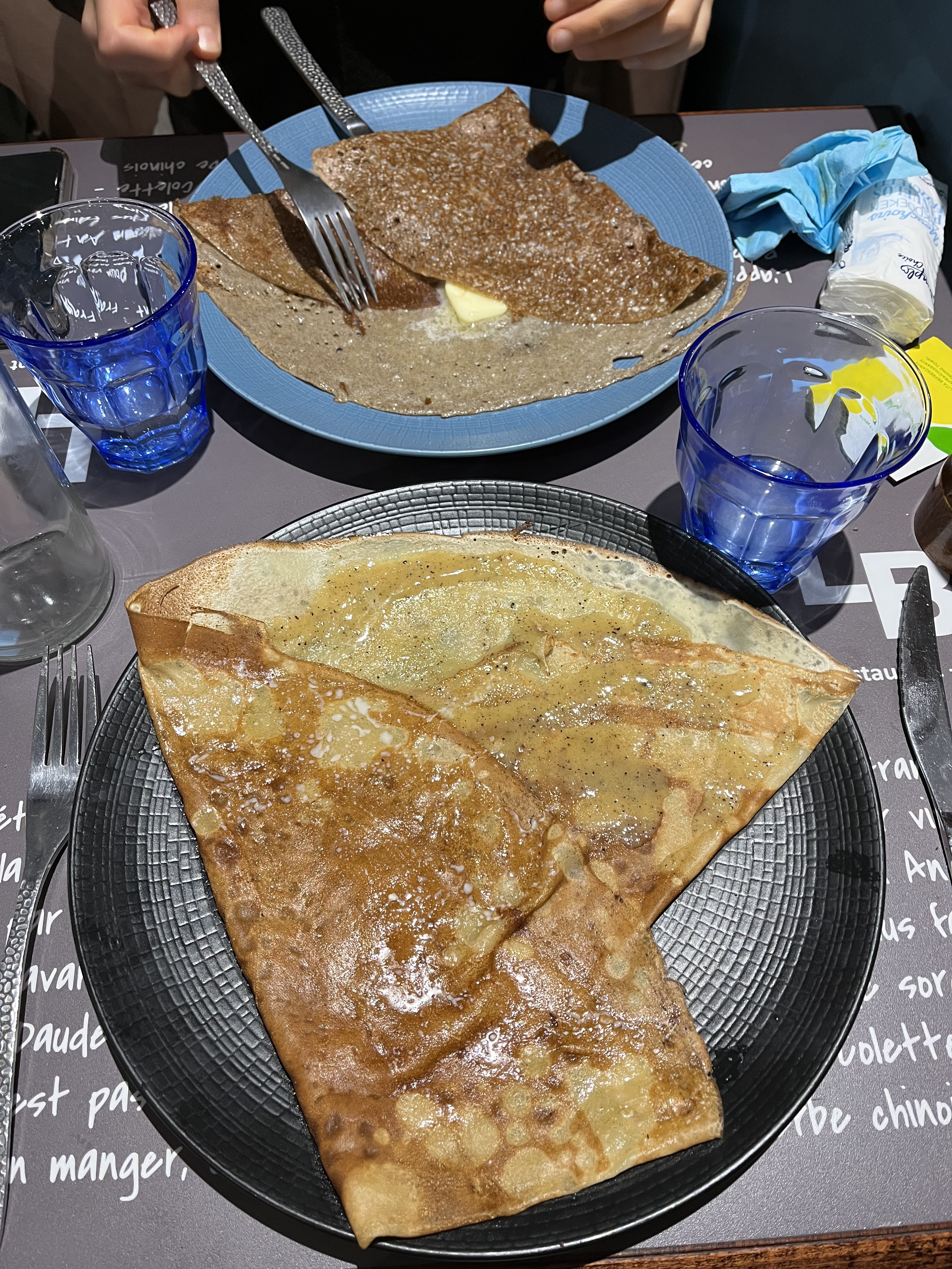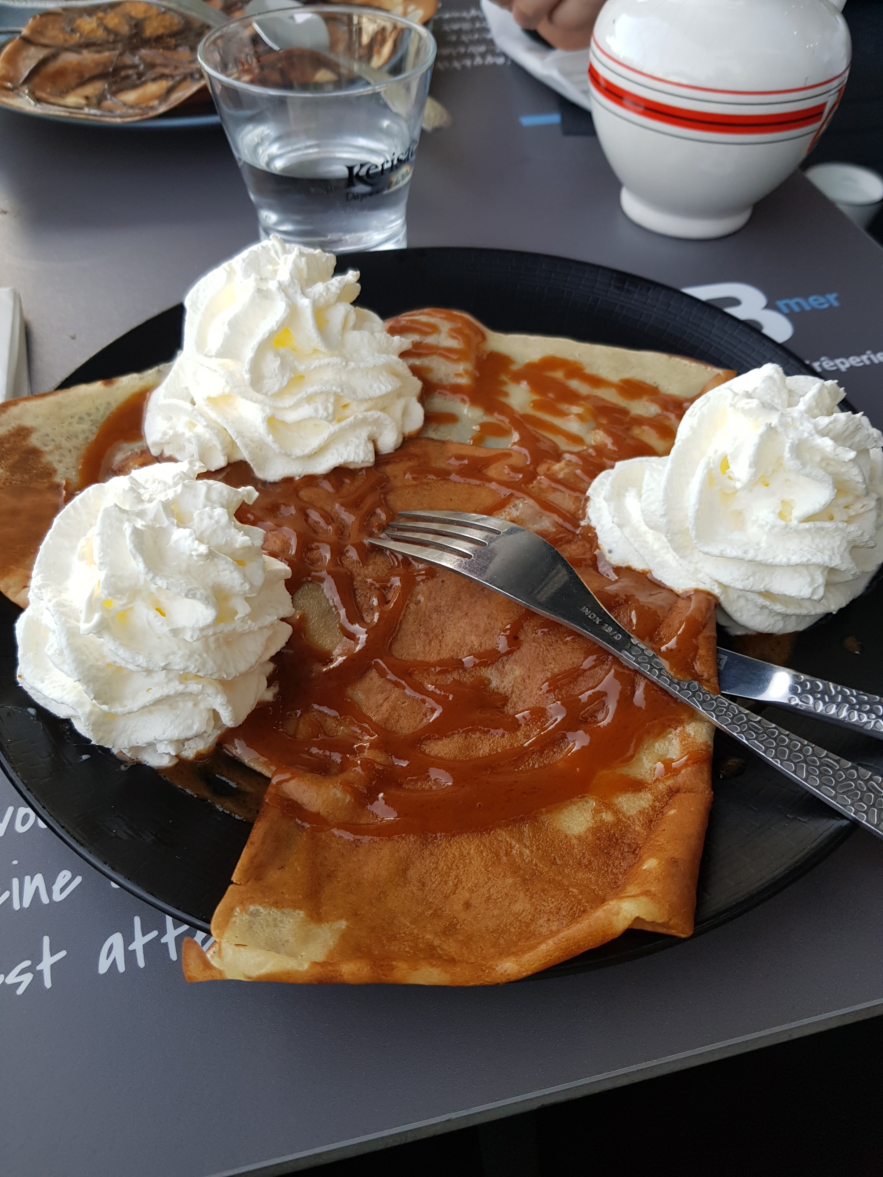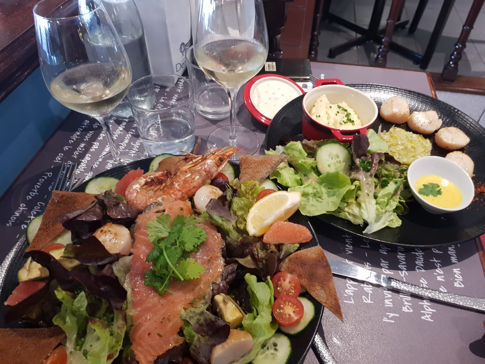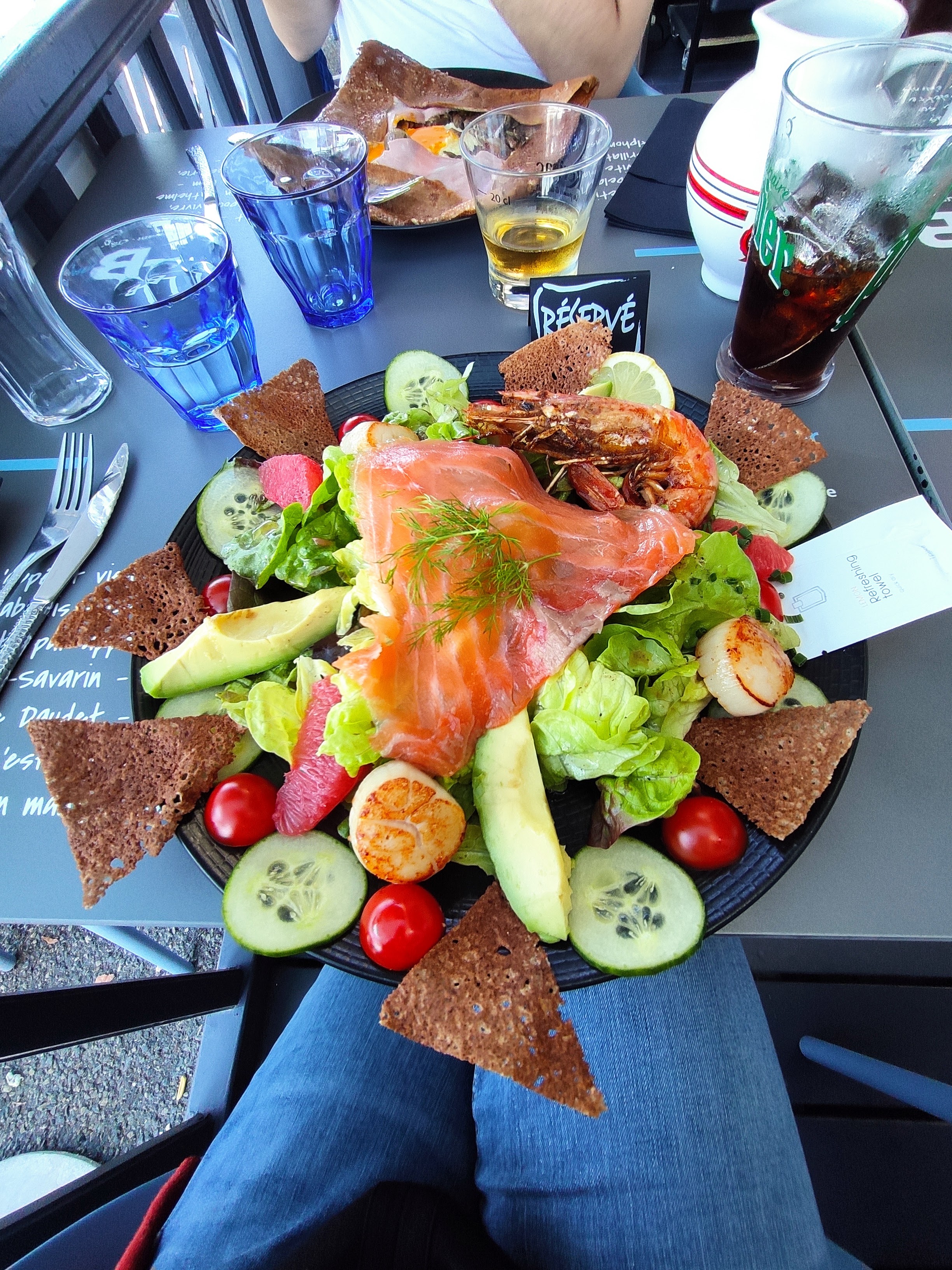De délicieuses crêpes et moules frites. Si vous commandez la salade de fruits de mer, méfiez-vous. C'est énorme ! (et très délicieux)