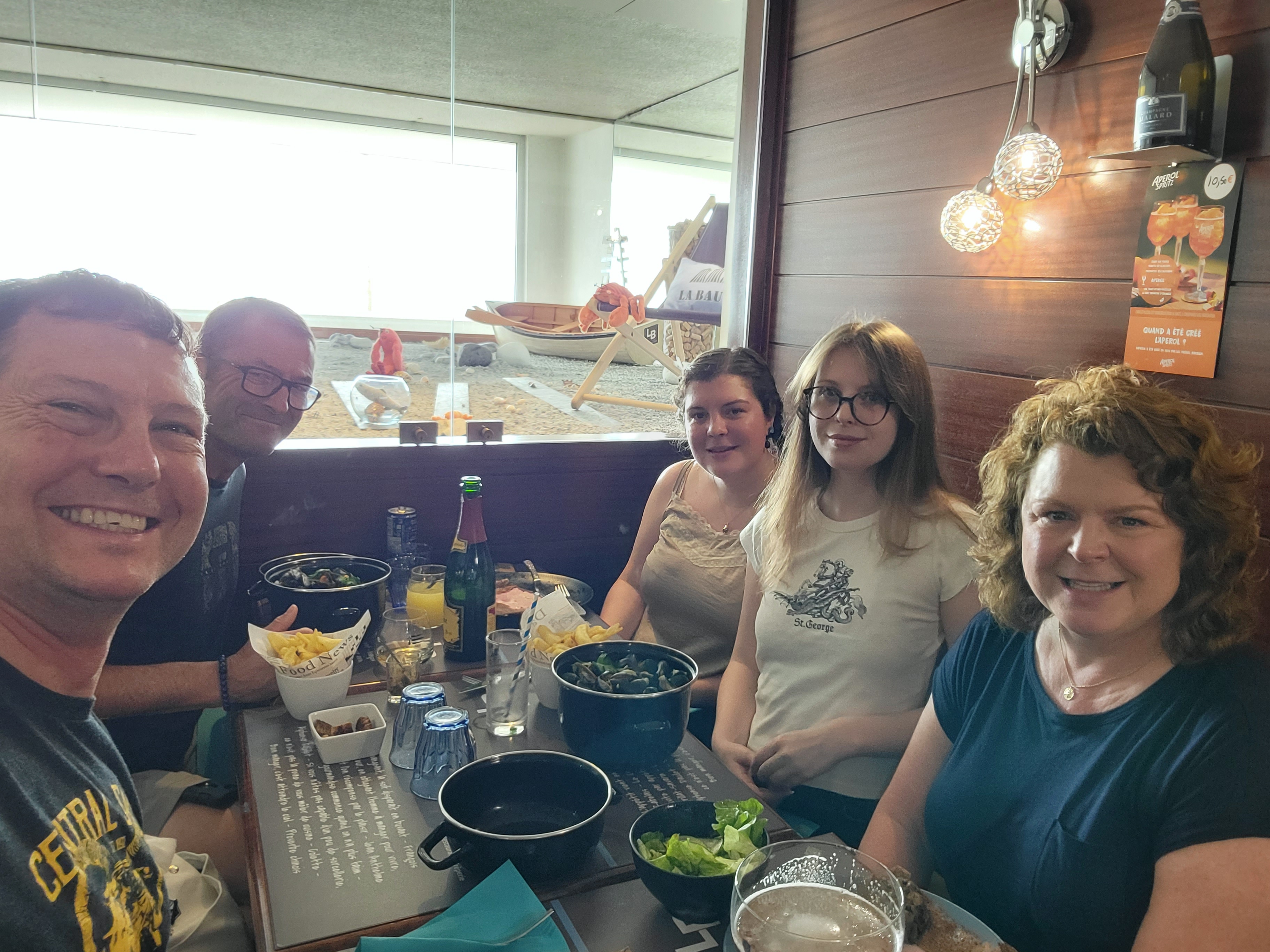 Un Très bon accueil pour moi et mes 2 filles en début de service ce vendredi 27 mai. Le repas s'est très bien passé , avec une belle vue sur la mer. Nous avons pris 3 moules marinieres que j'ai trouvé très bonnes. Mais peut-être un problème de lot, Je tiens à signaler que j'ai eu des troubles digestifs dès le lendemain matin et ce pdt 2 jours. J'ai cru que j'en avais trop mangé mais je n'ai plus eu de doute lorsque ma petite de 2 ans est tombée malade aussi après et qui elle en avait bcp moins mangé. J'espère que d'autres clients n ont pas été inommodés. Je remercie la serveuse et le patron ( je crois )qui nous ont tres bien accueillies