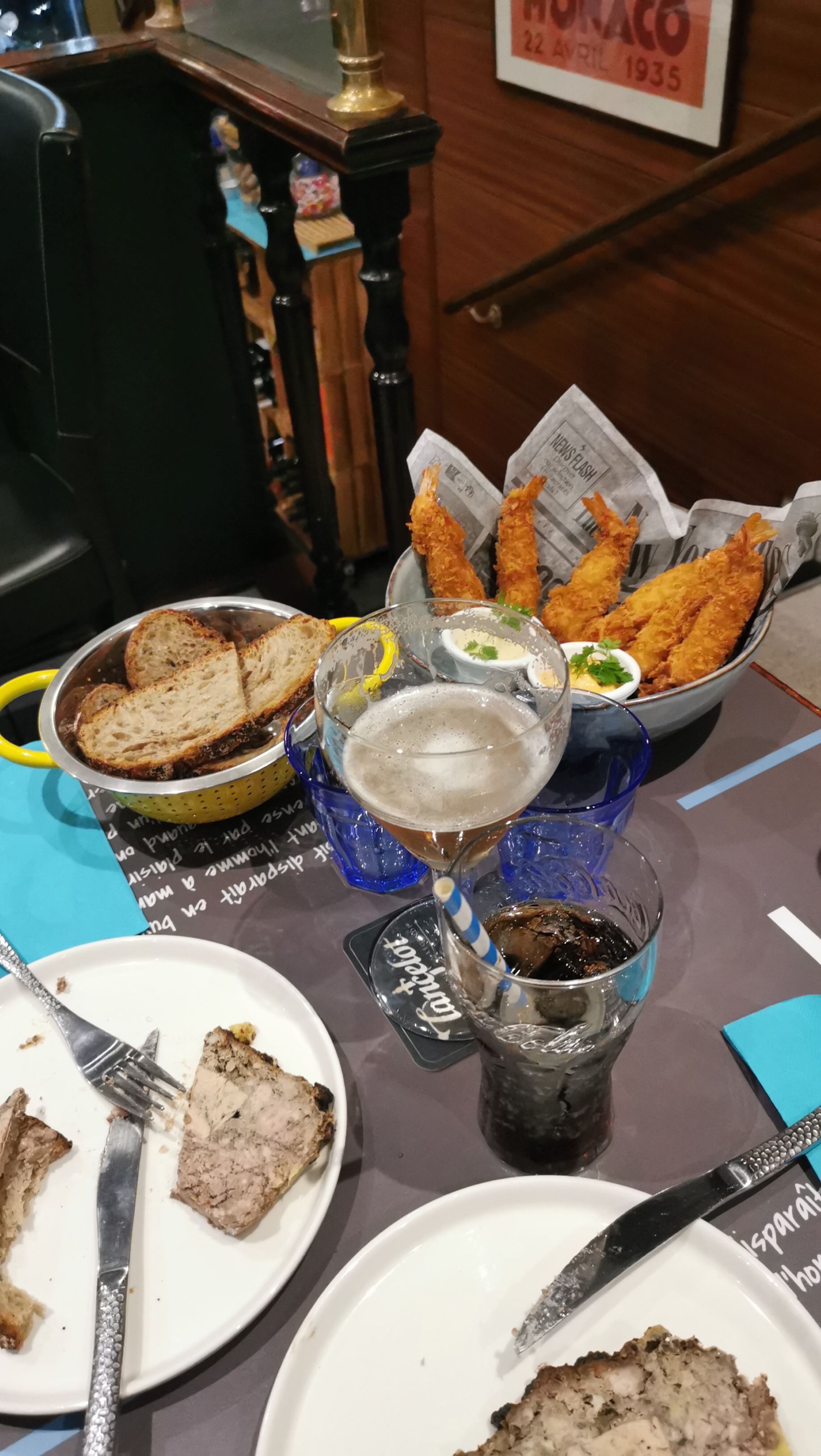 J'aurai aimé savoir que les gambas étaient fries, auquel cas je n'en aurai pas pris. Les moules marinières sont excessivement chères (19€ !!) mais pas bonnes (assaisonnement qui manque cruellement de vin, de sel...). Les frites sont jaunes fluo et surgelés. En revanche le service est bien, le patron semble très sympathique et sociable avec les clients. J'imagine que la note de 4,7 est due aux galettes / crêpes que nous n'avons pas goutté.