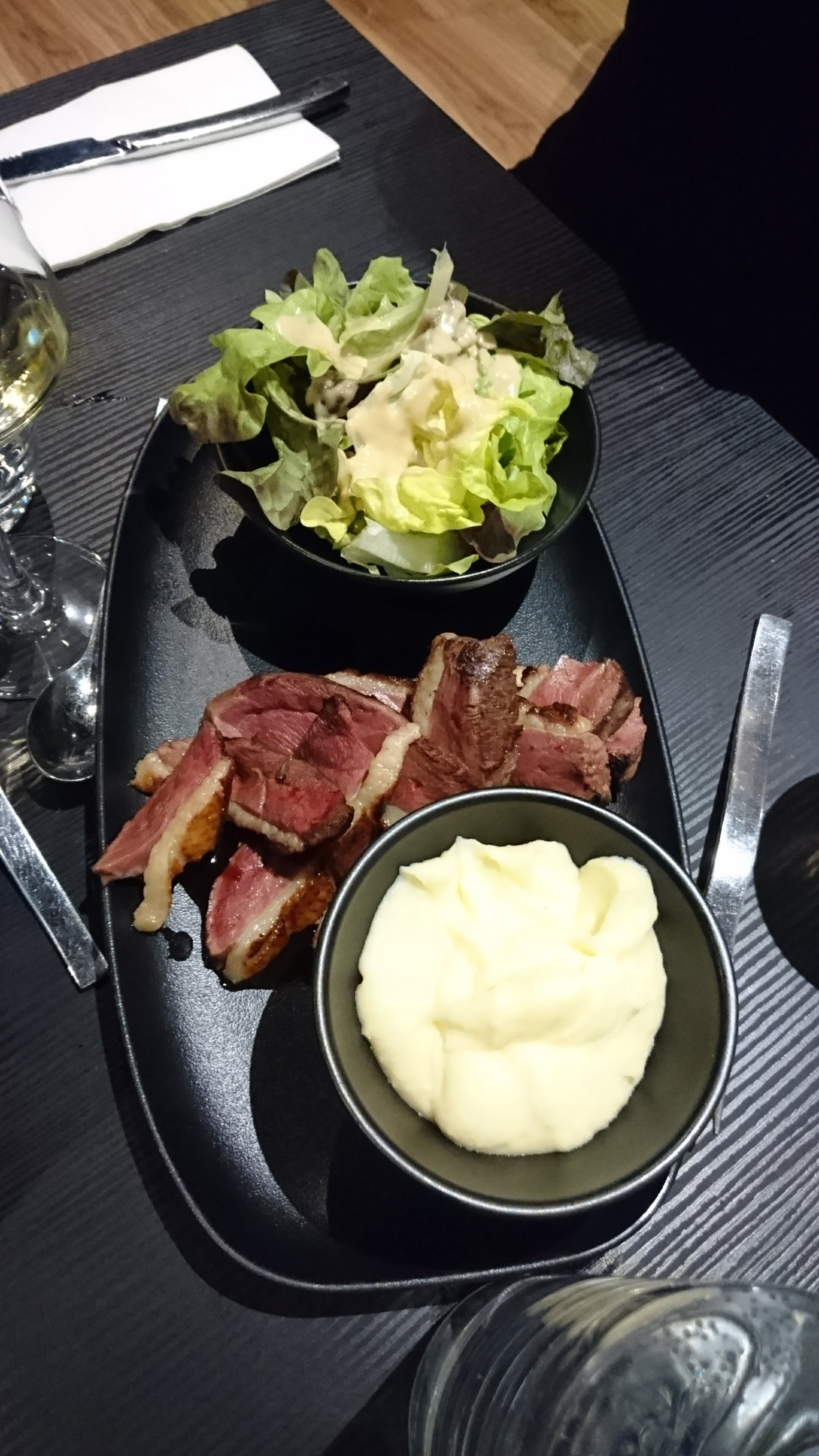 Superbe restaurant, un accueil chaleureux et un service très très rapide ! A la carte vous avez tellement de choix, tout à l’air bon (on aimerais tout commander ☺️). Étant de nature carnivore j’ai opté pour une noix d’entrecôte qui était délicieux, facile à couper tellement tendre … merci au chef pour ce repas ! Les prix sont de la qualité des produits. Je vous le recommande les yeux fermés !! ✨