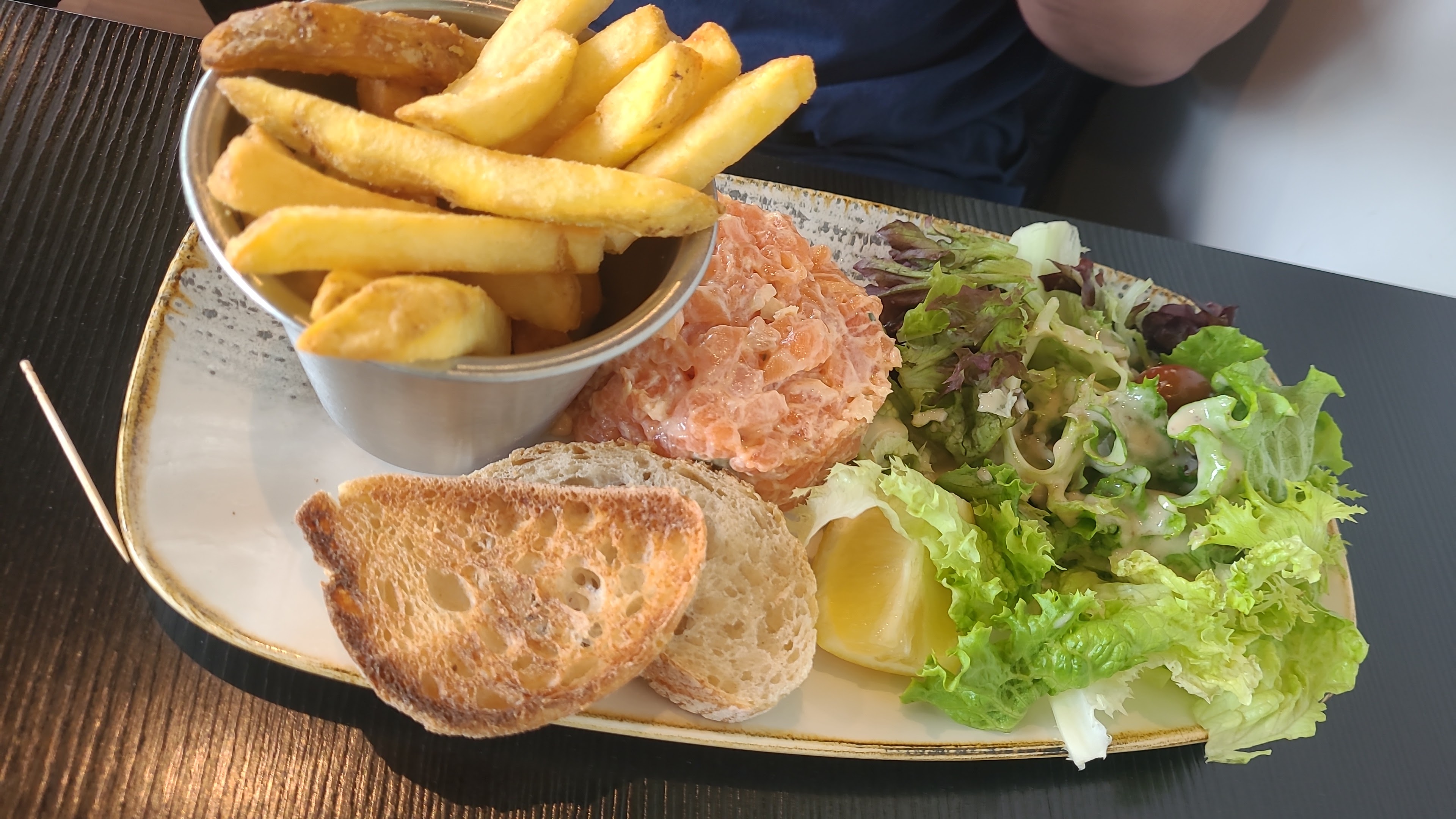 Lieu très sympathique la salle est lumineuse et bien agencée, les produits sont frais et bien cuisinés. Par contre un bémol pour la serveuse qui s'est occupée de notre table elle n'était pas très avenante ,n'y très agréable. Mais j'y retournerai !
