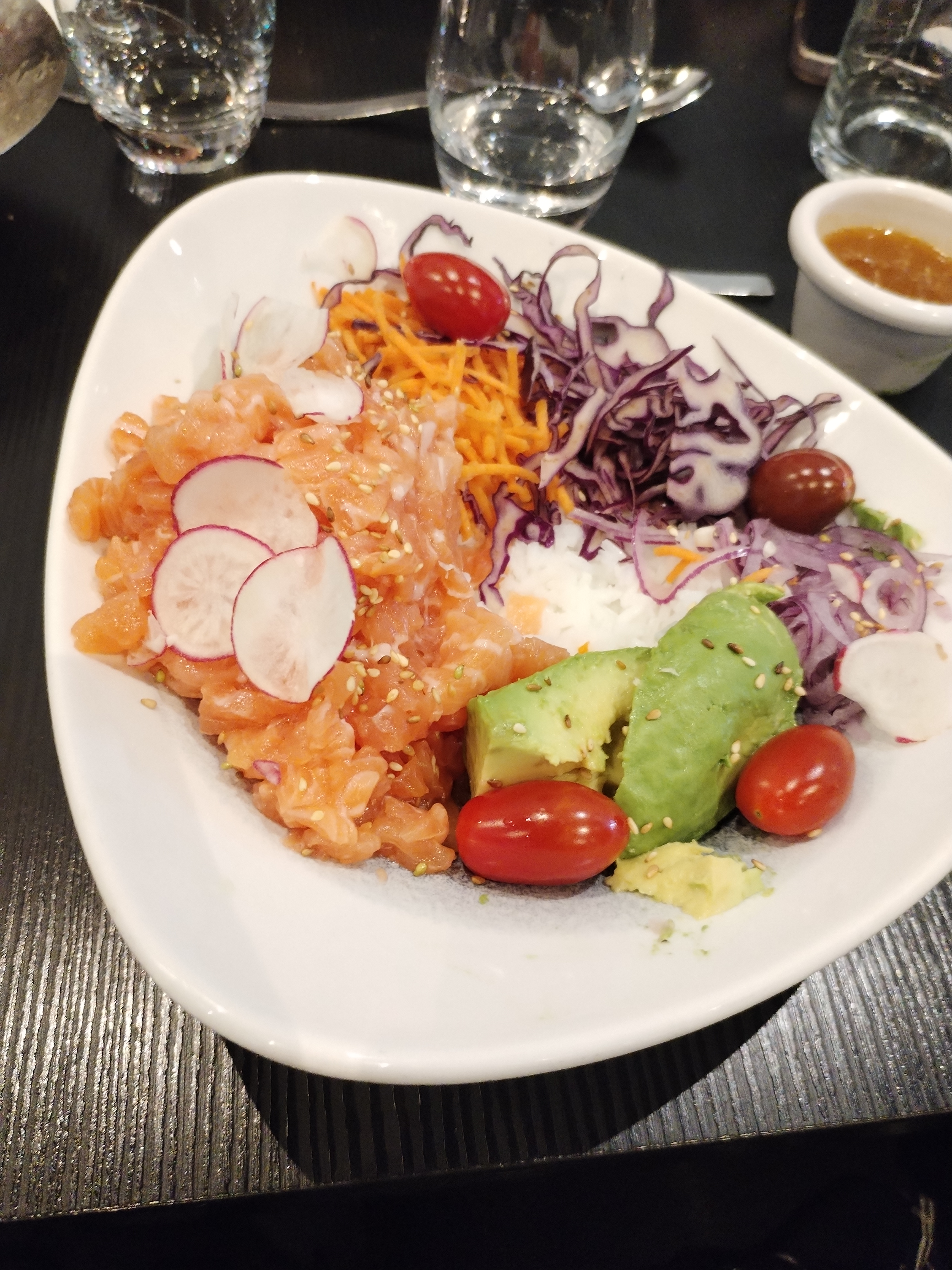 Choix. Service parfait. Lieu agréable. J'enleve une étoile car quantité limite. J'ai pris tartare de saumon et saint Jacques, il était délicieux mais mélangé avec beaucoup de tomates cerises .... Dommage. C'est vrai la tomate cerise est moins chère