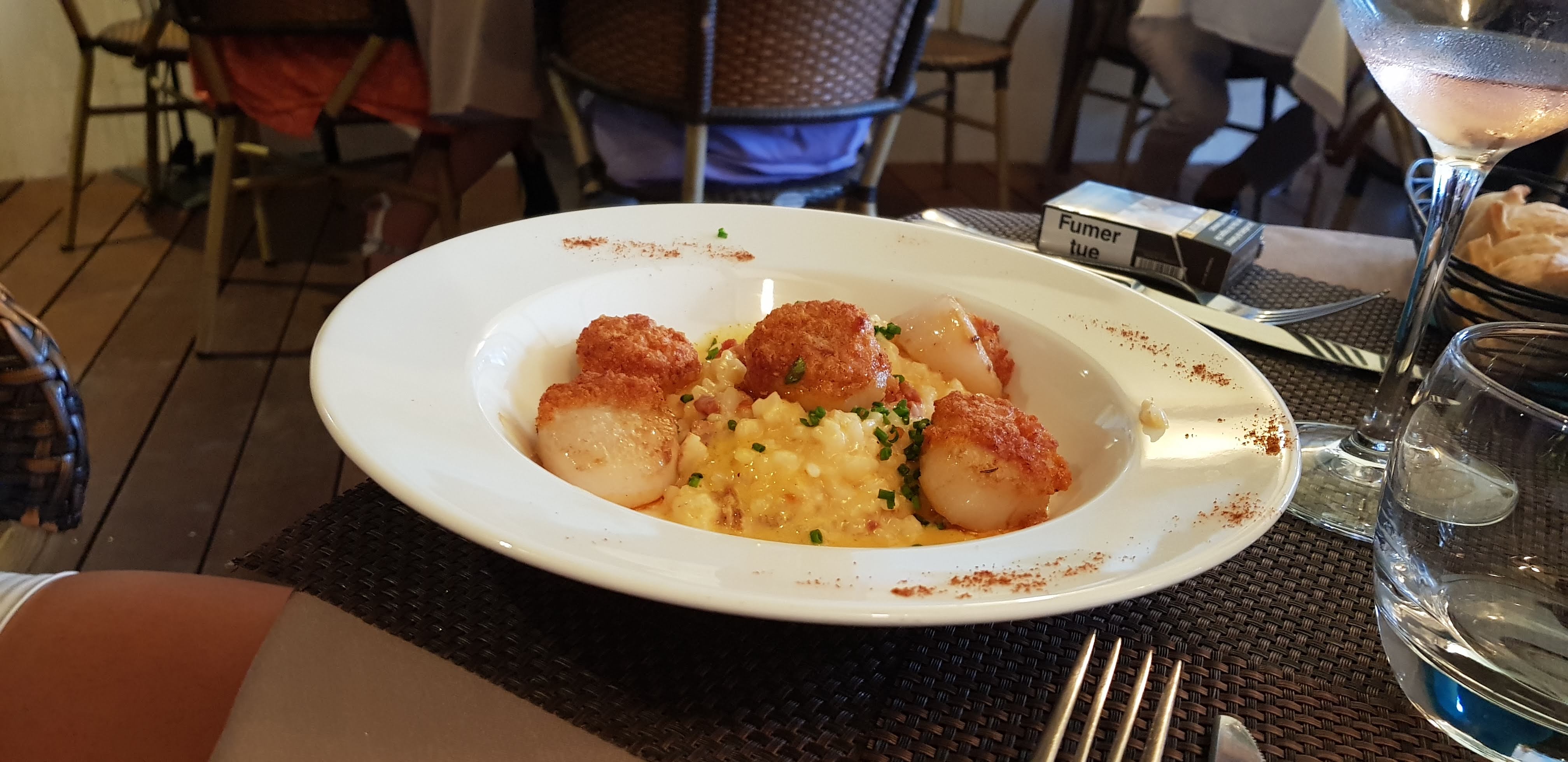 Nous avons été déçus car après avoir lu toutes ces critiques élogieuses, nous nous attendions au top du top, à l'excellence. En fait, le cadre est banal, la terrasse est petite, la salle tout en longueur, la vue directe sur parking, les plats n'ont rien d'exceptionnel, pas très copieux et la présentation peu élaborée. Un petit resto où le service est rapide et efficace. Mais lorsqu'on va au restaurant, on aime prendre son temps, le plaisir est aussi d'attendre un peu entre chaque plat pour profiter tranquillement d'un bon moment entre amis. Finalement un petit troquet sans prétention, comme il y a bien d'autres à Cavalaire, même si les critiques ne leur sont pas aussi favorables.