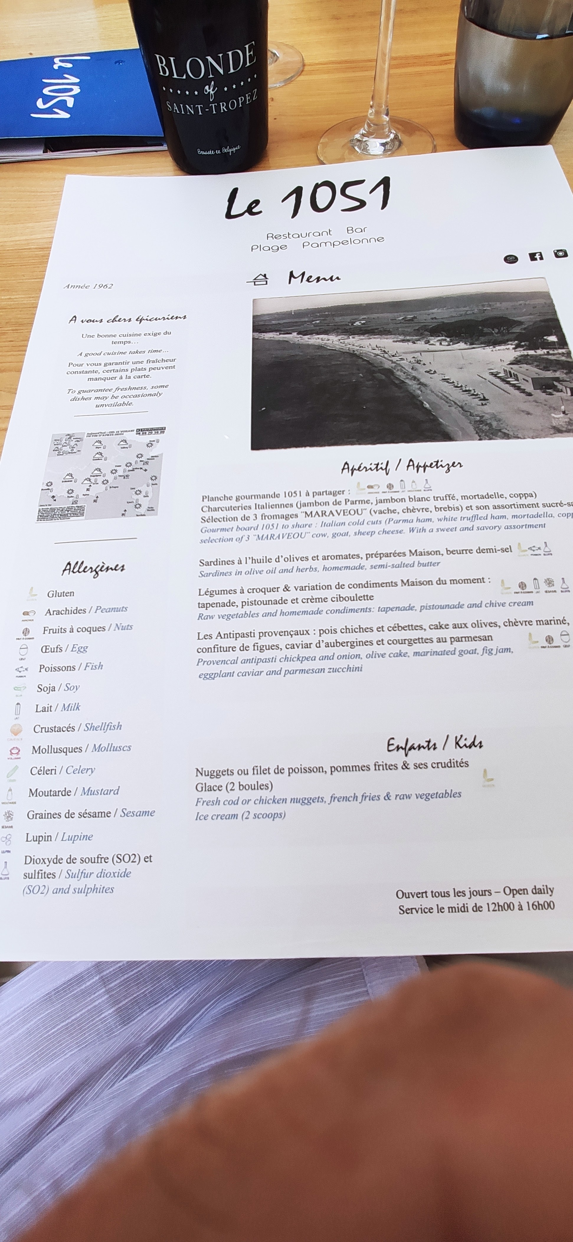 Petite journée entre amis improvisé. Direction le 1051 pour une première. Dès l’accueil, on sait que l’on va passer un bon moment. L’endroit est superbe, le personnel au petit soin. Lucas nous a remarquablement installé. Et pour finir l’addition est raisonnable pour Pampelonne. On reviendra avec plaisir.