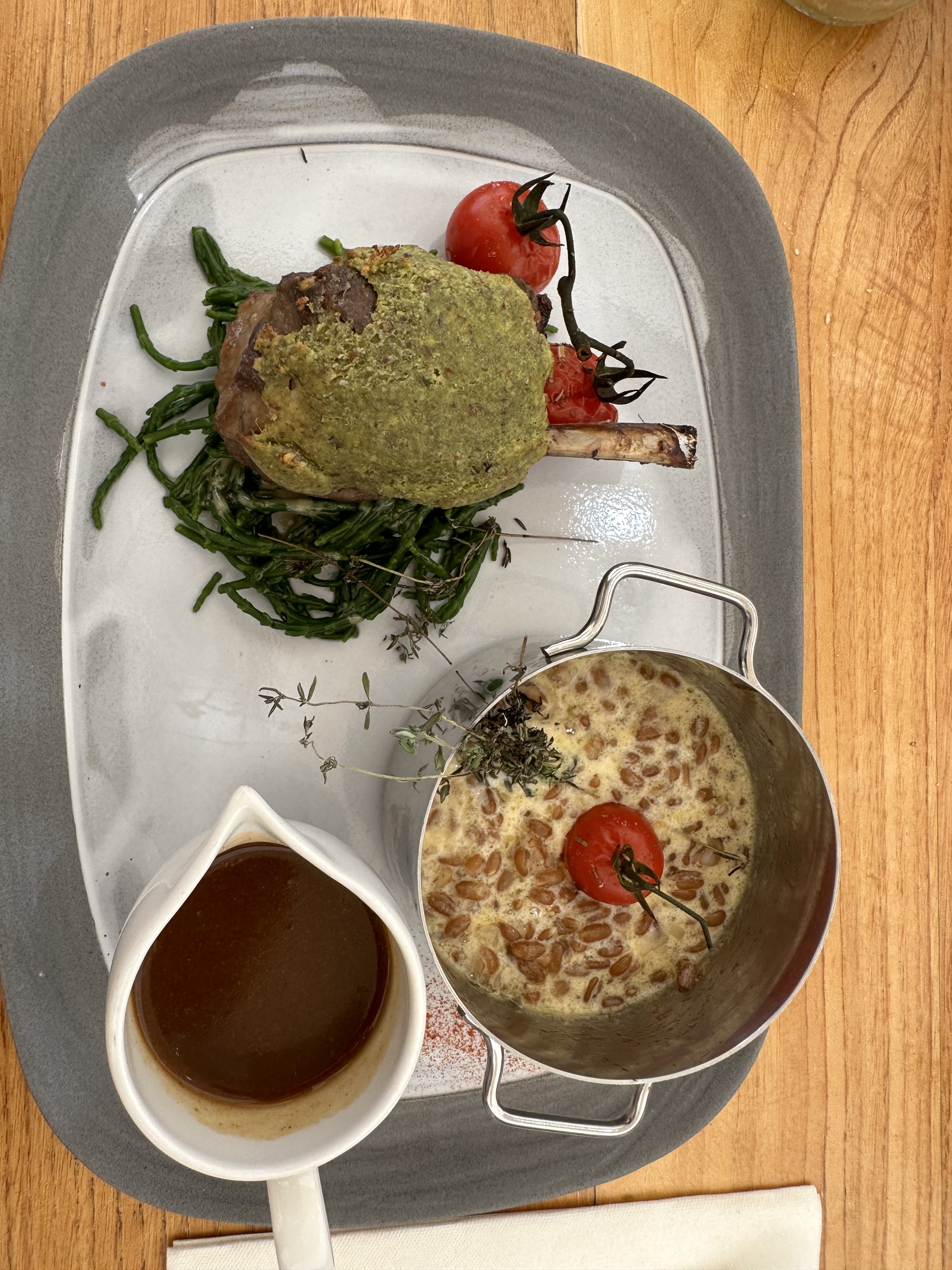 Tout le personnel était très agréable et prevenant. La cuisine: carré d agneau, tartare, poêlée de coquillages, poissons et desserts, tout etait excellent. Ambiance cool, détendu, discret, cadre agréable.