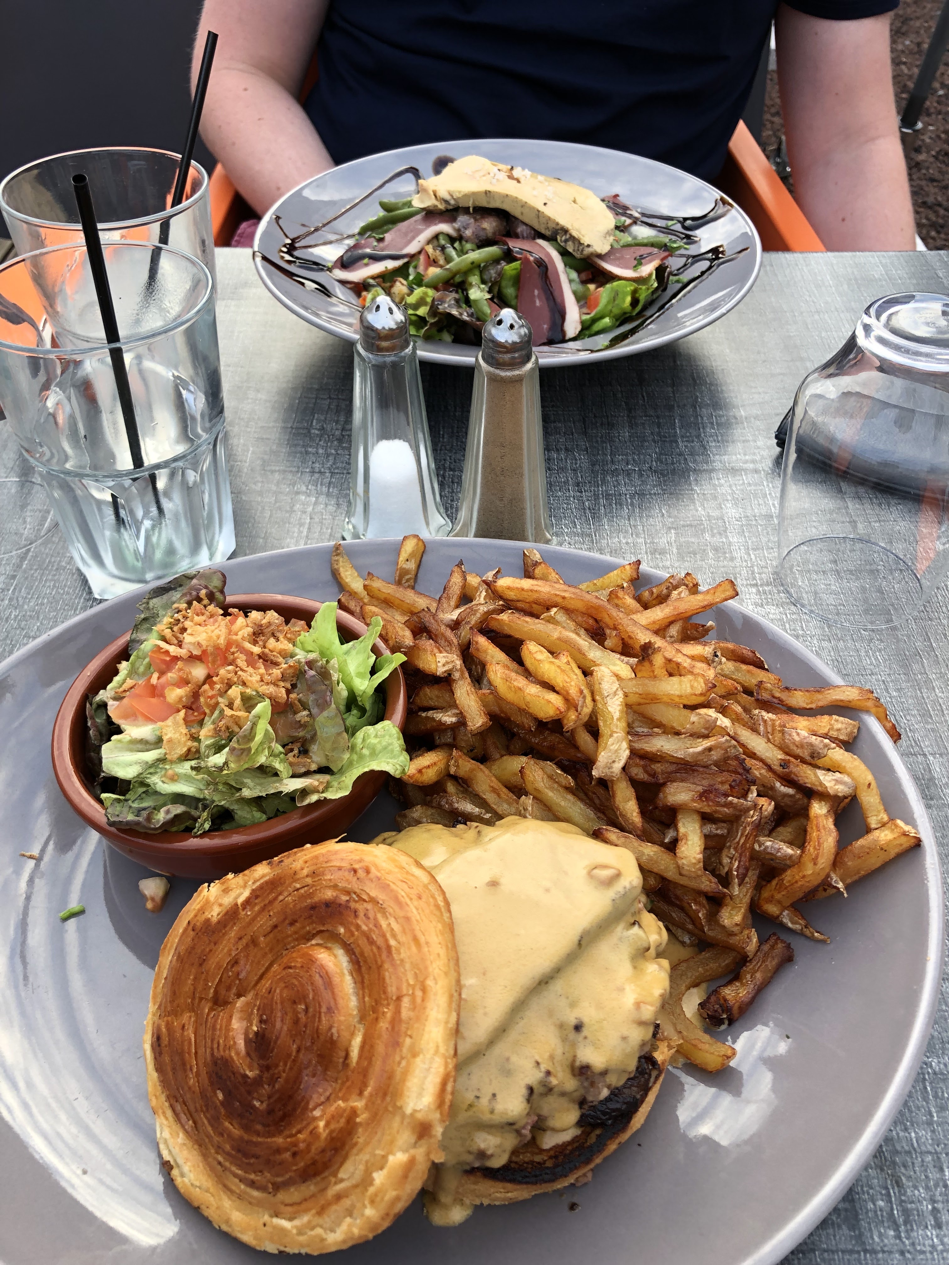 Accueil sympathique, mais le restaurant presque entièrement vide. J’ai été manger un samedi soir vers 20h et il n’y avait que 2 autres tables avec moi. Quand au plat j’ai pris le burger avec le steak haché de canard , c’est assez particulier vous serez sûrement déçu mais la sauce au foie gras « sauve » le plat.