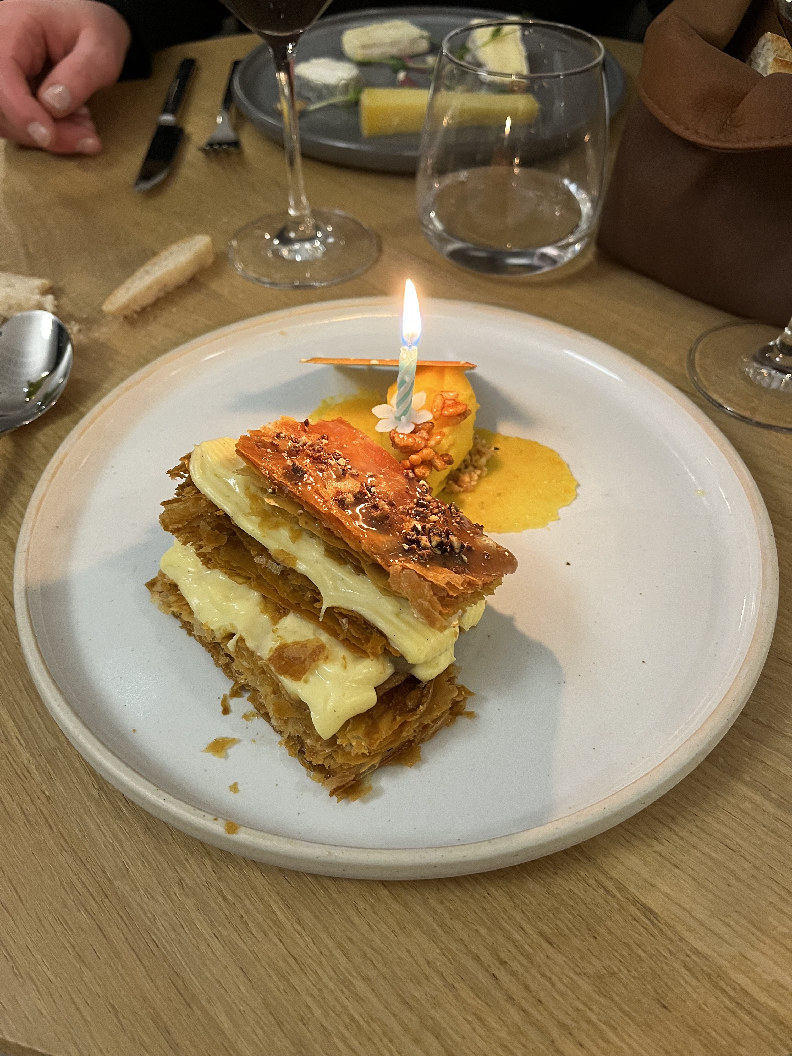 Très bonne soirée, niveau cuisine le dessert trop fort en qté de pate feuilletée pas assez de crème et de gout