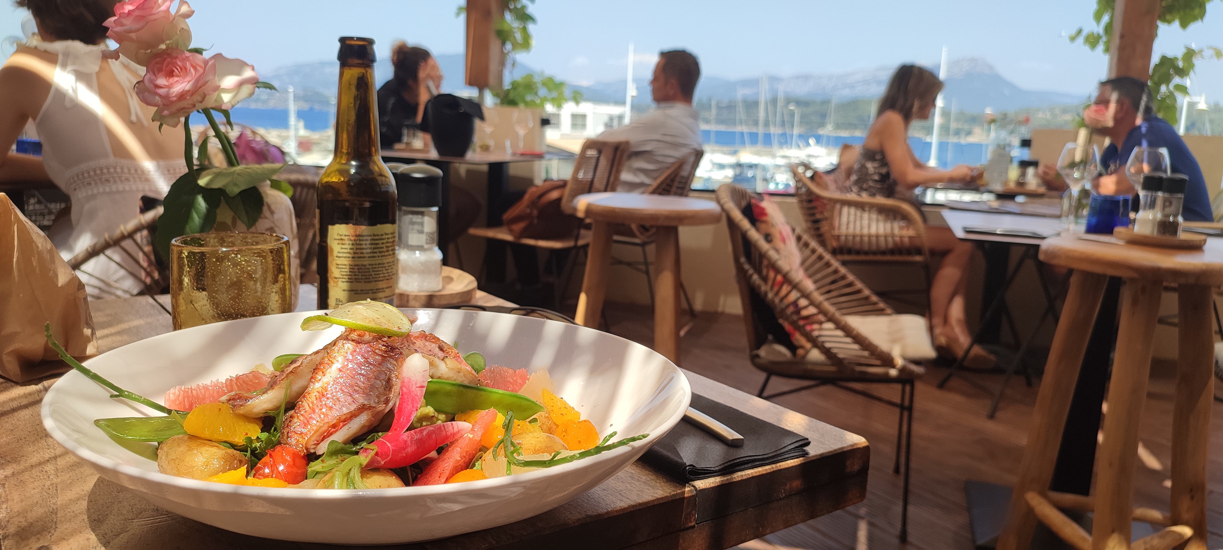 Tout simplement excellent, testez l’avocado toast à l’apéro, à partager dans ce cas, il est exceptionnel, avec une plache de charcuterie très très bonne, ou en entrée. La déco et le cadre sont superbes avec vue sur le port et la mer, et il y a un roof top ombragé avec une vue mer encore plus dégagée 🤩. Je recommande vivement, le personnel est également très sympathique.
