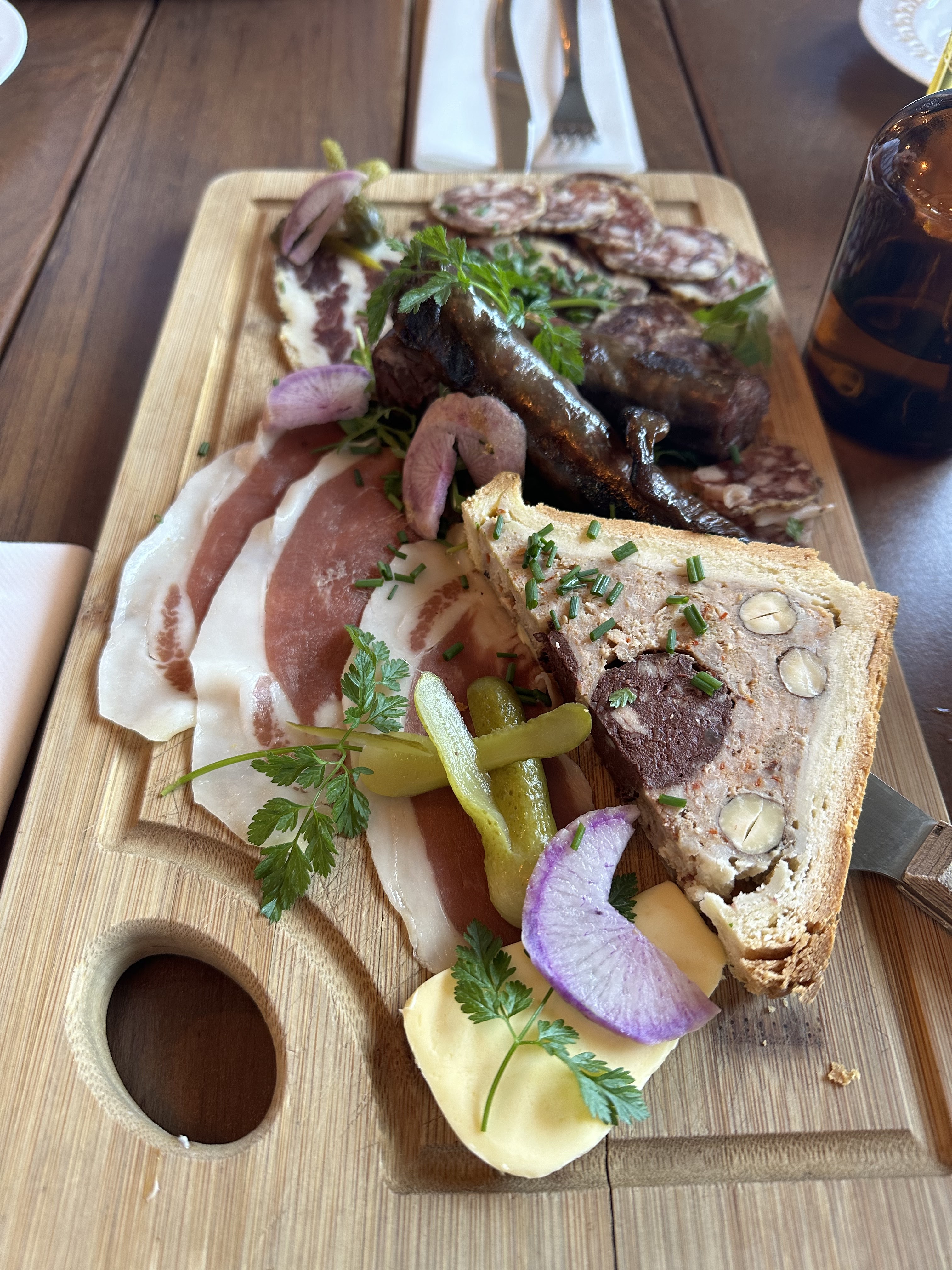 Accueil très mitigé Nous décidons tout de même de nous installer boire un verre Carte ne comprenant même pas les boissons sans alcool (hors cocktails et tarifs très peu attractifs Planche de saucisson vraiment légère.
