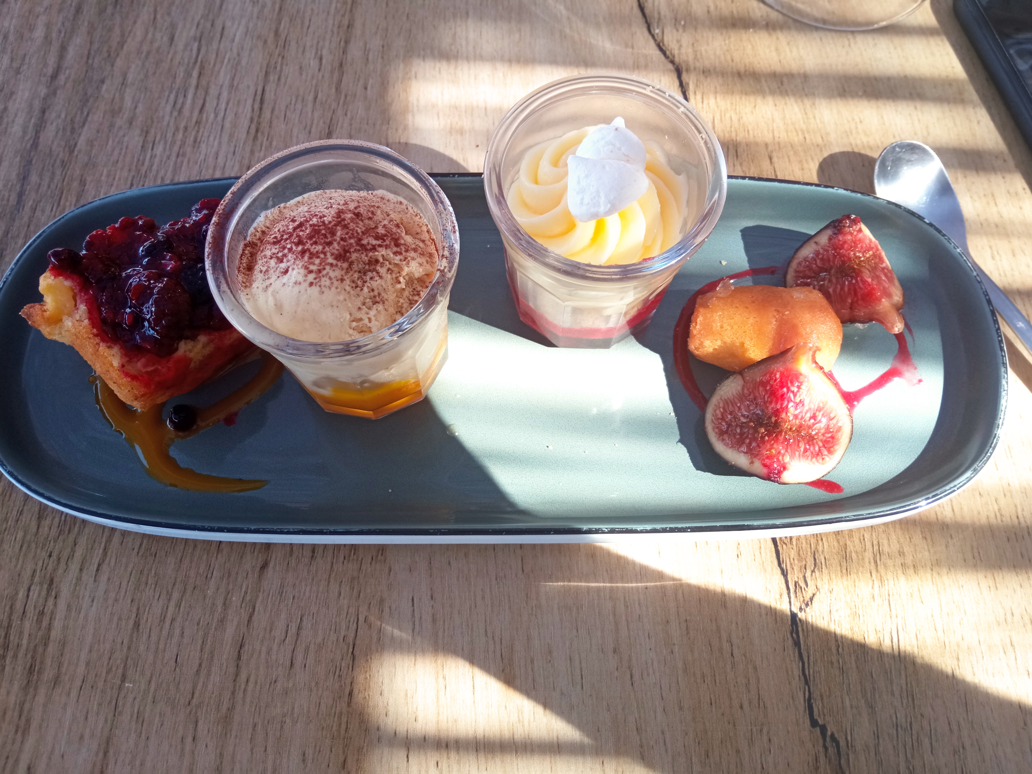 Je recommande le tiramisu au café servi de façon surprenante ! Pas de fruits frais pour les amateurs !