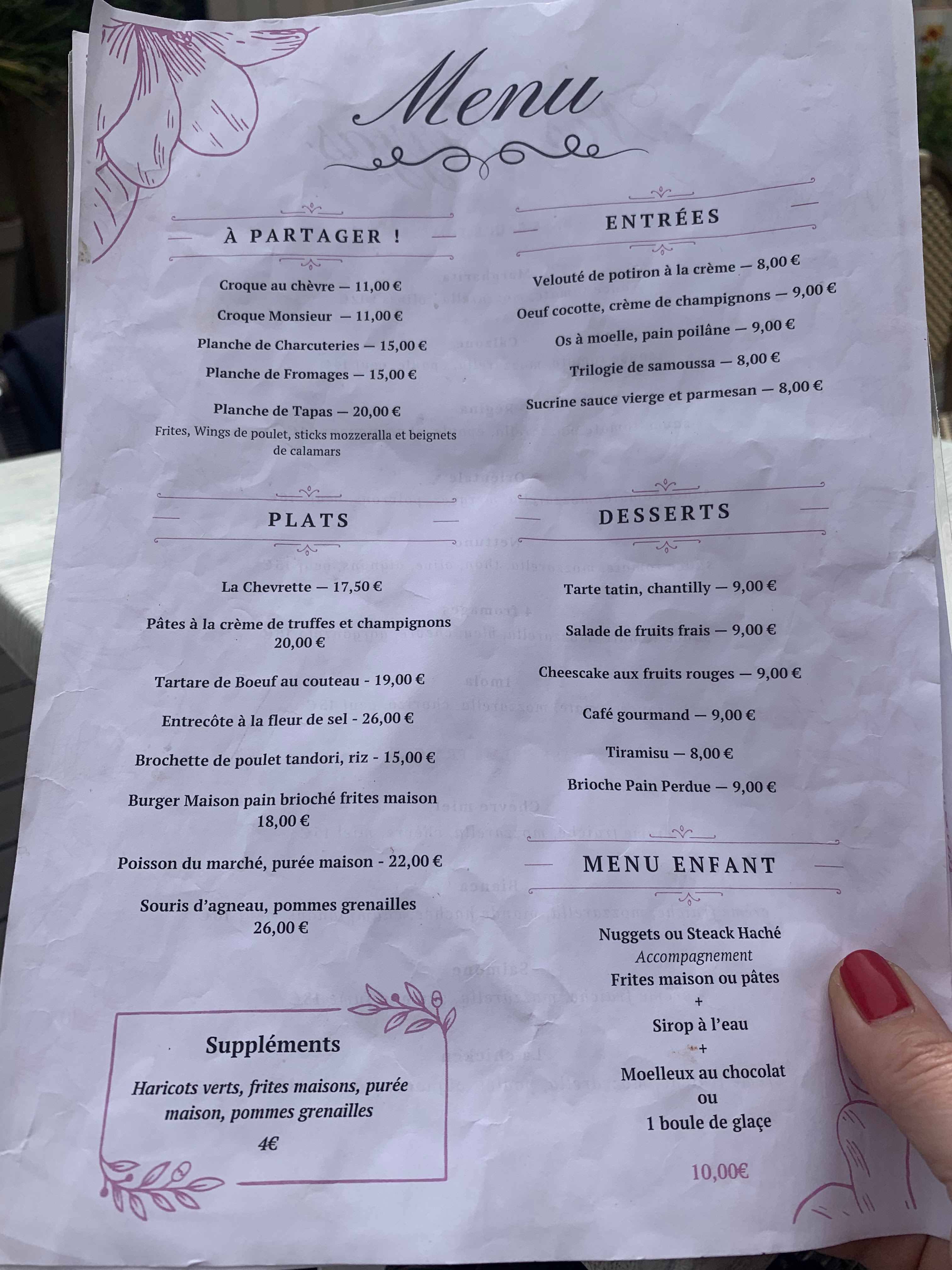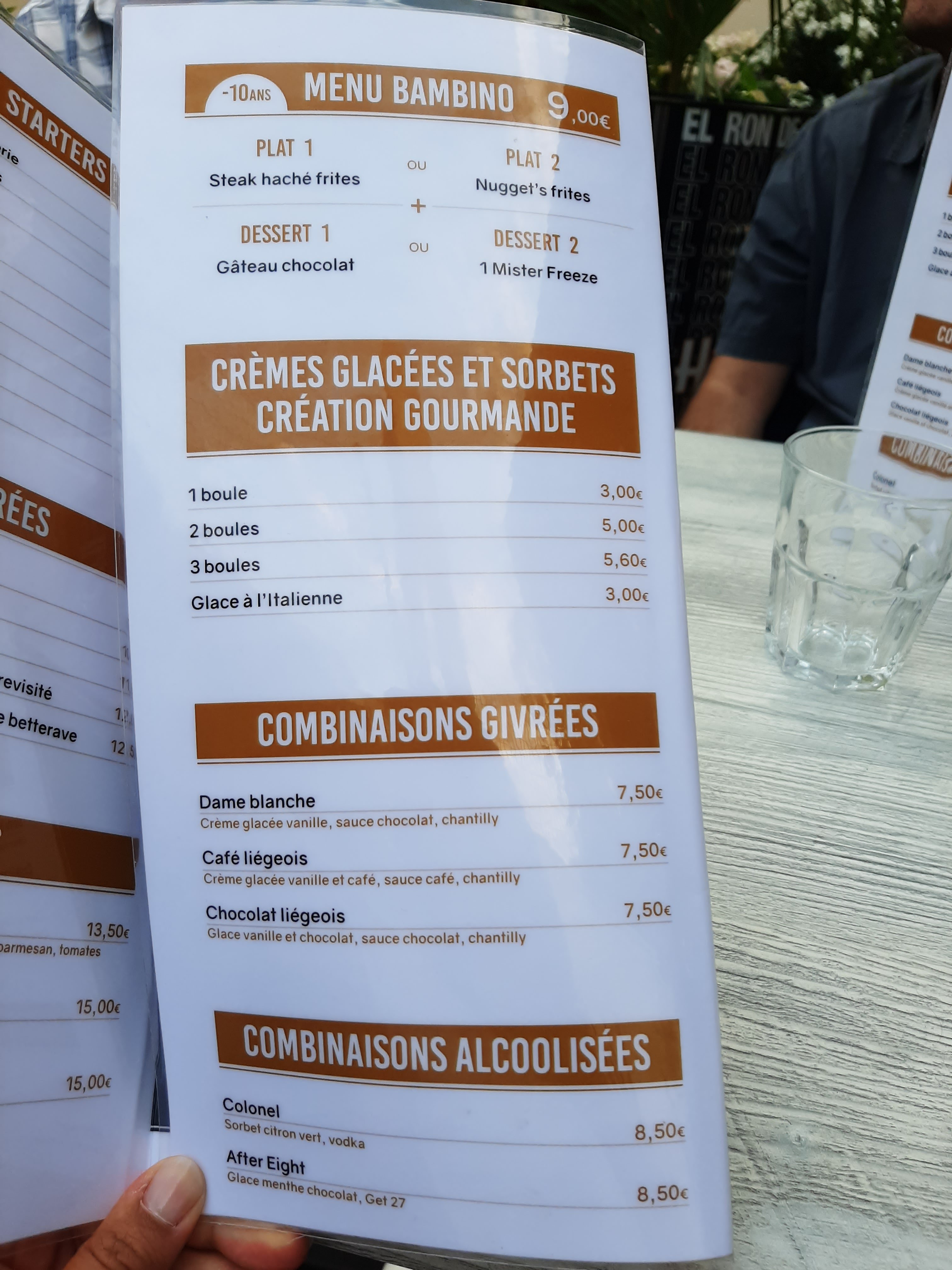 La musique est trop forte, les prix de la carte sont excessifs ( peut être prévoir des menus). J'ai eu droit à de la chantilly périmée (la serveuse me l'a confirmé) j'aurai préféré avoir une remise plutôt qu'un digestif offert (sachant qu'on aime pas ça). Les points positifs: La serveuse était sympa, souriante. La viande était bonne mais les frites très moyennes