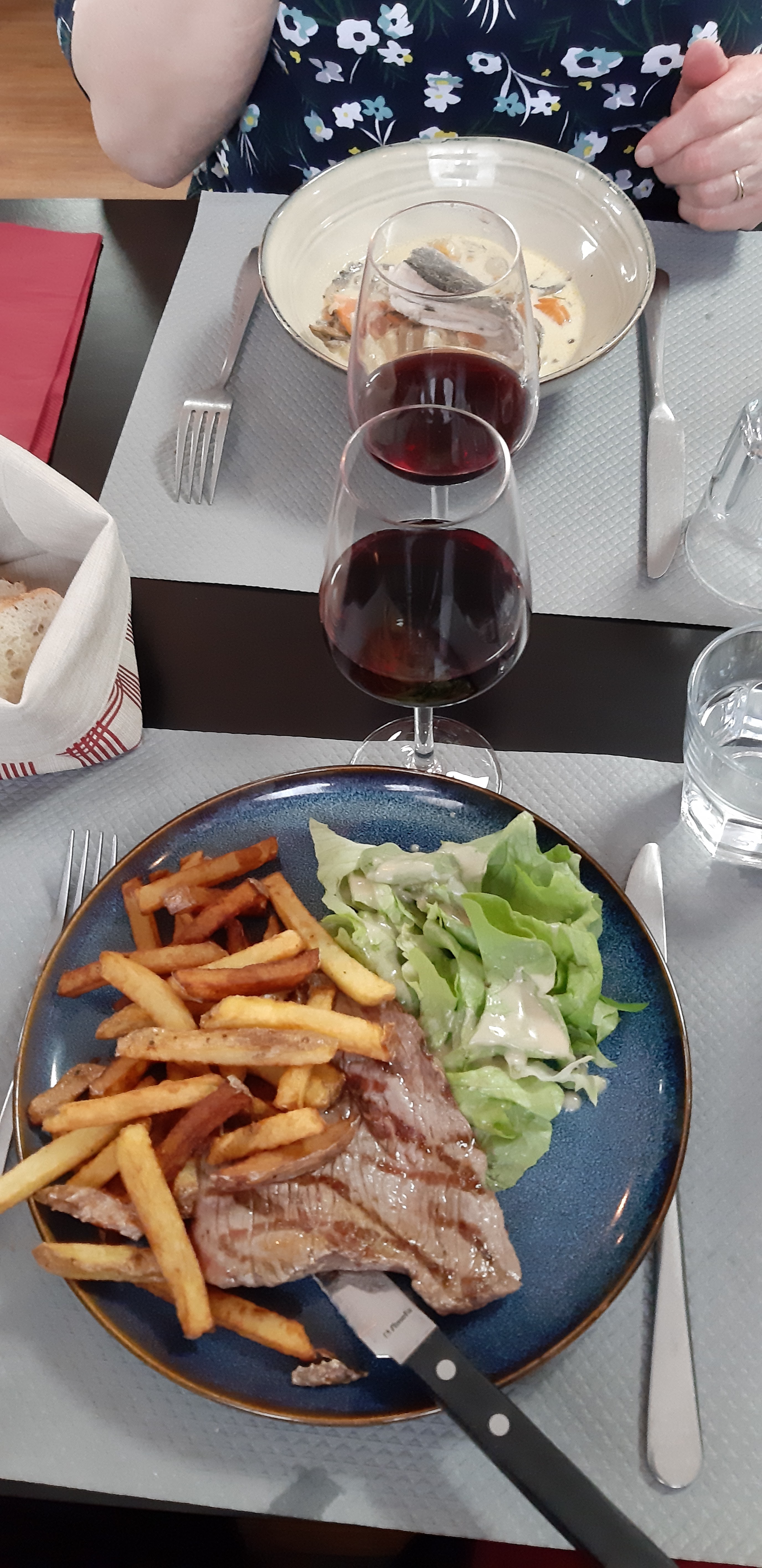 Je n'ai pas aimé, ni la cuisine, ni le bruit. En revanche, le service est efficace et sympathique. Buffet hors d'œuvre sans intérêt. Onglet frites, bonne viande mais le grill aurait besoin d'un nettoyage intermédiaire en service, quand aux frites molles et noires elles sentaient bien la graisse en fin de vie. Café excellent. 2 repas Prix 34 € !!!!!!
