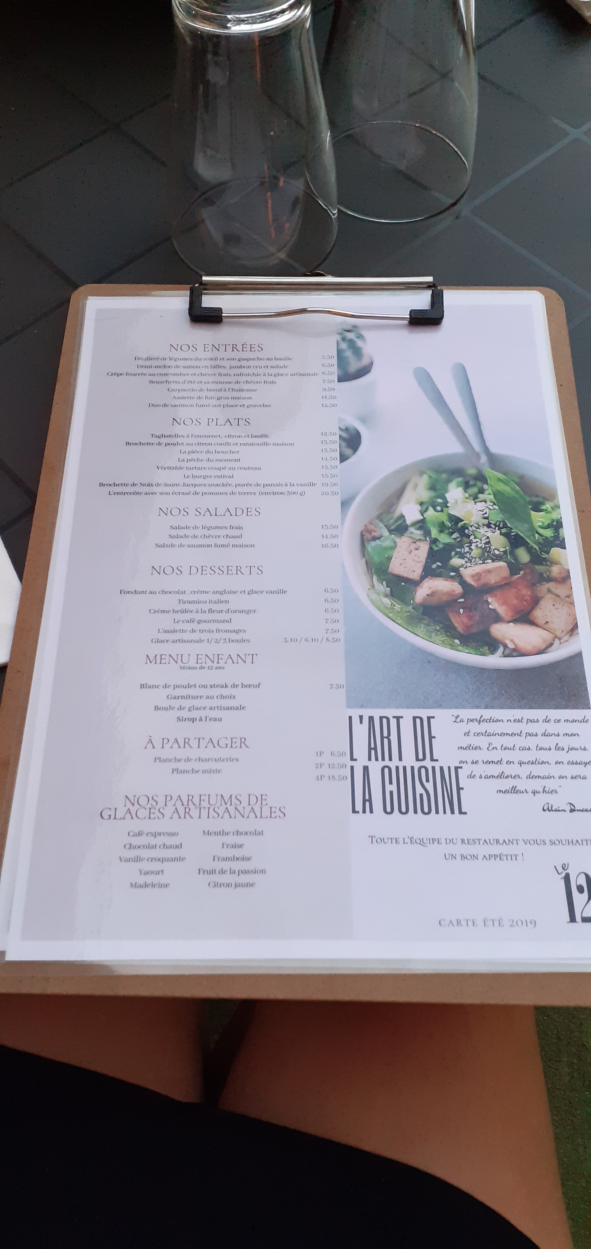 Peu de choix dans la carte mais pour moi un vrai gage de fraîcheur. Plats savoureux et beaux à regarder. Service du jeune serveur impeccable. Terrasse très agréable avec le beau temps de vendredi dernier. Juste dommage que la cigarette soit toujours autorisée en terrasse car quand on mange, et qu on a des enfants, ce n est vraiment pas agréable d avoir des fumeurs à côté. De l apéritif au dessert, c était en tout cas délicieux. Un bon moment de passé. Si nous étions du coin, nous serions devenus client régulier sans nul doute !