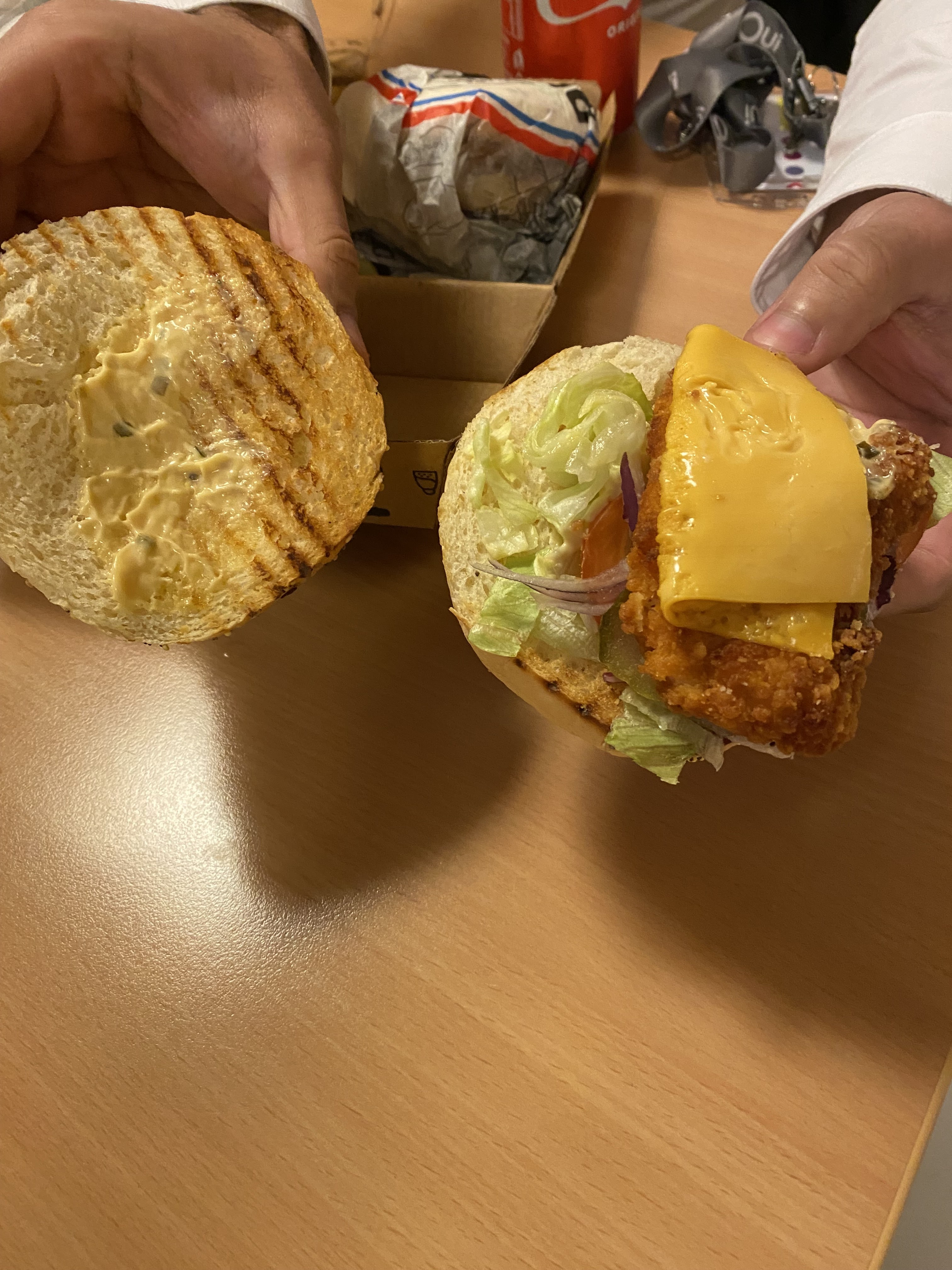 Moyen et les frites sont pas totalement cuites 🥲 Je cherche pas de qualité ni délicieux dans fast-food mais au mins mangeable?