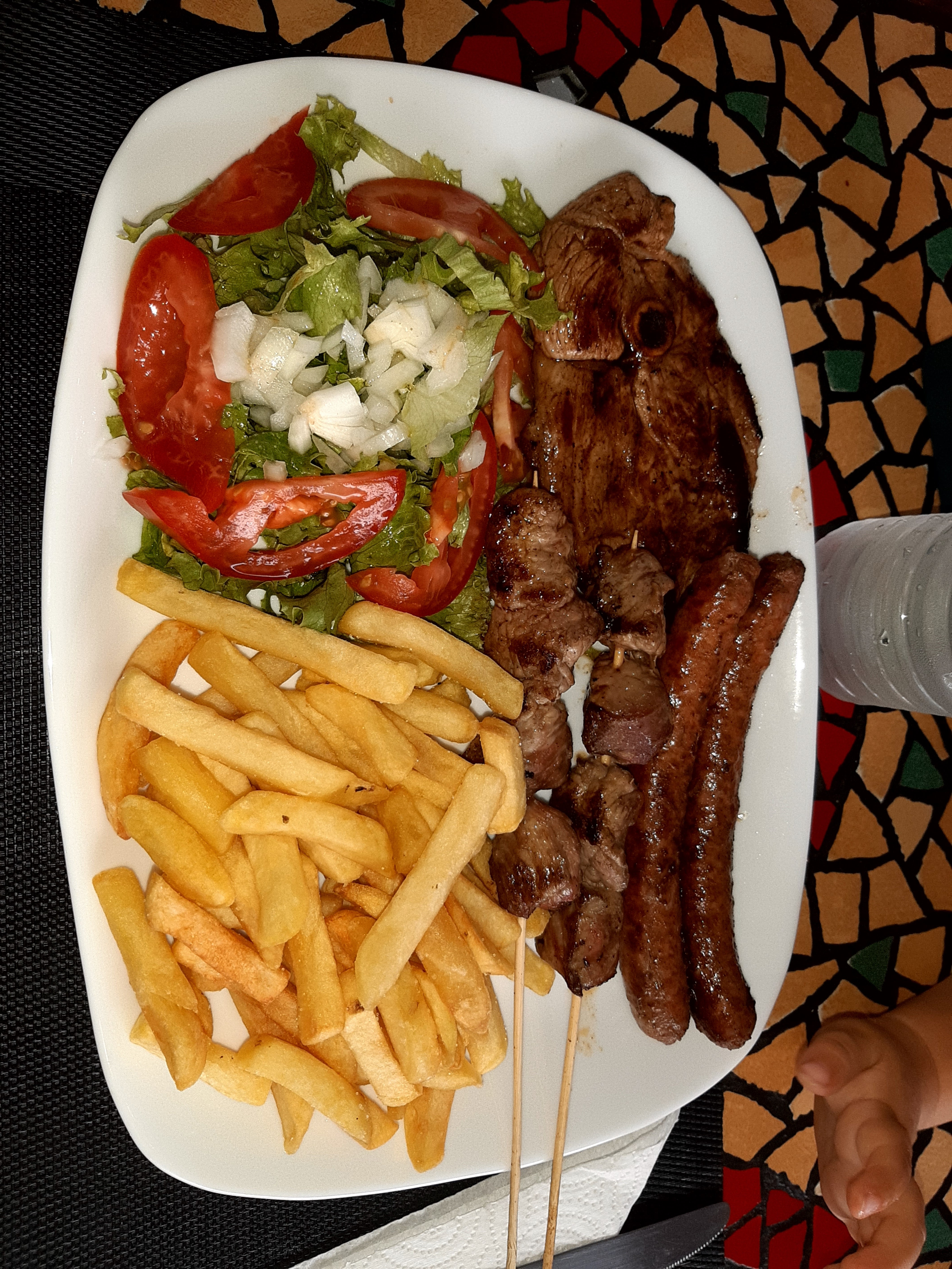 Assiette bien copieuse, viande bien cuite et fraîche. A tester.
