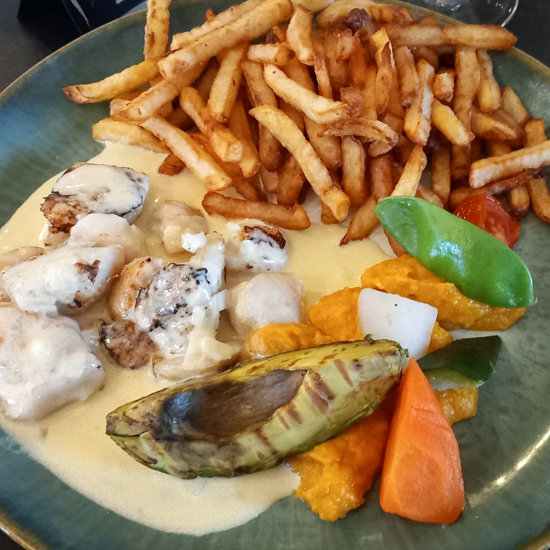 Service efficace. Carte en adéquation avec les produits de la région. Serveur souriant, agréable et de bon conseil. Les assiettes bien servies. Les plats sont très bons et savoureux