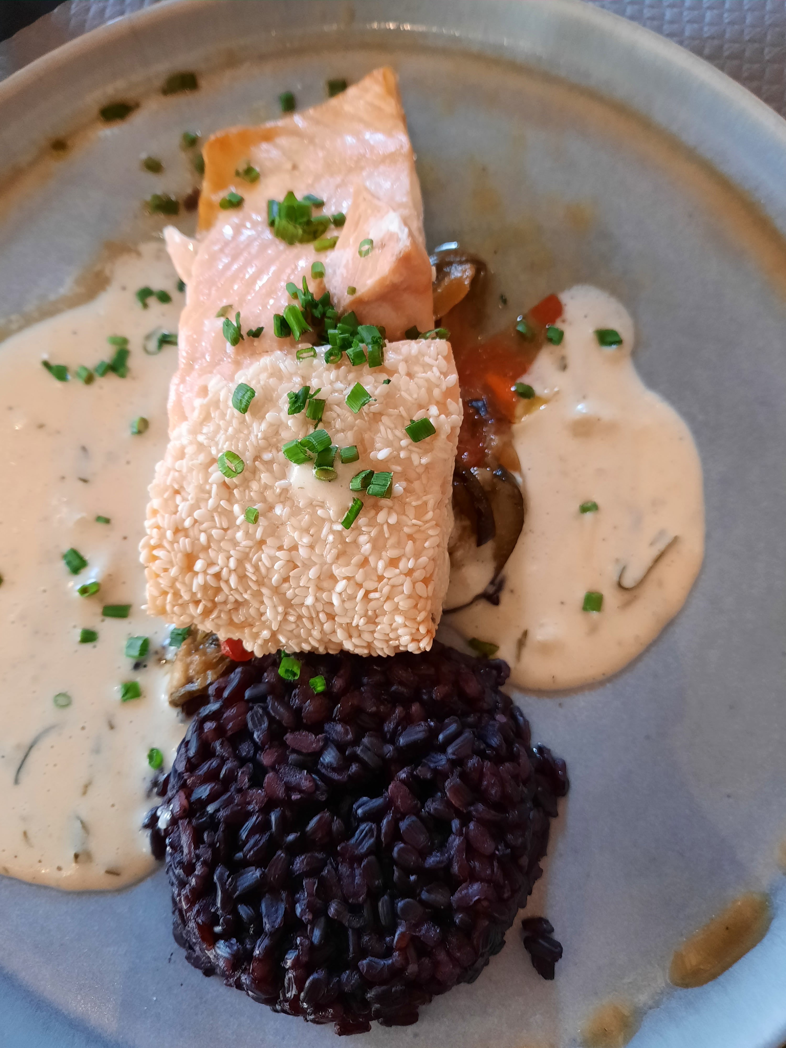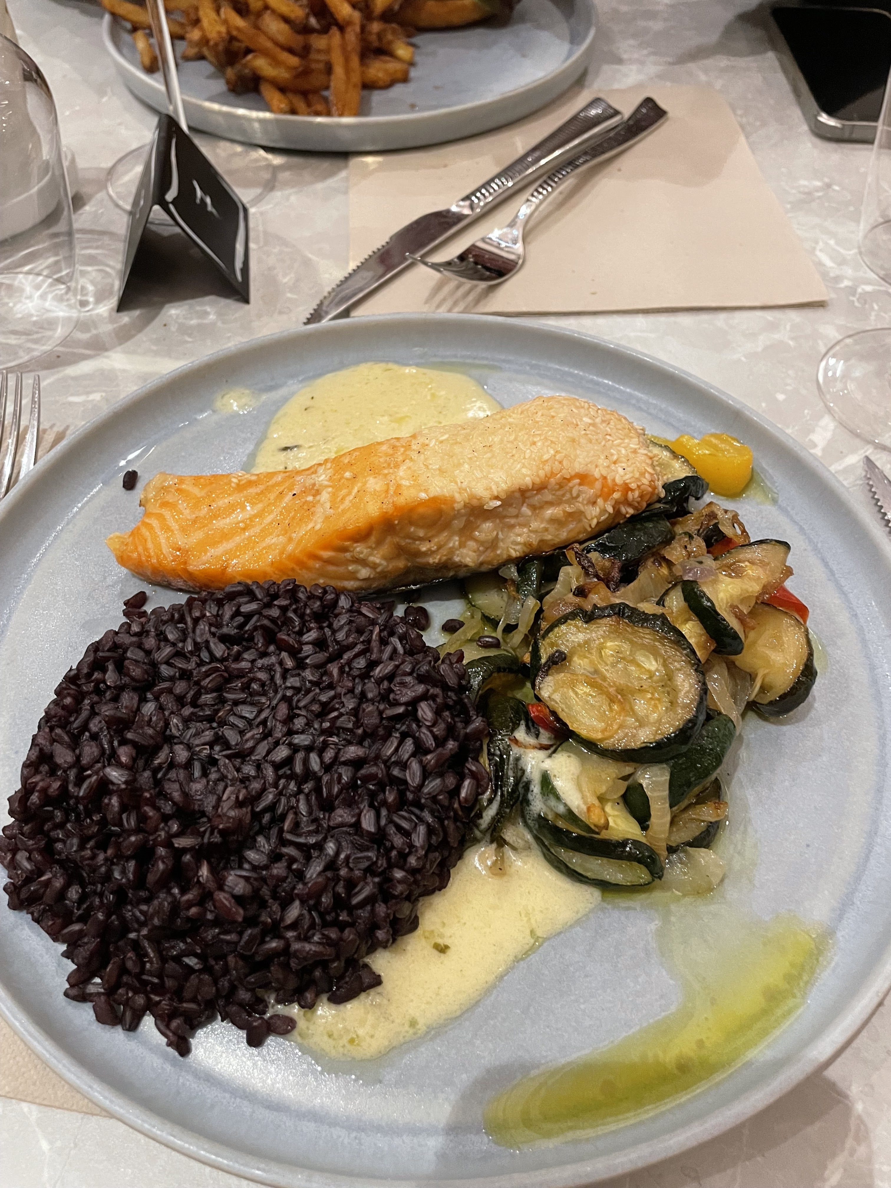 Je me suis RÉGALÉE ! Les assiettes sont assez copieuses, le service est rapide et les serveurs sont de bonne humeur, c'est agréable. Entrée salade et brick chèvre (un peu trop de sauce à mon goût, peut être proposer la sauce à part pour que les clients dosent eux même ? ) Et plat saumon au sésame, courgettes et riz, un régal... Idem pour les boules glacées, très savoureuses ! Nous avons passés un agréable moment au calme, je recommande !