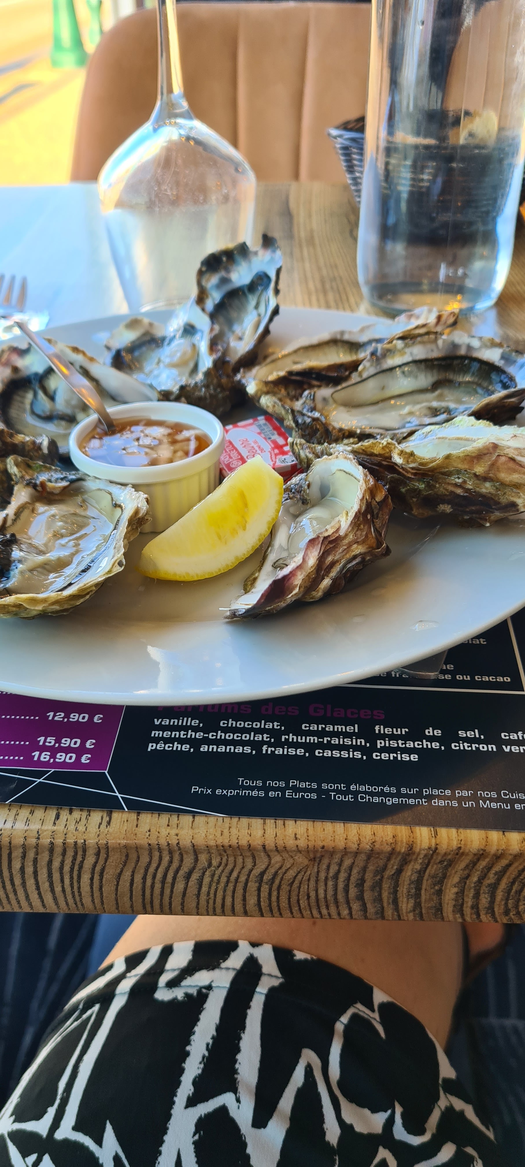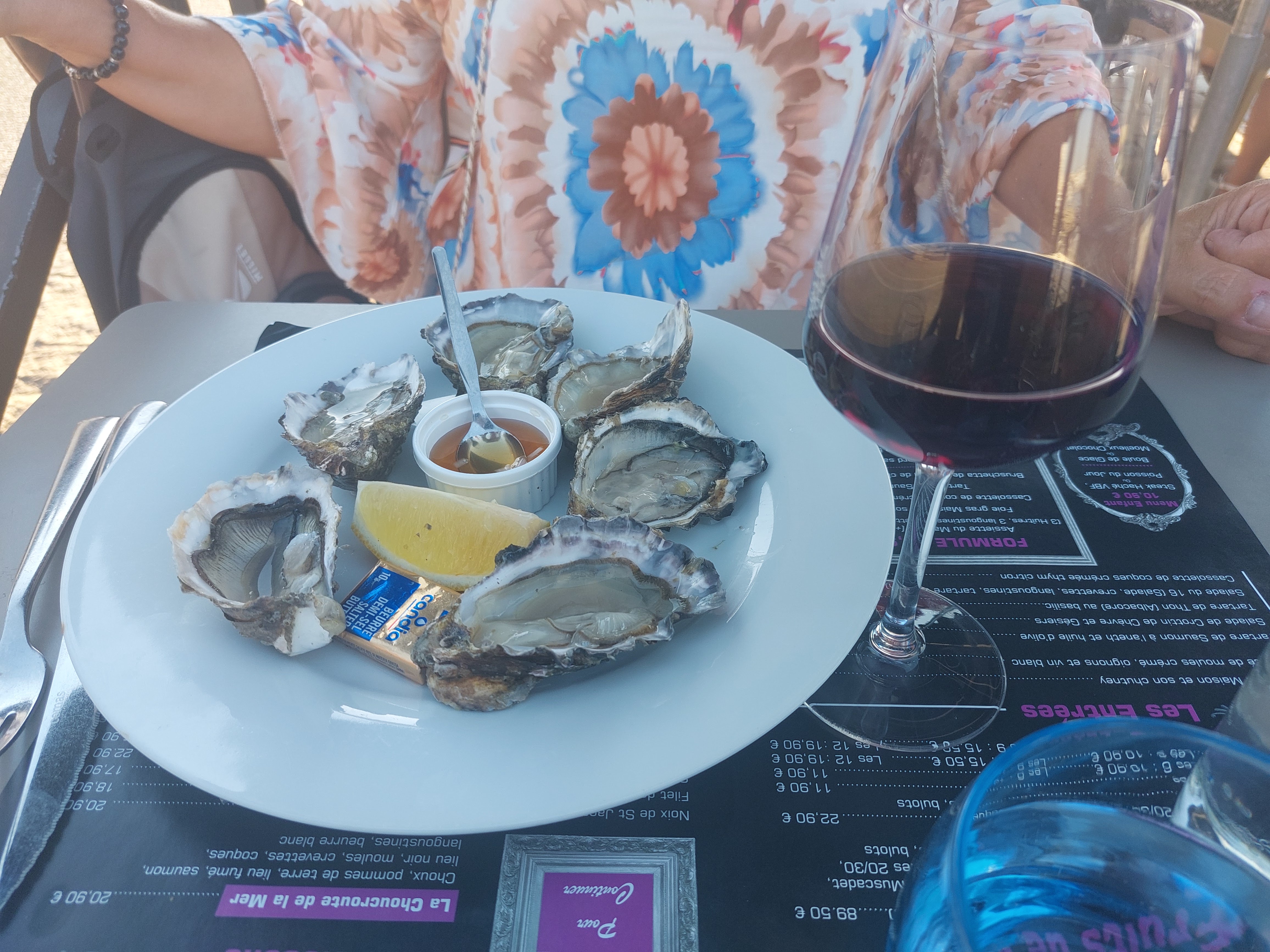 Bonjour, Nous sommes passé au 16Bis. 2 Personnes 60€ pour une qualité relative c'est globalement bon. par contre on ne sent pas le fait maison. Le service et Le rythme sont corrects, personnel super.(Très bien 4/5) Emplacement sur la terrasse, on nous a mis a coté de la route, emplacement très désagréable, échappement bruit alors que le reste de la terrasse est resté quasi vide, on était les premiers. A éviter! On souhaitait être coté bord du port, ce n'était soit disant pas possible, pourtant d'autres clients ont eu la possibilité d'avoir plus de confort. (Pas bien: 1/5). Boissons: carte des bières pas un choix de ouf, ben a revoir. 1664 c'est pas de la bière.(Moyen : 2/5) L'assiette d'huitre en apéro: très agréable très bonnes.(Très bon4/5) L'entrée: est TROP vinaigré et aigre, gésiers pomme de terre. 4 rondelles de patate, le gésiers en bloc, mouai bof. pas des saveurs comme a la maison. (Pas bon 1/5) Le plat Parmentier: très bon, l'écrasé de pomme de terre nickel. petit bémol : Sa baigne dans la sauce (Très bon 4/5) Le dessert: présente bien... Saveur, ca peut aller.(Bon3/5) Moment plaisir : bof, pas de plaisir, alors que c'est ce qu'on recherchait. 0/5 On ne refera pas! Allez y si vous le souhaitez, mais dans cette rue il y a mieux.