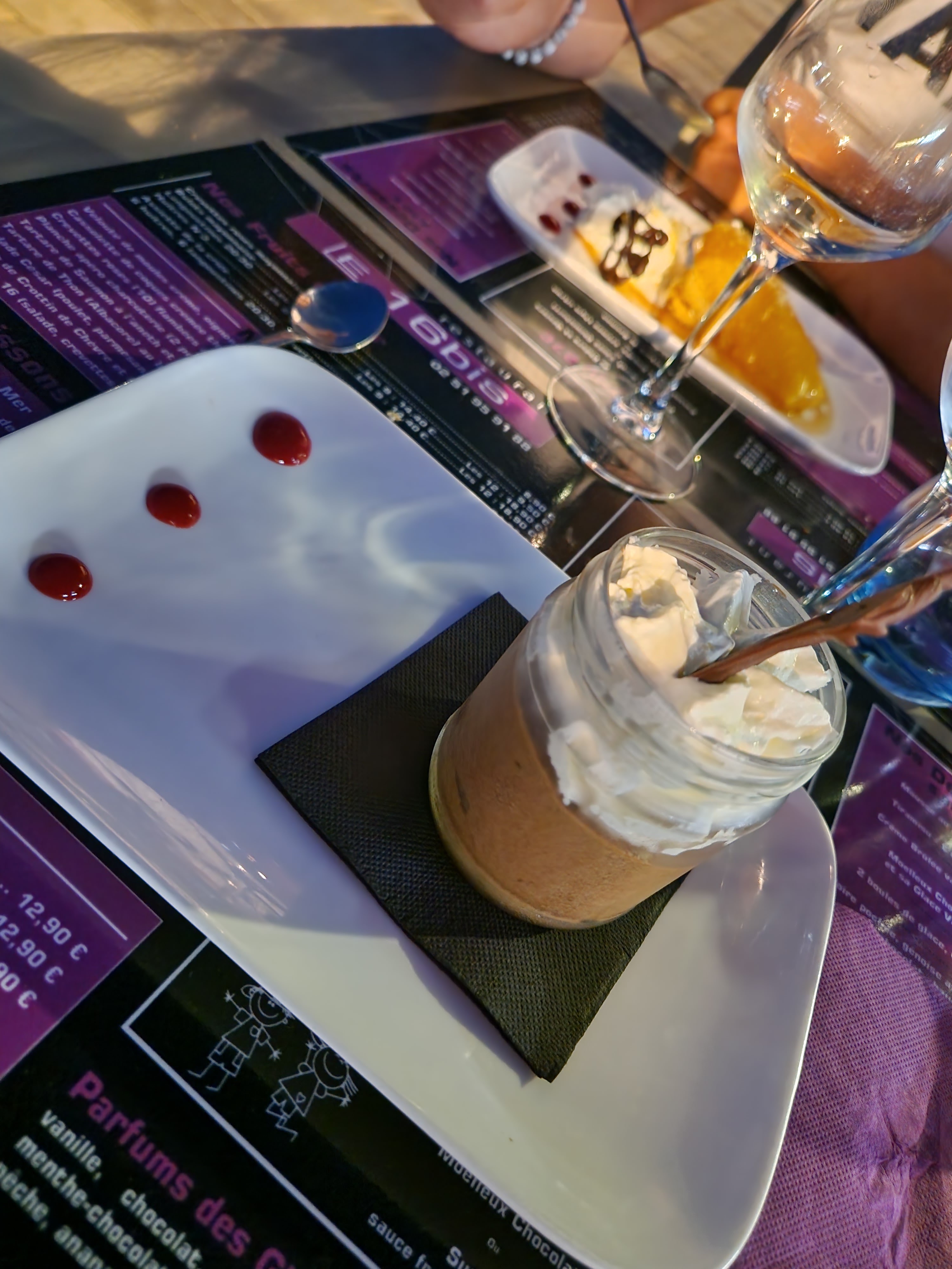 Super repas, serveur agréable, le plat que l'on à mangé était très bon (brochette saumon st jacque) vraiment raffiné avec ses legume, et une petite compoté de pomme de terre Je recommande ! Le dessert mille feuille glacé etait bon aussi, ça change des dessert habituel !