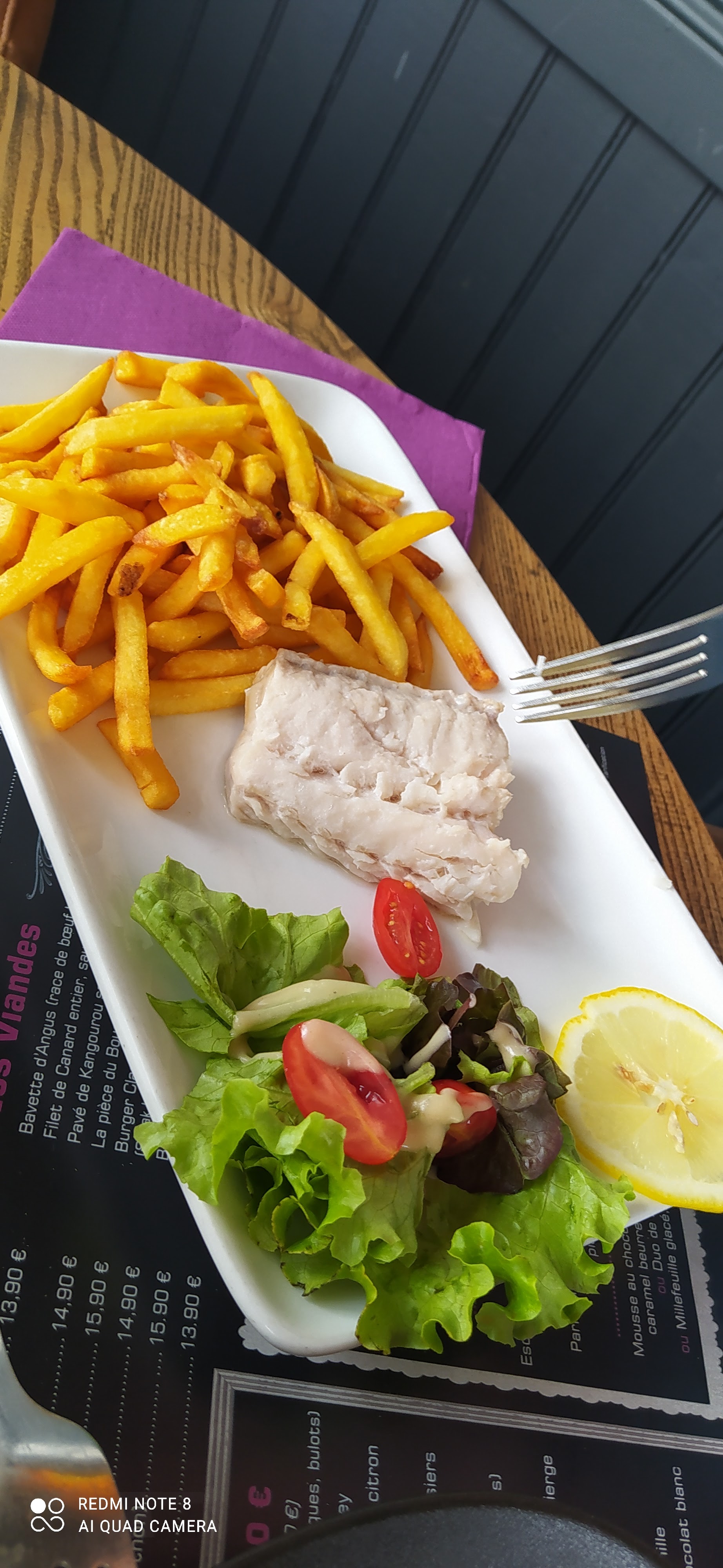 Très bonne découverte ! De la cuisine faite maison . Excellente purée et sauce accompagnant le poisson . ( Cela manquait tout de fois pour le menu enfant un peu de sauce sur le poisson ). Le menu à 18 euros est parfait pour se régaler sans se ruiner .Desserts très bon .