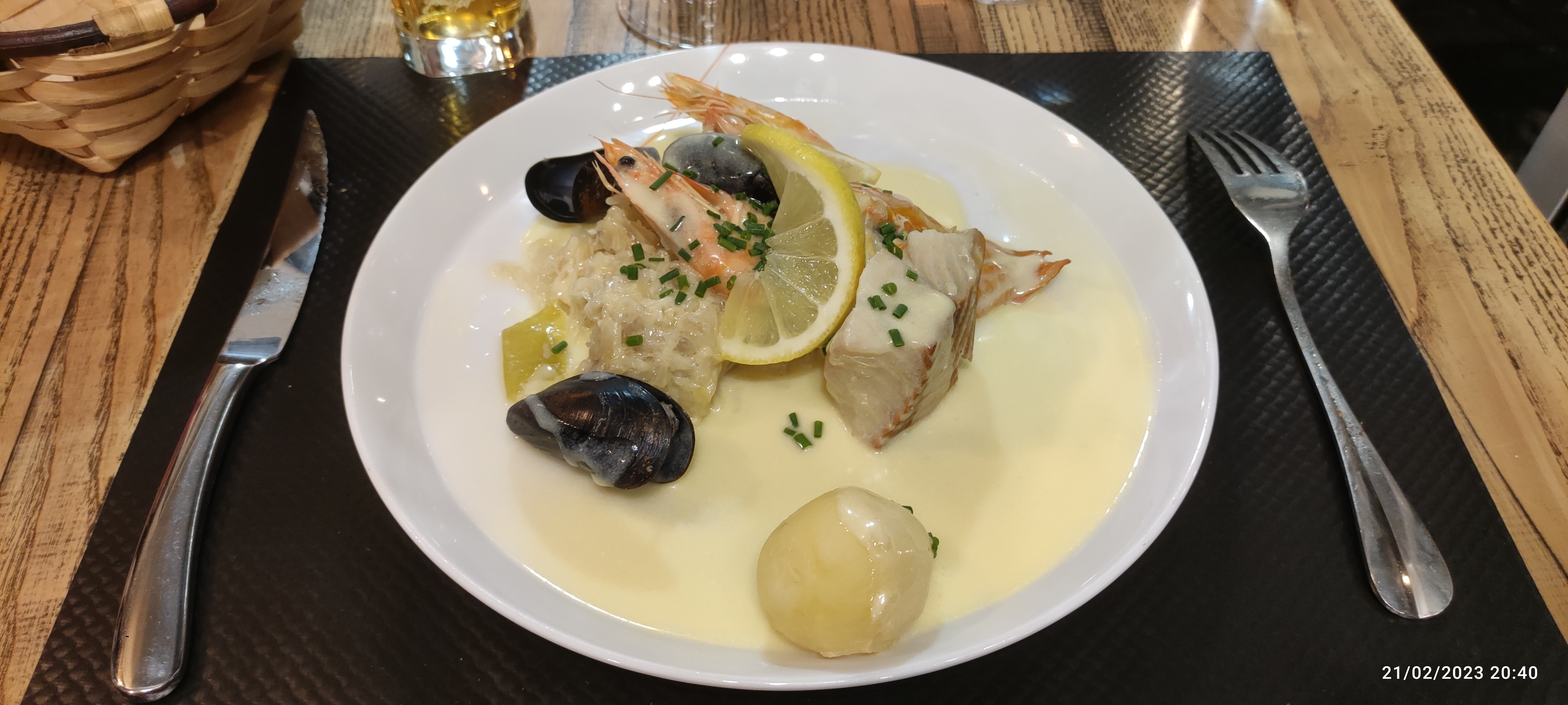 Je trouve le velouté de moule est très réussi, on retrouve bien le goût de la moule. J’ai aussi beaucoup apprécié le filet de bar avec sa sauce au beurre, notamment ils avaient retiré tous les arrêtés pour les fainéants comme moi 😋 Et enfin je sentais bien le café dans le tiramisu, ce qui est assez rare.