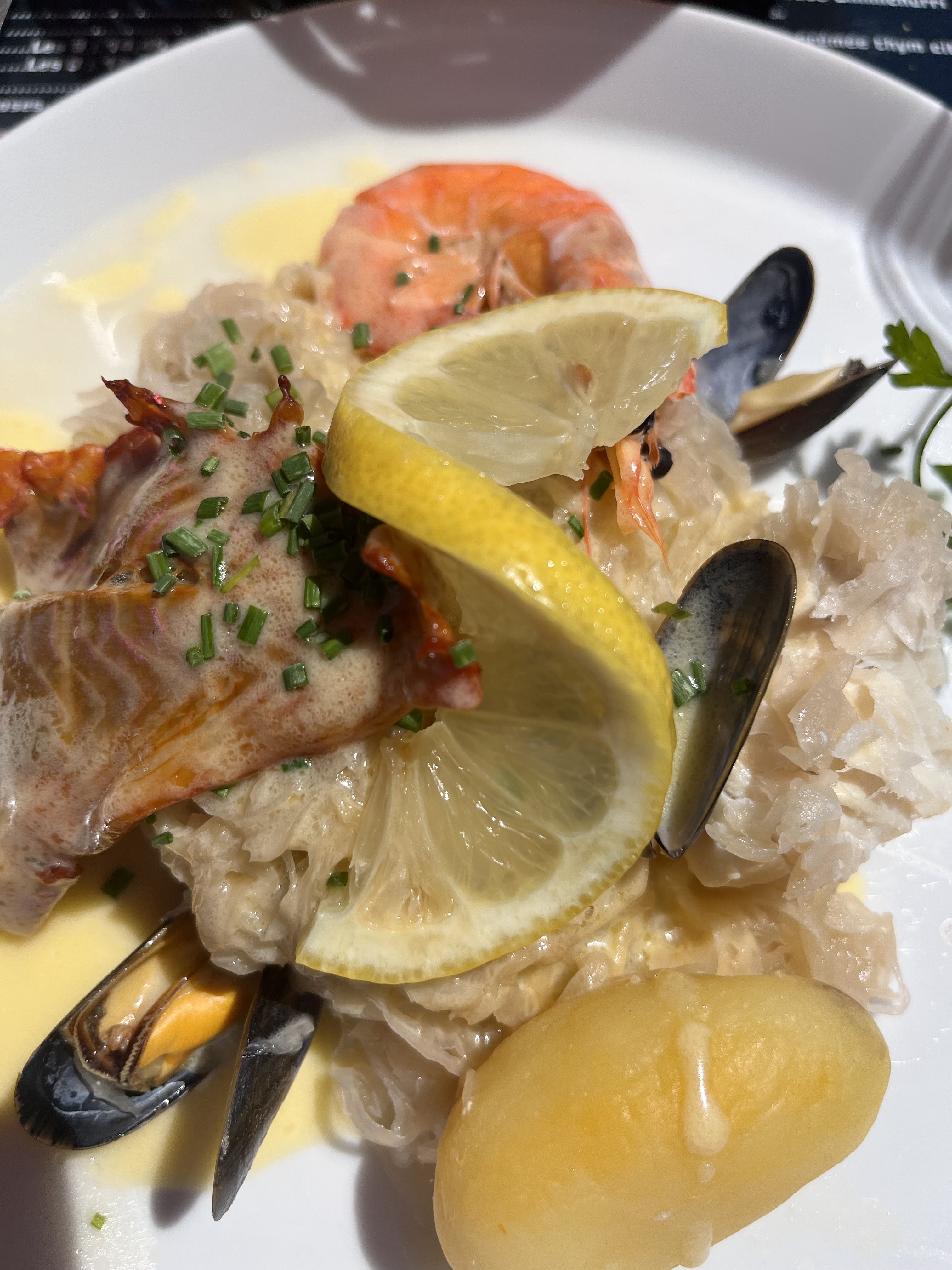 Superbe accueil malgré notre arrivée tardive (désolé !). Merci au personnel !La choucroute de la mer n'a rien à envier à sa sœur terrestre !