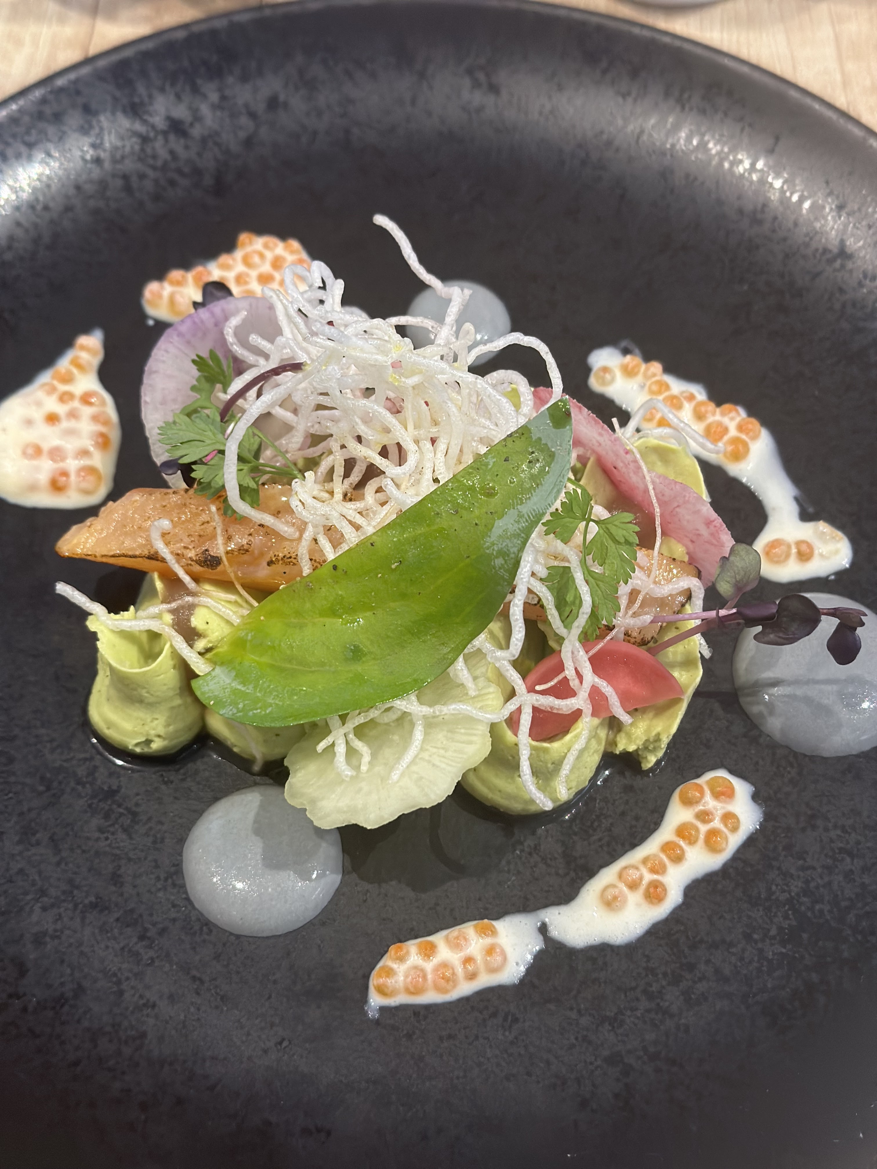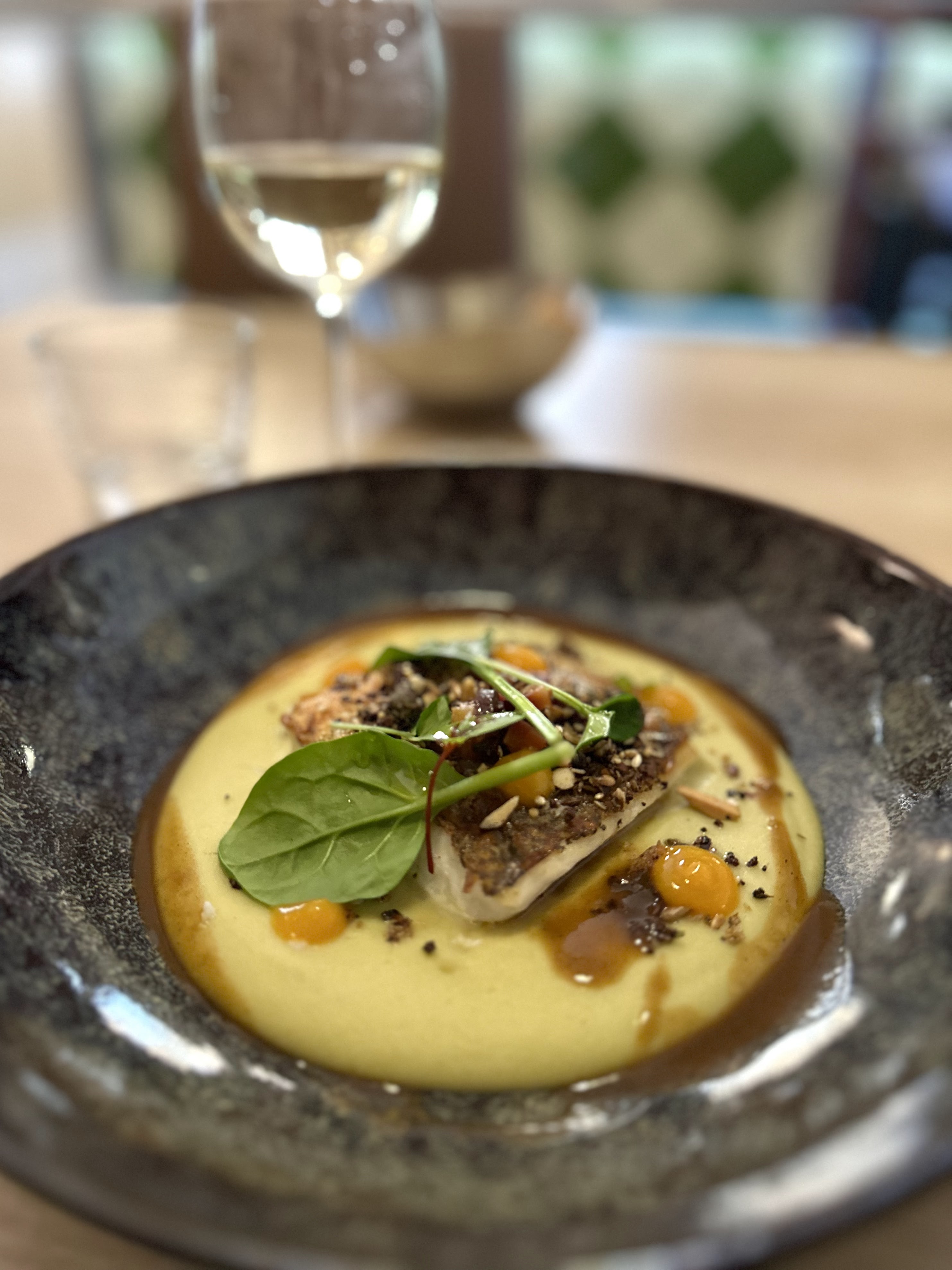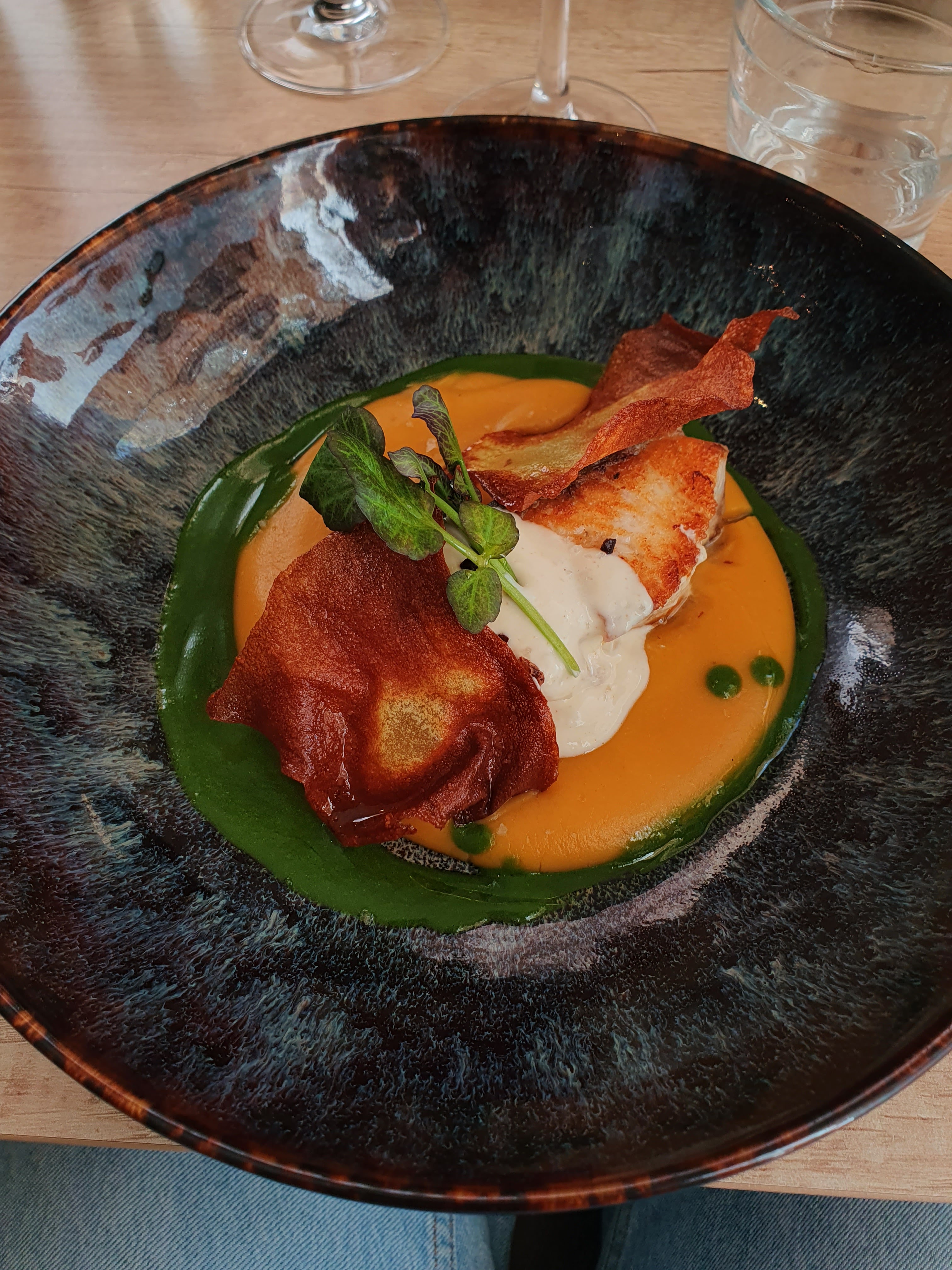 visité l'été dernier Je préfère généralement les goûts plus traditionnels qu'innovants, mais la douceur naturelle des plats et le contraste intéressant (ayant également une touche orientale) étaient surprenants et très agréables. présentation des plats au top