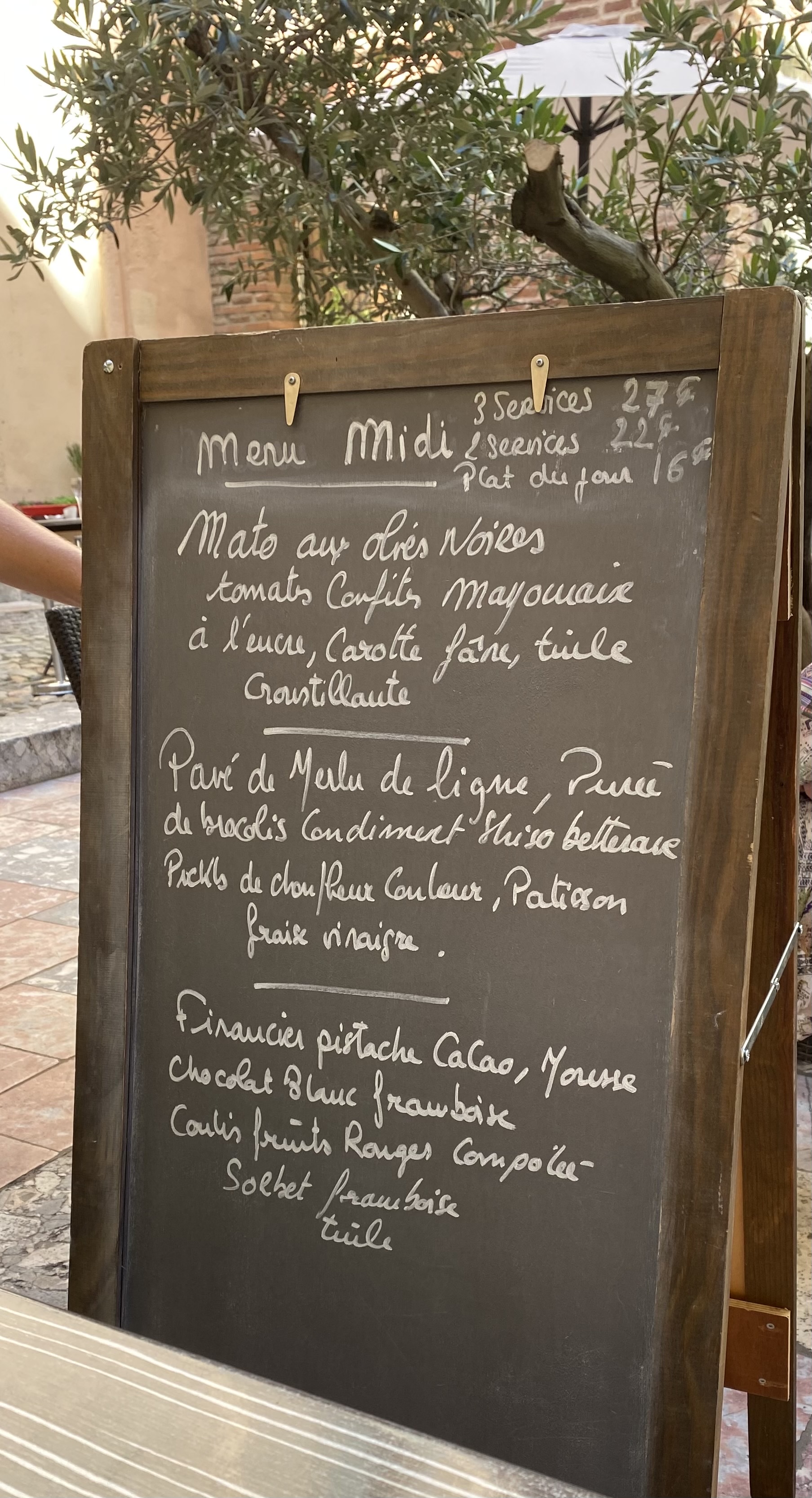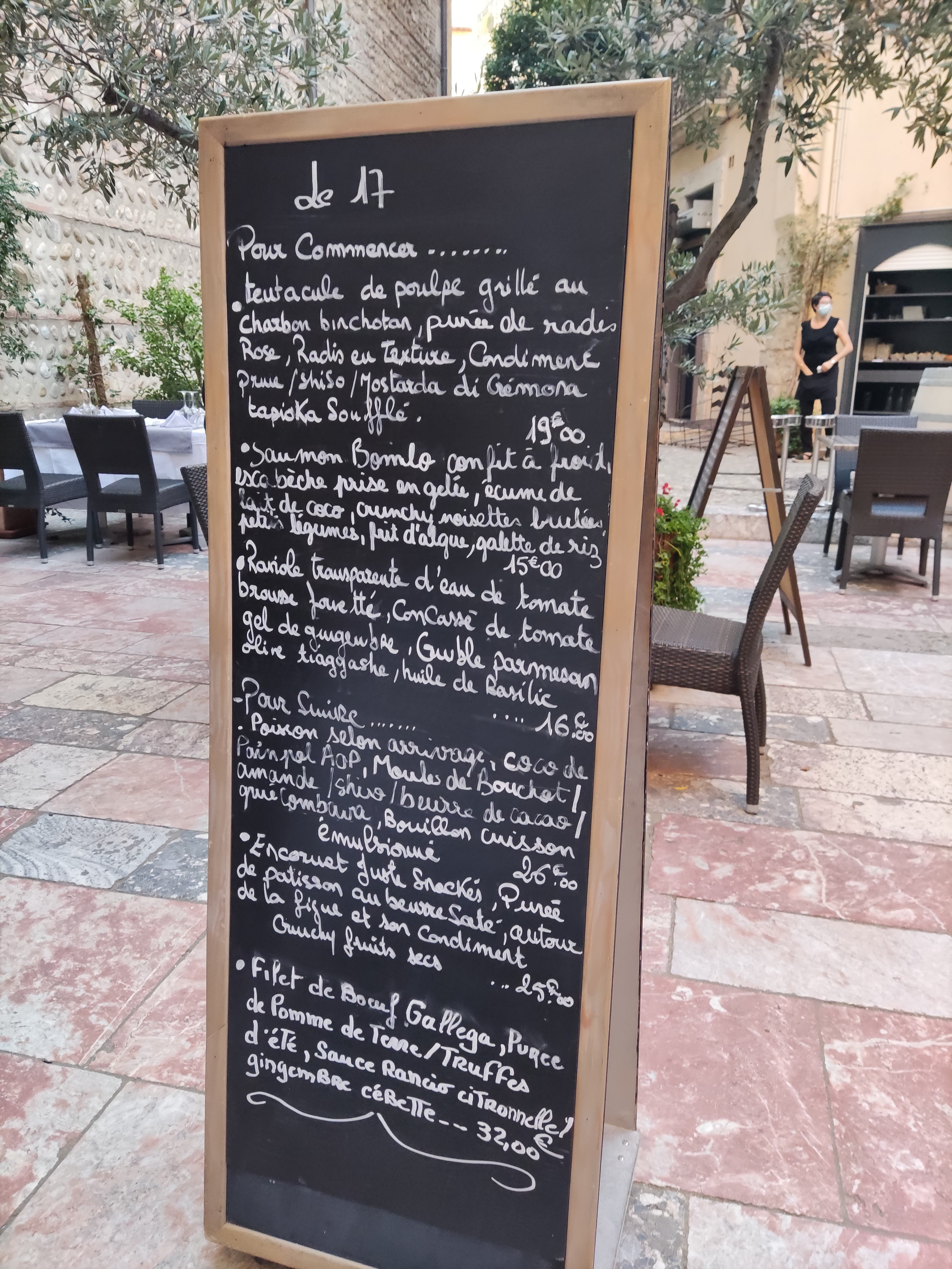 Harmonie des goûts et des saveurs. Menus du jour raffiné et délicat. Un délice ! Rapport qualité prix d'exception. Le cadre, terrasse accolée à la cathédrale Saint Jean est très agréable. Je recommande vivement.