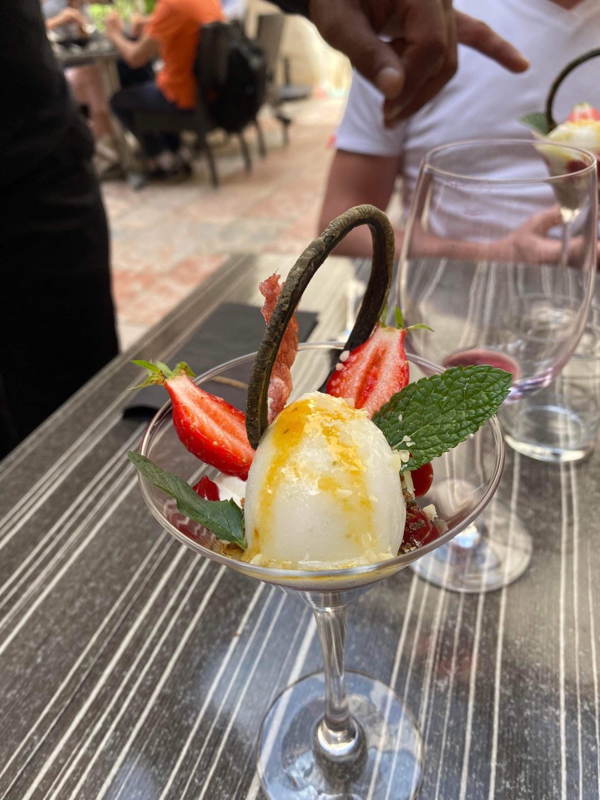 Très bon restaurant dans un cadre magnifique au pied de la cathédrale Saint jean baptiste. Une découverte de saveurs et des produits frais. Les serveuses sont souriantes, à l'écoute et elles aiment leur métier. Nous avons passé un très bon moment à voyager au travers de nombreuses saveurs. Les desserts sont recherchés et très bien équilibrés. Je recommande !