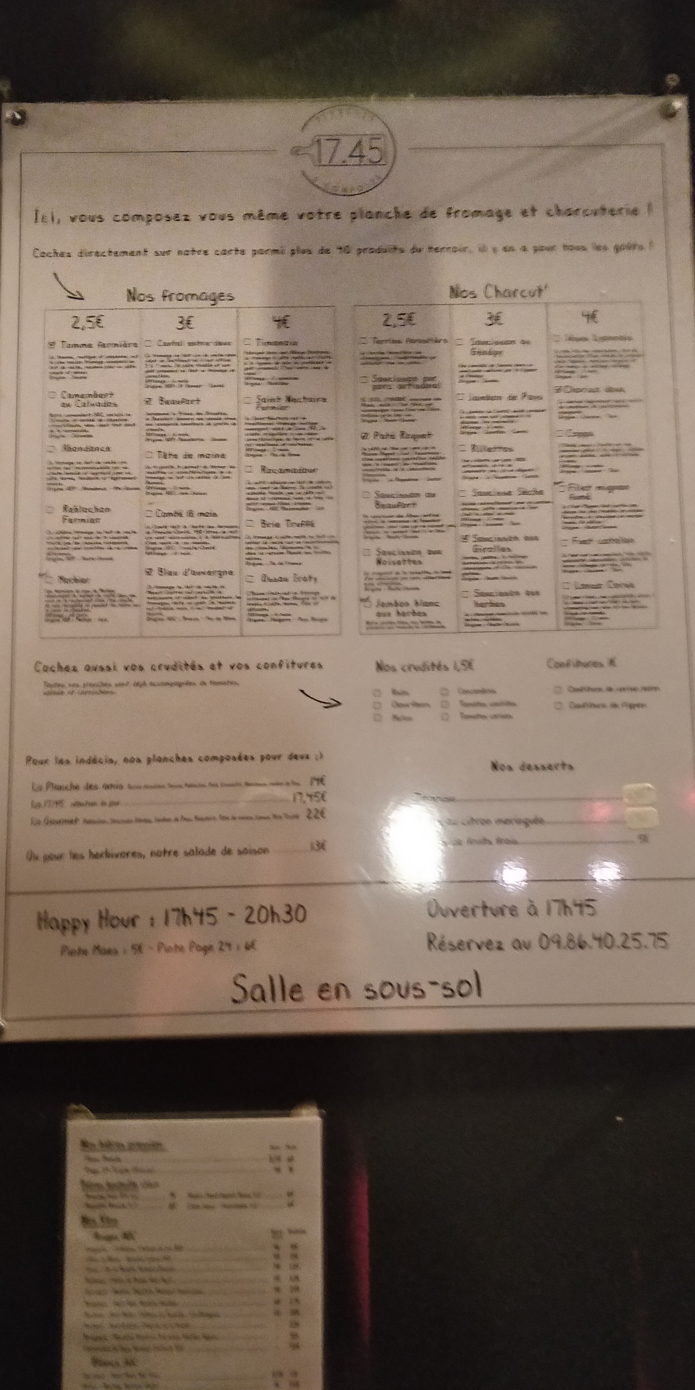Soirée entre amis très sympathique au 17.45 ! Personnel souriant, les planches sont personnalisables (fromage et charcuterie) en fonction de nos goûts et ça c’est super :) Nous reviendrons merci