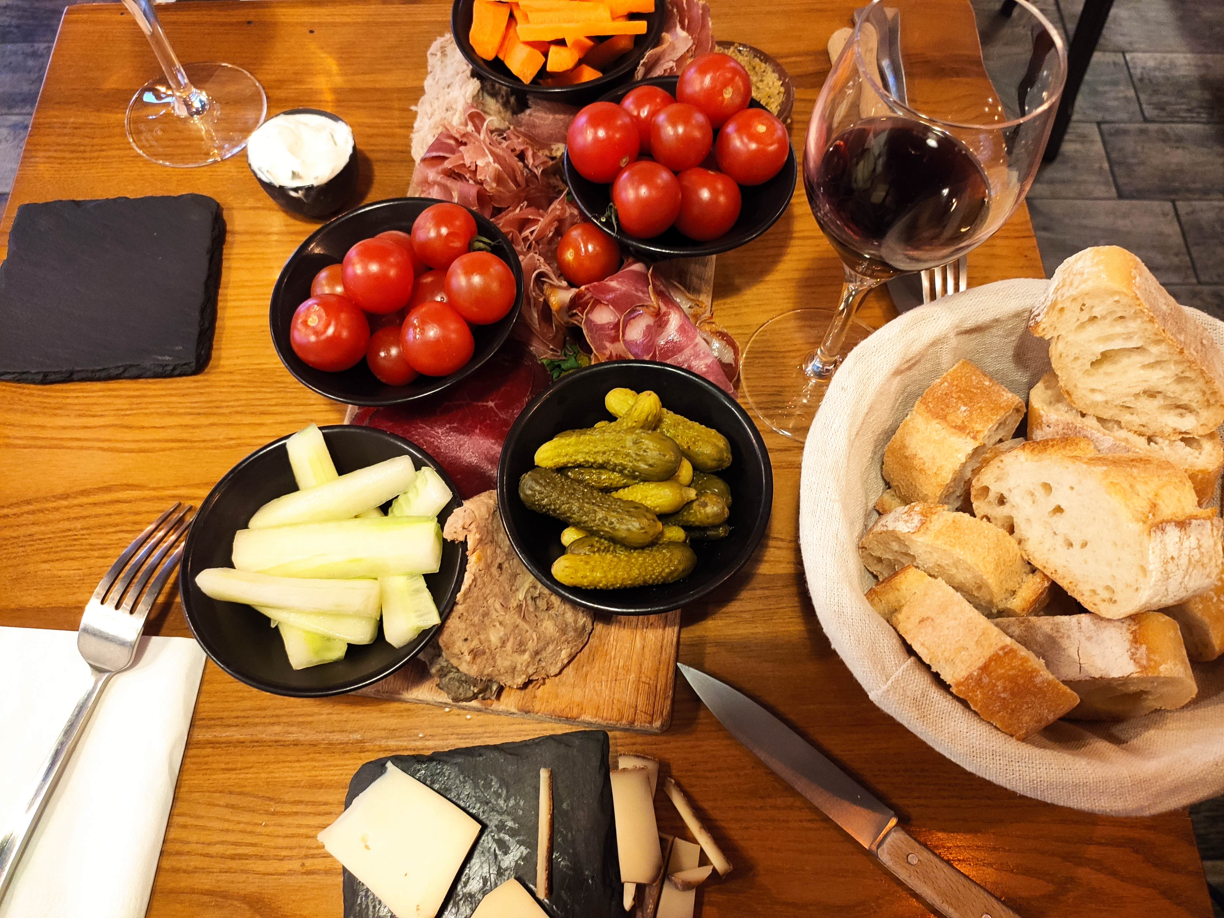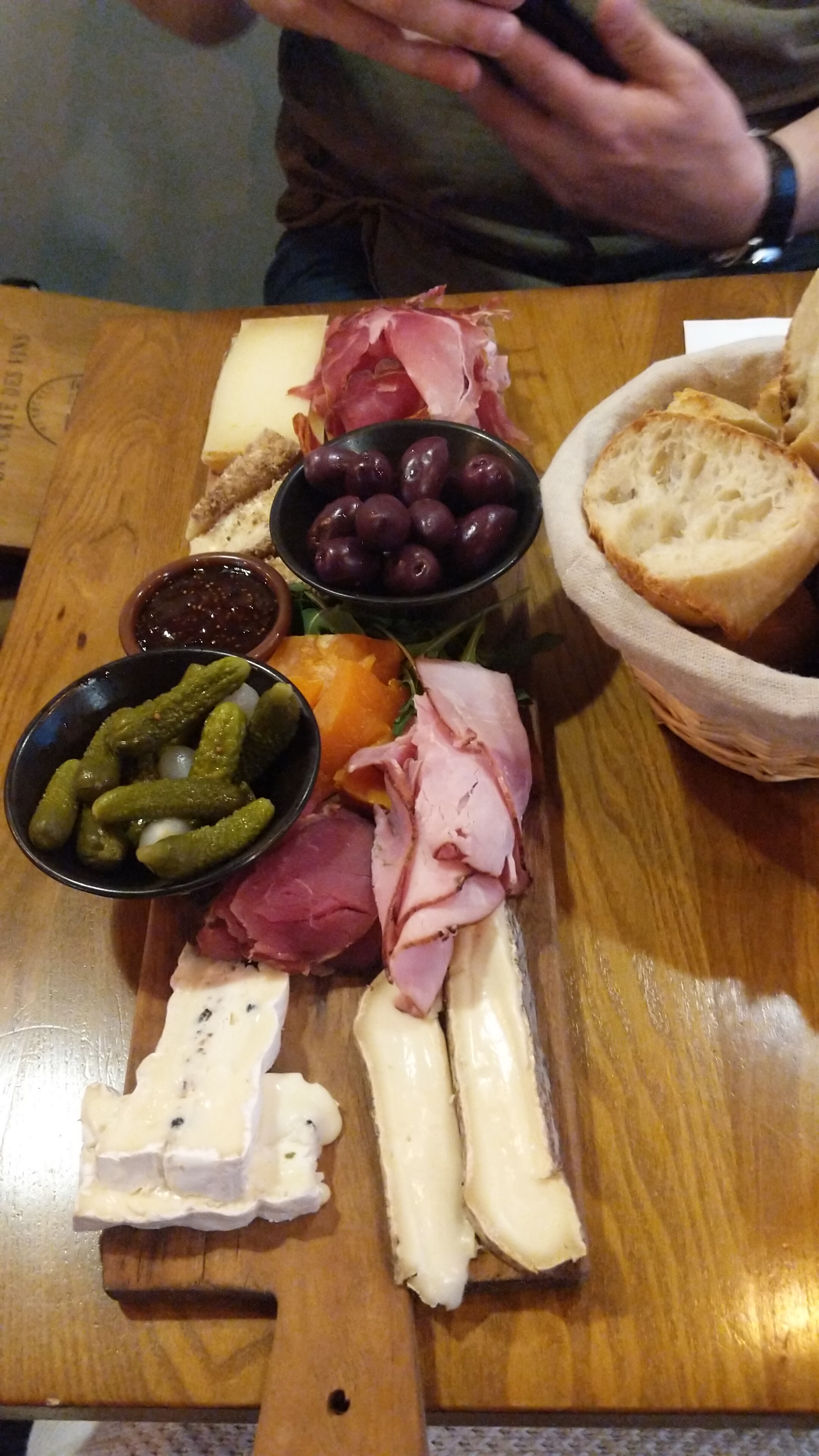 Amusant d'essayer de nombreuses sortes de fromages et de salami. Incroyable sélection de vins comme vous pouvez vous y attendre en France